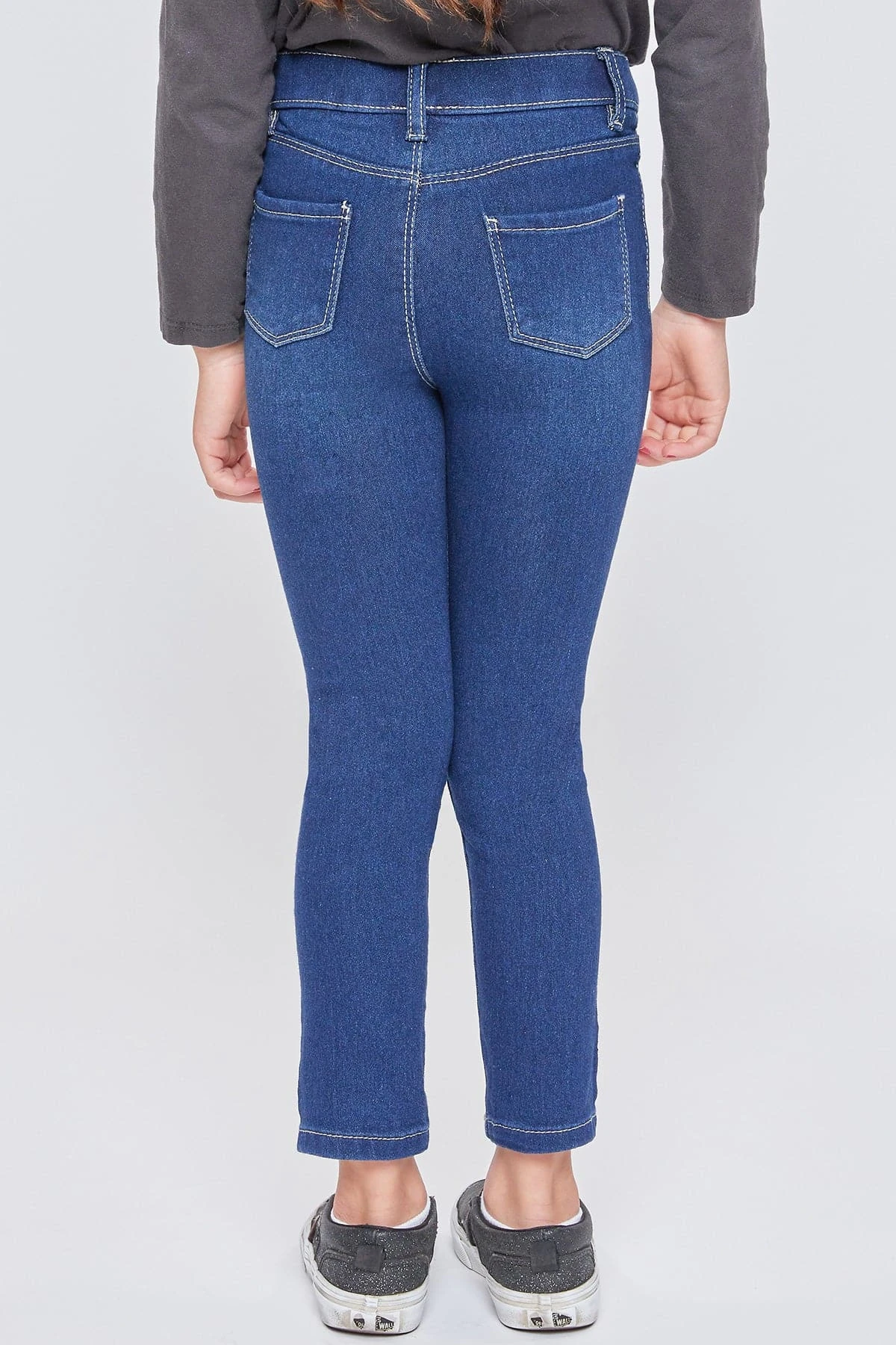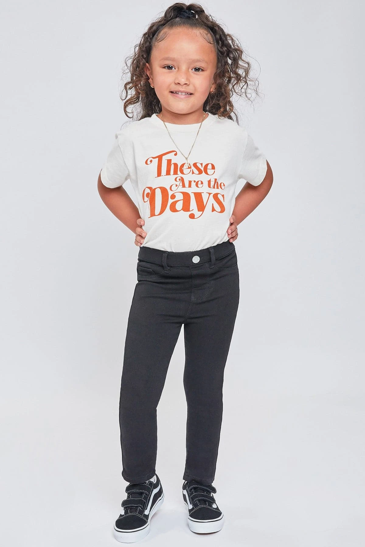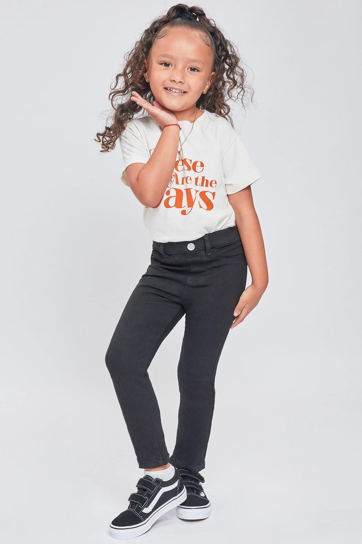Getting dressed has never been easier with our Baby Girls’ Faux Front Pull-On Skinny Jean! Designed with an elasticized waistband so you can just slip them on and go, these jeans are made with stretchy denim for a flexible fit and all-day wear. A step up from jeggings, this pant has faux front details including a glittery summary and two false pockets, as well as two functional back pockets. Pair these with your little one’s favorite sweater and boots on chillier days!