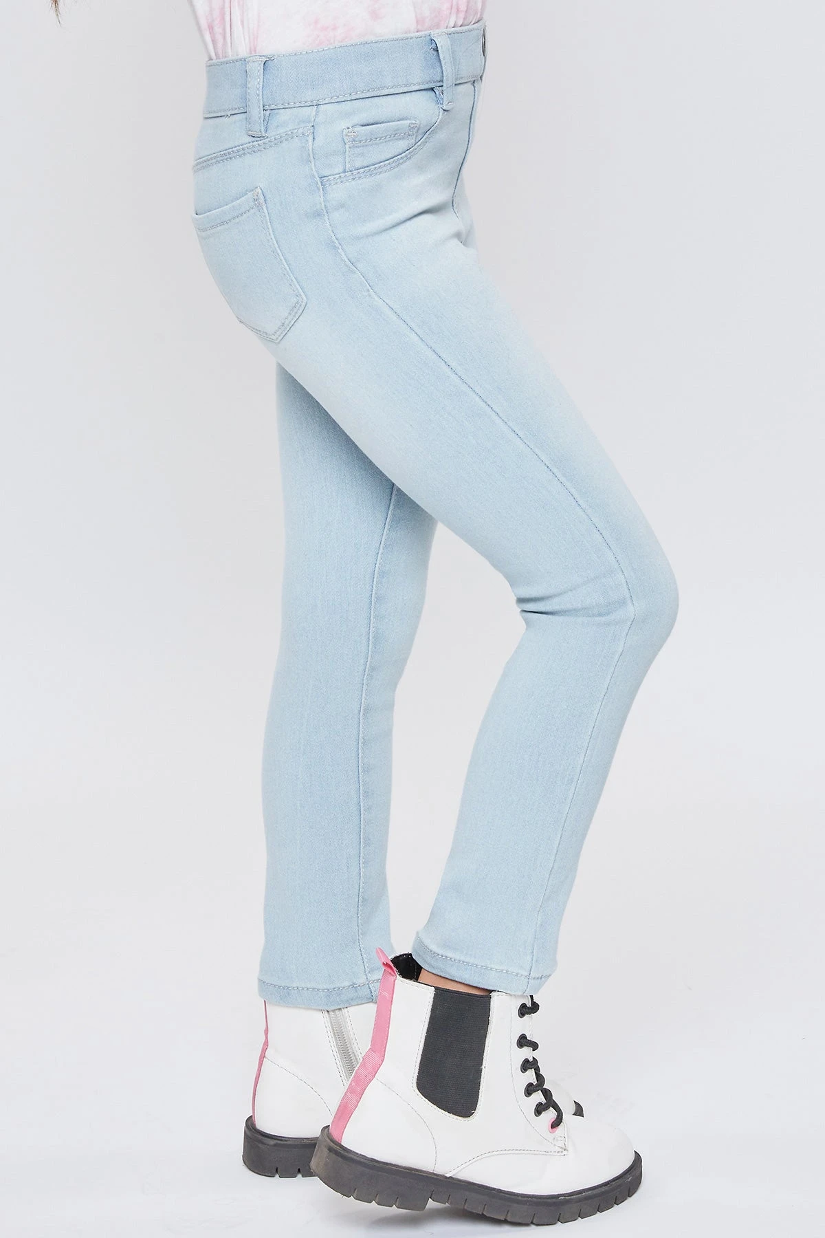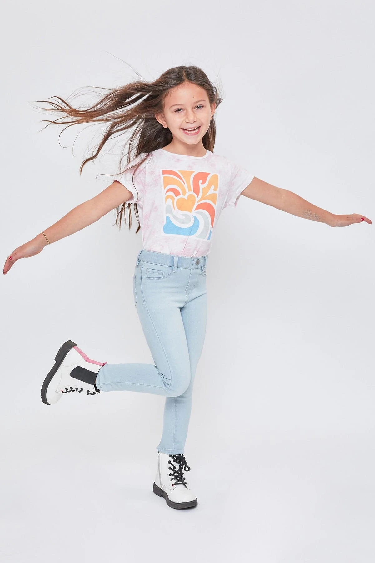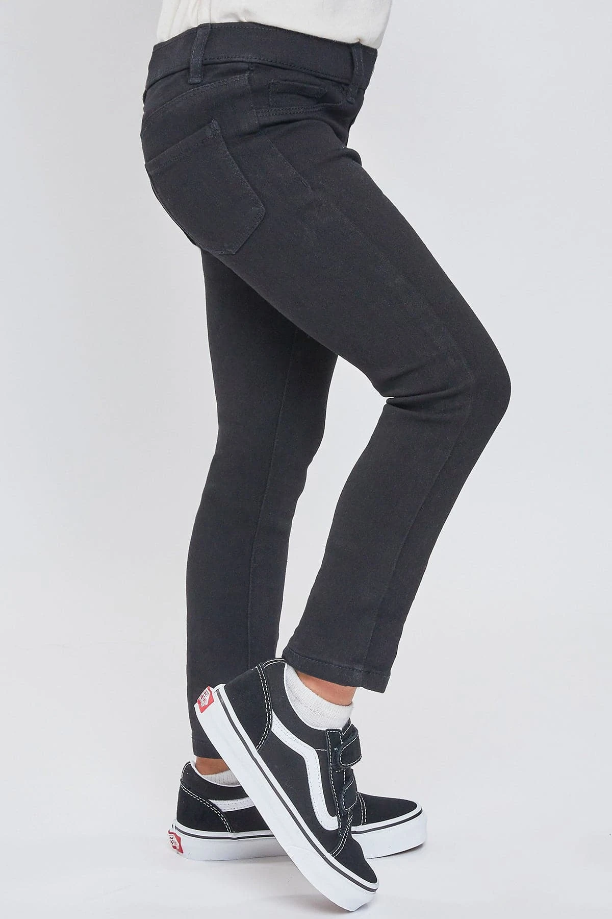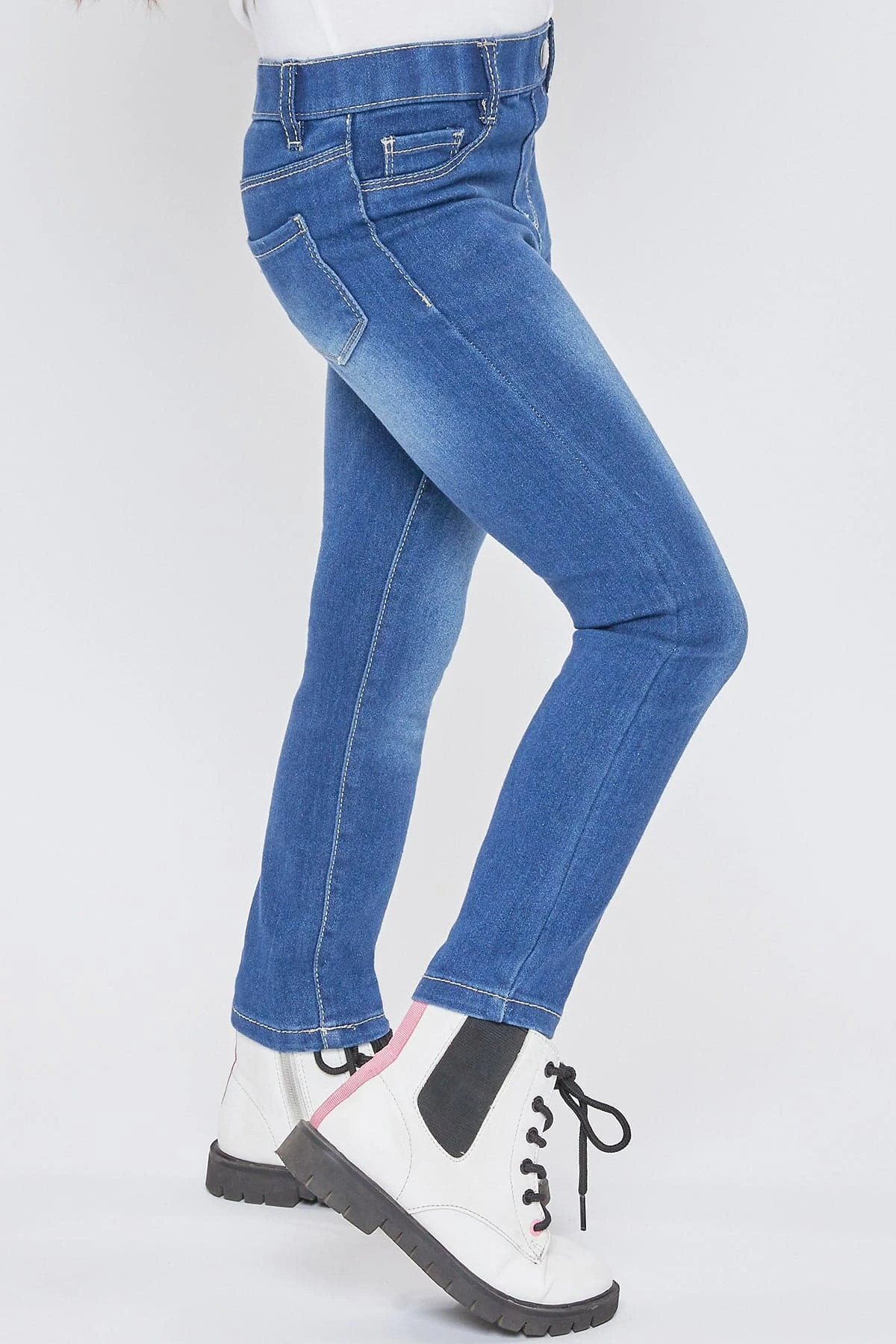 Getting dressed has never been easier with our Baby Girls’ Faux Front Pull-On Skinny Jean! Designed with an elasticized waistband so you can just slip them on and go, these jeans are made with stretchy denim for a flexible fit and all-day wear. A step up from jeggings, this pant has faux front details including a glittery summary and two false pockets, as well as two functional back pockets. Pair these with your little one’s favorite sweater and boots on chillier days!