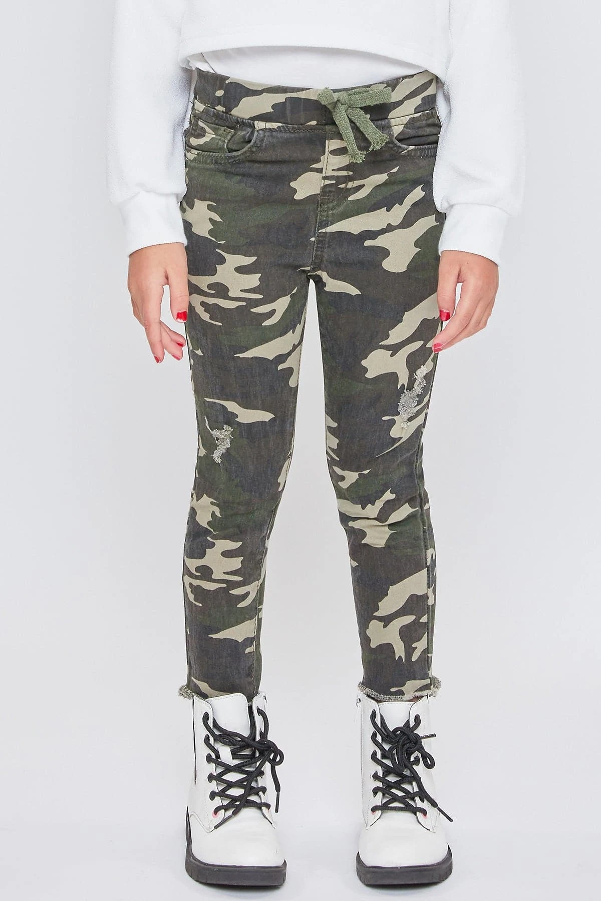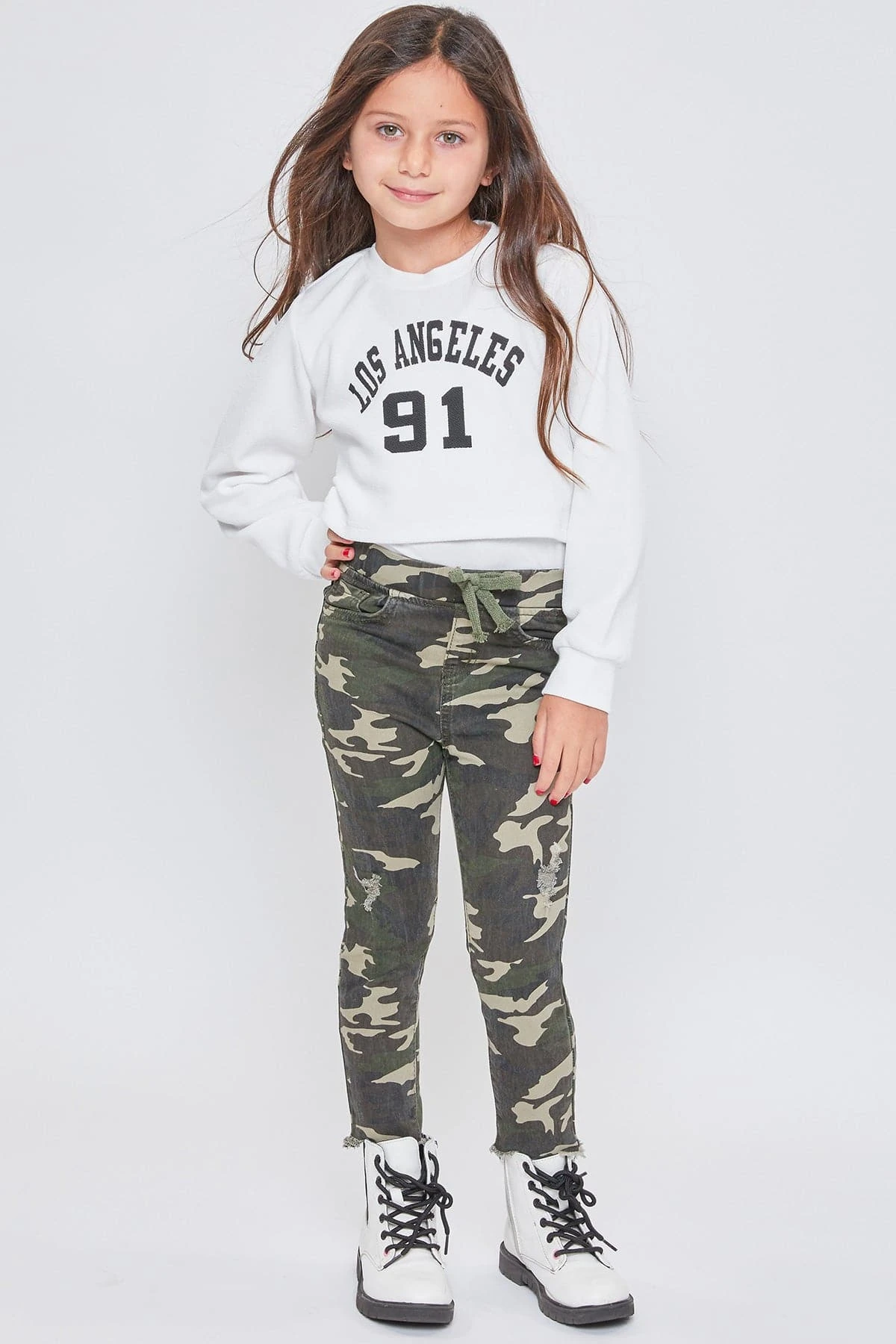Cool girl alert! Show off her sporty side in our Baby Girls Twill Pull-On Skinny Pant. Featuring a classic functional five-pocket styling and elastic waist, these pants are pull-on with a faux drawstring. Made with a stretchy material so they move with her comfortably throughout the day and finished with a distressed hem for a trendy look! Pair these with combat boots or sneakers and your favorite tee or pullover sweater!