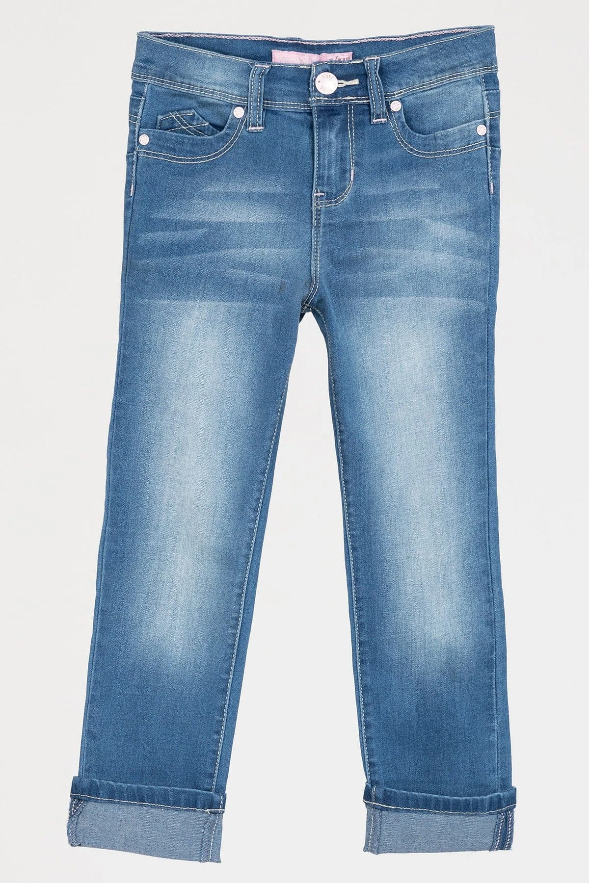 Our Baby Girls’ WannaBettaFit Cuffed Denim Skinny Jean. Featuring five-pocket construction, snap-summary closure beneath faux summary for an easy on and off, adjustable cuffs at the hem, and belt loops.