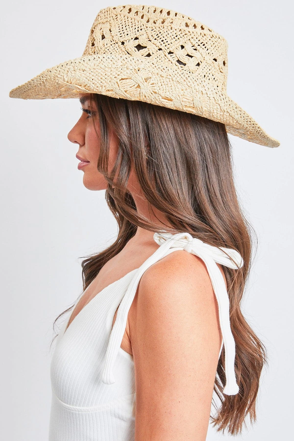 Giddy up and giddy ready for a darn tootin’ good summer with our Daisy Natural Straw Cowboy Hat! This western-style hat features a classic teardrop crown and open-weave design creating a lightweight feel that still keeps you shaded. Accented with a subtle band and curved brim. Style with your favorite YMI denim and boots to complete the perfectly on-trend coastal cowgirl ‘fit!