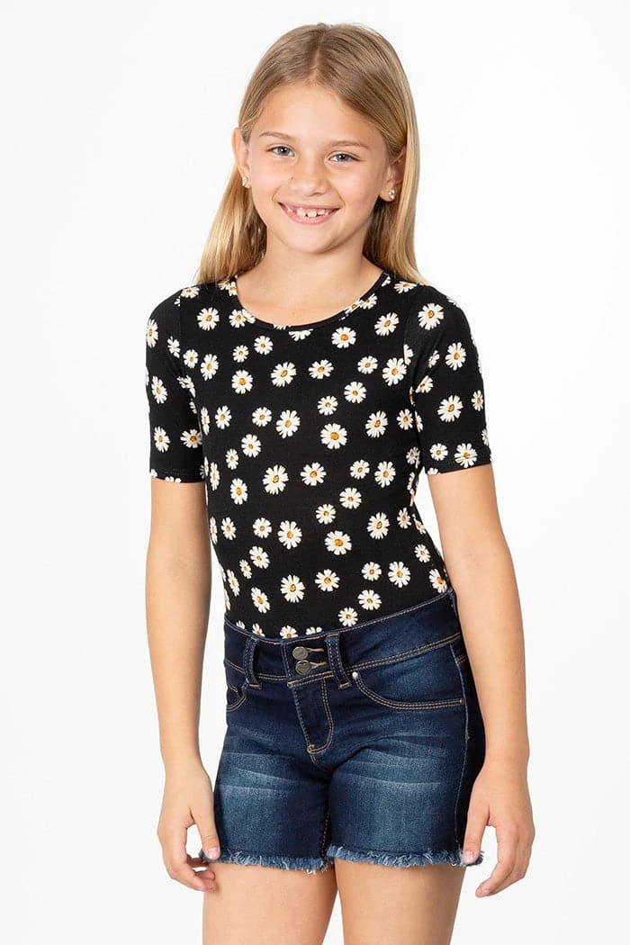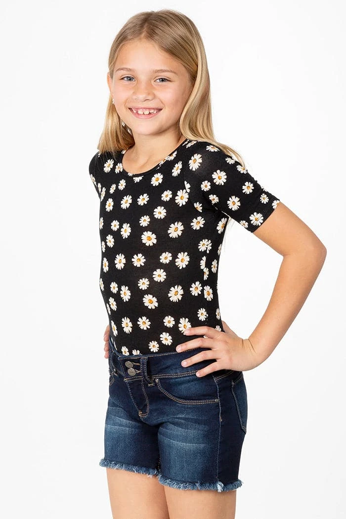 With double-summary closure and frayed at hem detailing, these Girls 2-Button Frayed Shorts are sure to be a best selling hit. Featuring faux front pockets, whisker fading throughout, and belt loops.