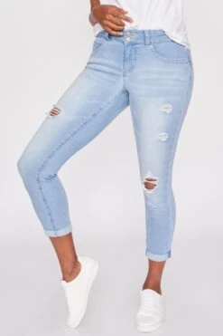 Our Girl’s 2 Button Skinny Jean With Optional Cuff. Featuring faux pockets on front with practical pockets on back, double-summary closure with front zip, cuffs that can be worn cuffed or uncuffed, and belt loops.