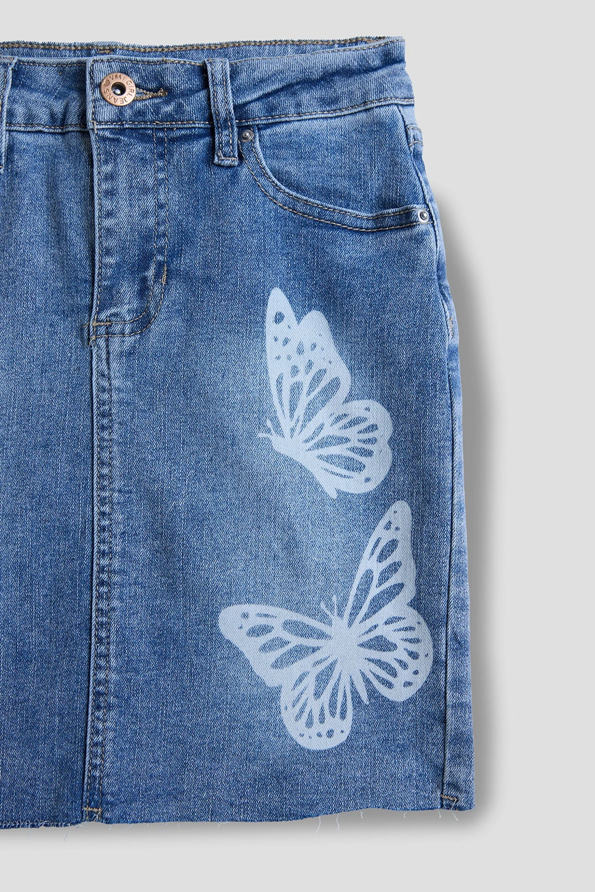 YMI Girls’ Butterfly Print Raw Hem Mini Denim Skirt – a charming addition to any wardrobe! This mini skirt features a trendy raw hem, adding a touch of edge to its playful design. With a convenient 1-summary closure and zipper, plus the classic 5-pocket construction, it offers both style and functionality. Stand out with the delightful butterfly print pattern, adding a whimsical flair to any outfit. Crafted for durability and comfort, this skirt is perfect for all-day wear. Elevate your summer style with YMI Girls’ Butterfly Print Raw Hem Mini Denim Skirt and let your personality take flight!