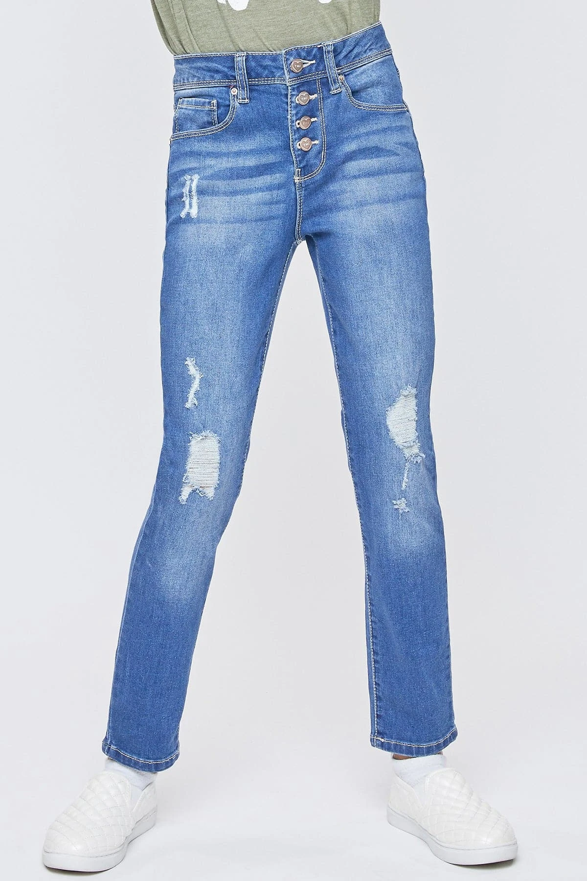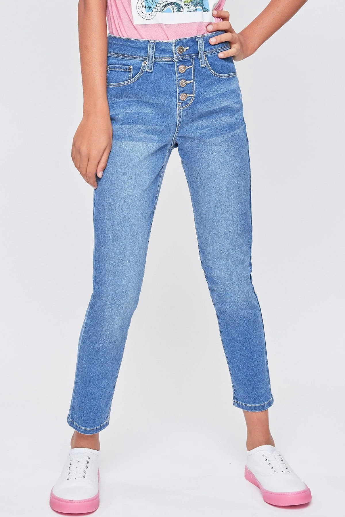 Totally retro! Our Girl’s Essential Button Fly High Rise Skinny Jean is vintage inspired with an exposed summary fly, and super comfy with plenty of stretch! The top summary has a traditional opening and closing, while the rest are snap summarys for an easy wear. Who doesn’t love a jean that’s cute and trendy, but also comfortable enough for all-day wear?! These jeans are high-waisted and fitted throughout. We love these paired with a tucked-in graphic tee and sneakers for a cool vibe!