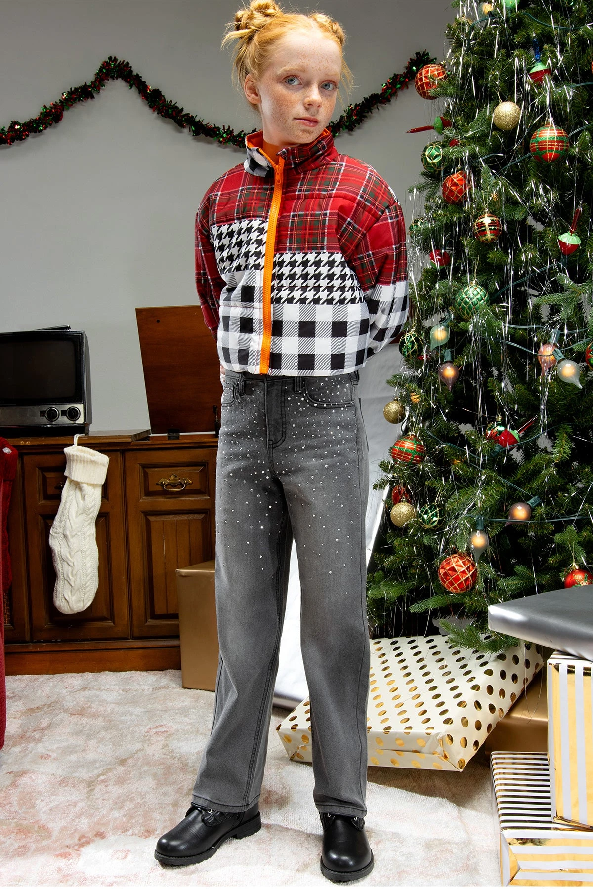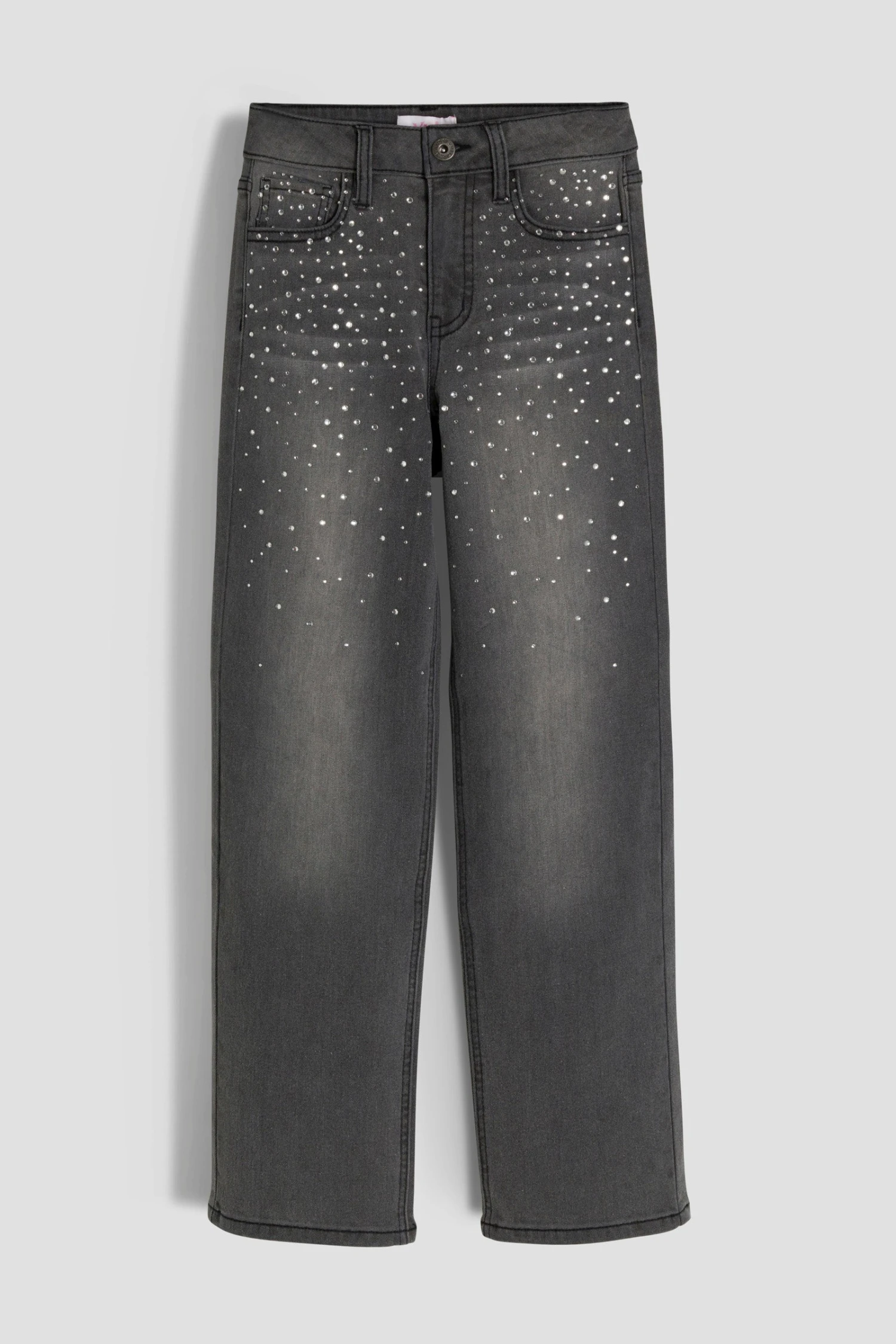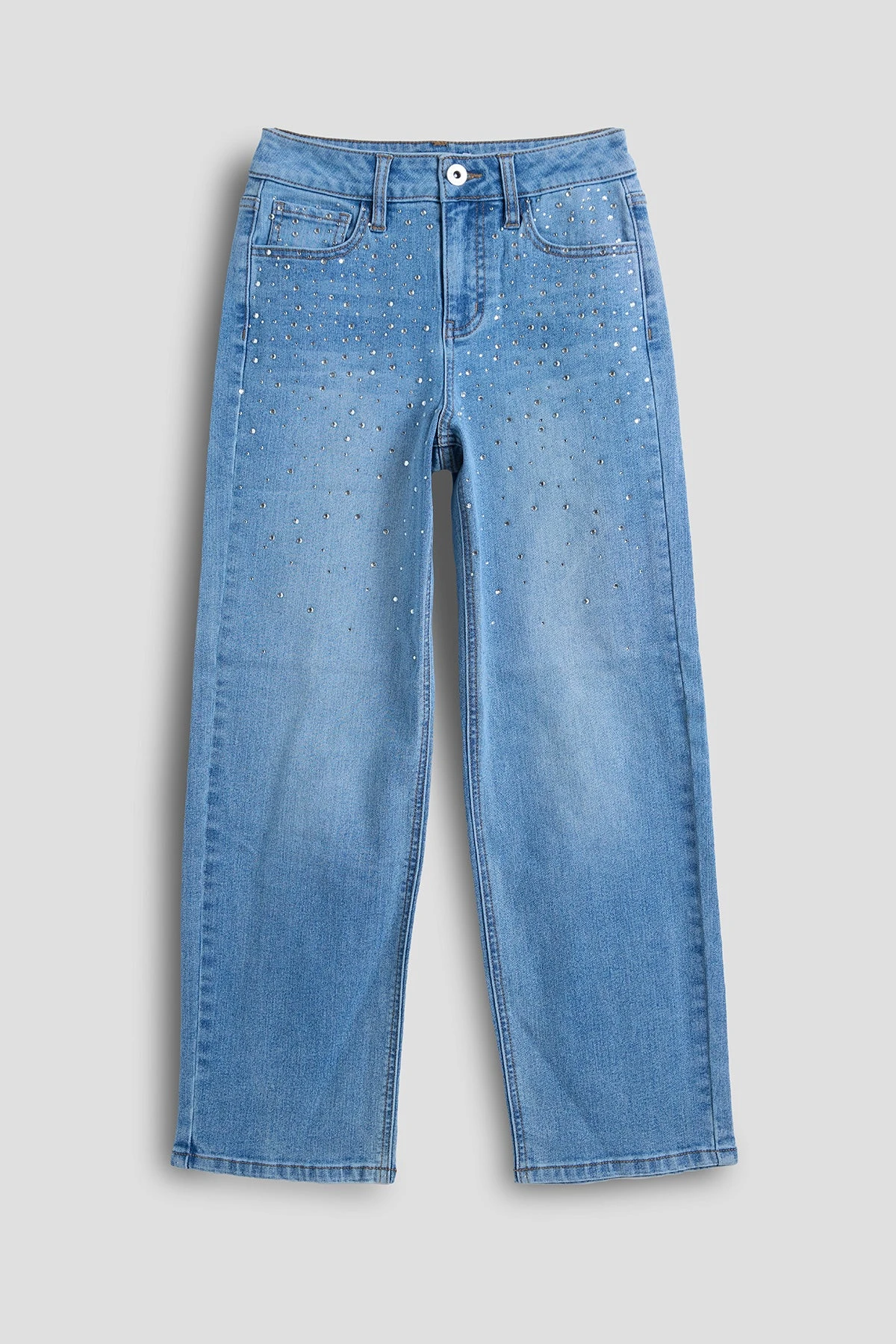 Add a touch of sparkle to her wardrobe with our Girls Izzy Rhinestone Straight Leg Jeans! These stylish jeans combine a classic straight-leg fit with dazzling rhinestone details, perfect for the young trendsetter who loves to shine. Ideal for school, parties, or any occasion where she wants to stand out.