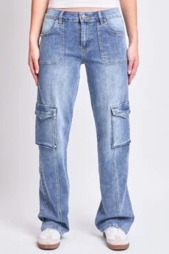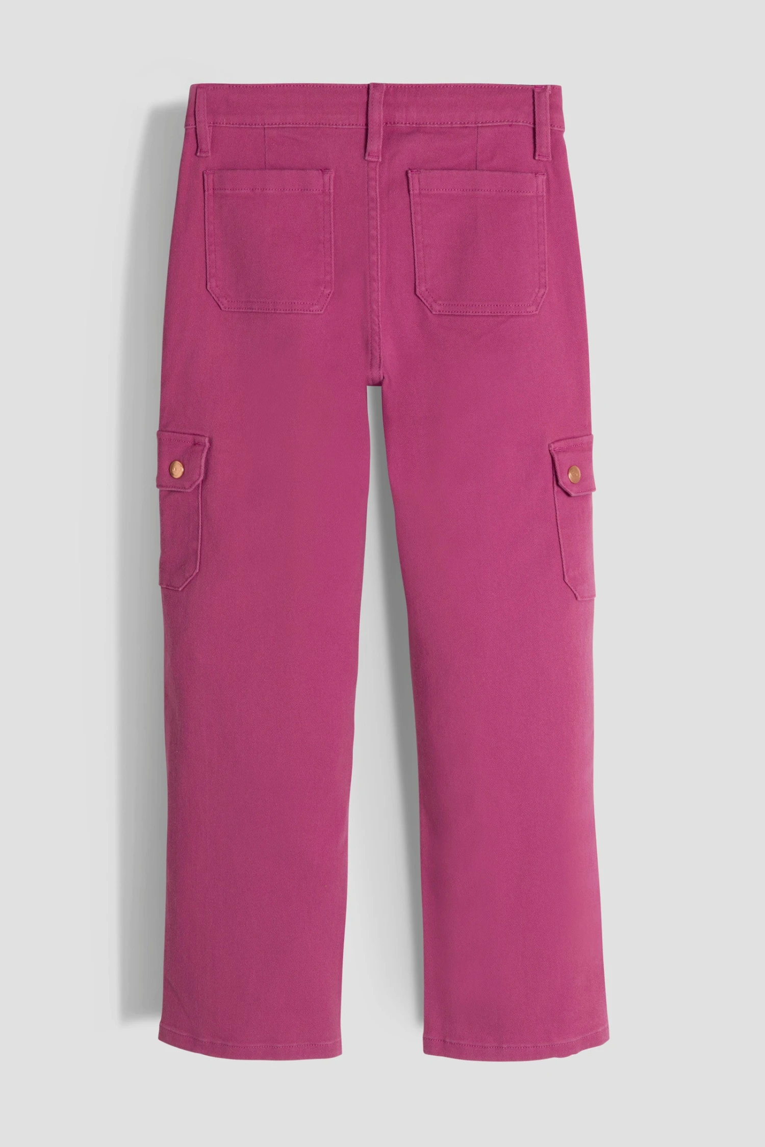 Elevate your everyday look with our Girls Selena High Rise Straight Leg Pork Chop With Cargo Pockets. These pants feature a flattering high rise fit and functional cargo pockets, perfect for storing your essentials in a trendy fashion. Step out in style and confidence with this must-have wardrobe staple.