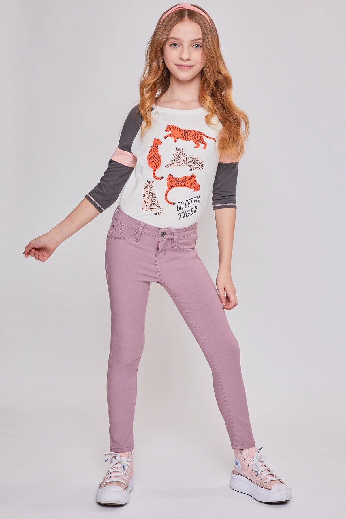 The feel of leggings with the look of a jean! One of our best sellers is now available in kids sizing! Our Girls’ Hyperstretch Forever Color Mid Rise Skinny Jean is made with specially constructed hyper stretch fabric, comfortable, flexible, and one of a kind! Available in a variety of colors for any day or mood!Â