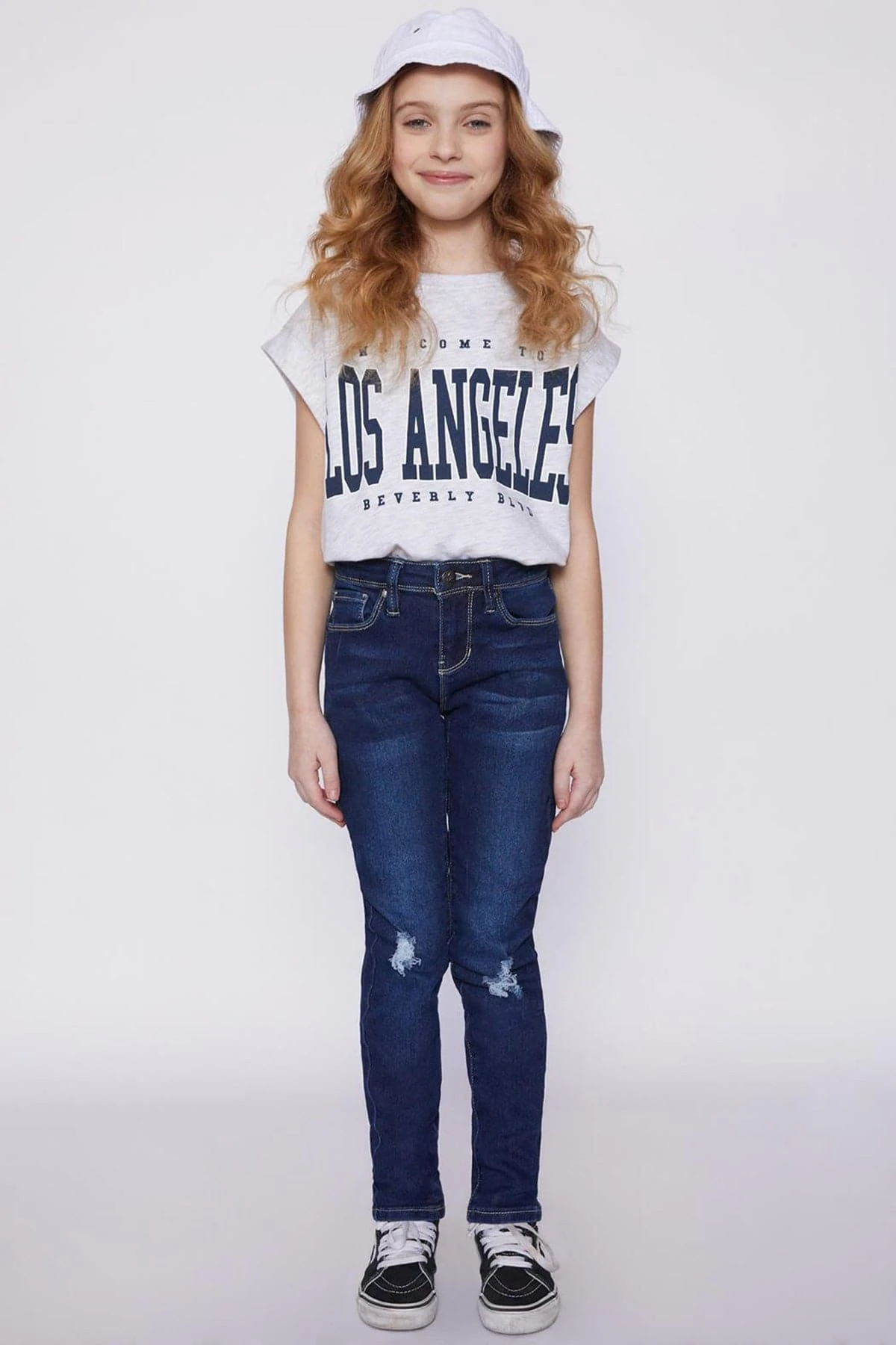 Our Girl’s 1 Button Basic Skinny Jean. Featuring classic five functional pockets, one-summary closure with front zip, traditional hem, and belt loops.