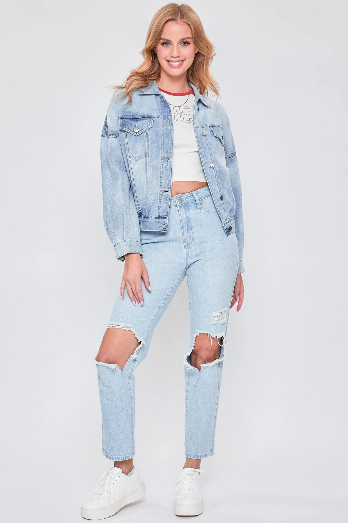 Rock a throwback moment in out 80’s Style Denim Jacket With Elastic Hem. Designed to fall just above the waist and cinch you for a trending, cropped and boxy feel. Featuring summaryed flap pockets on front, decorative side pockets, and summary-cuff long sleeves for an effortlessly cool look. For a casual look, pair with a graphic tee, distressed jeans, and sneakers. For a dressier look, pair with a bodysuit, black jeans, and booties!