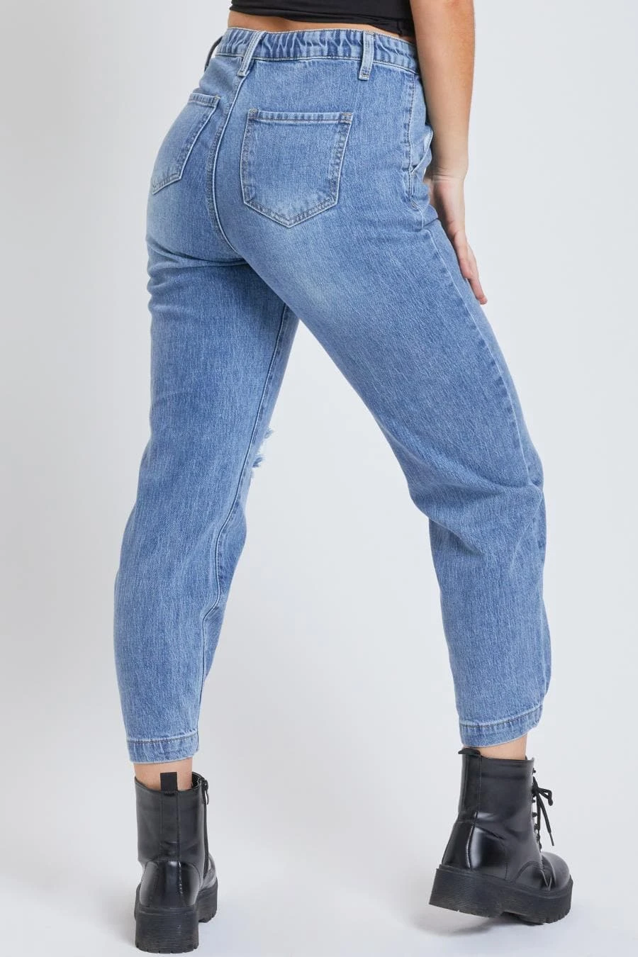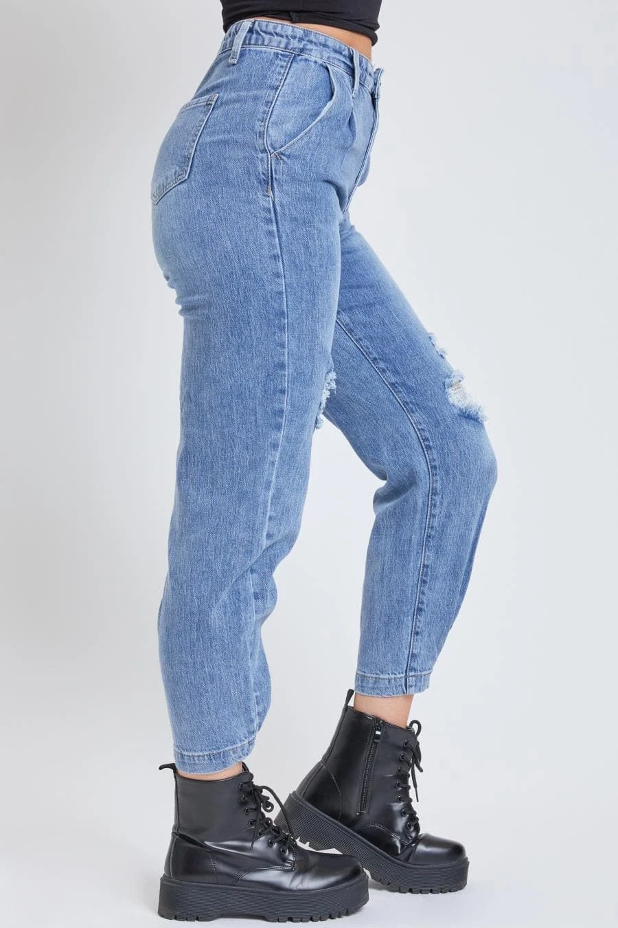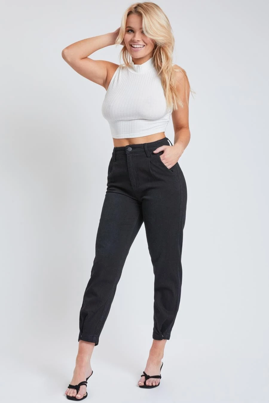Try something new with our Women’s Balloon Fit Ankle Jean! These high-waisted jeans feature a relaxed balloon fit and optional summary-cinched ankle that creates a flattering vintage-inspired silhouette. Detailed with an elastic waistband in the back and pleats in the front. Style these denim pants with a fitted crop and heeled sandals for a summery vibe.