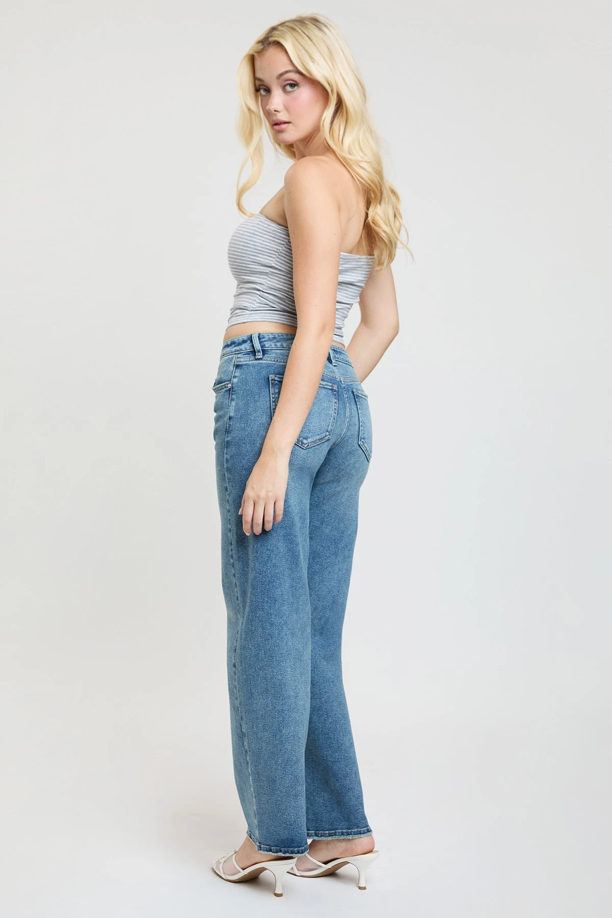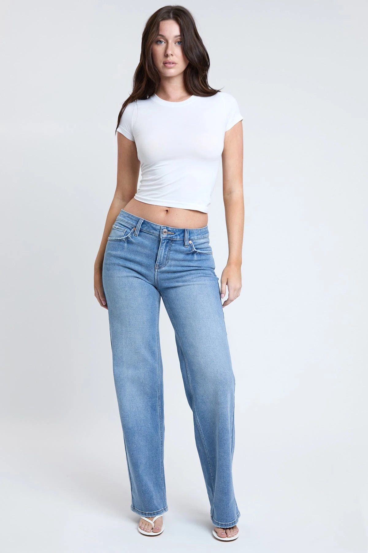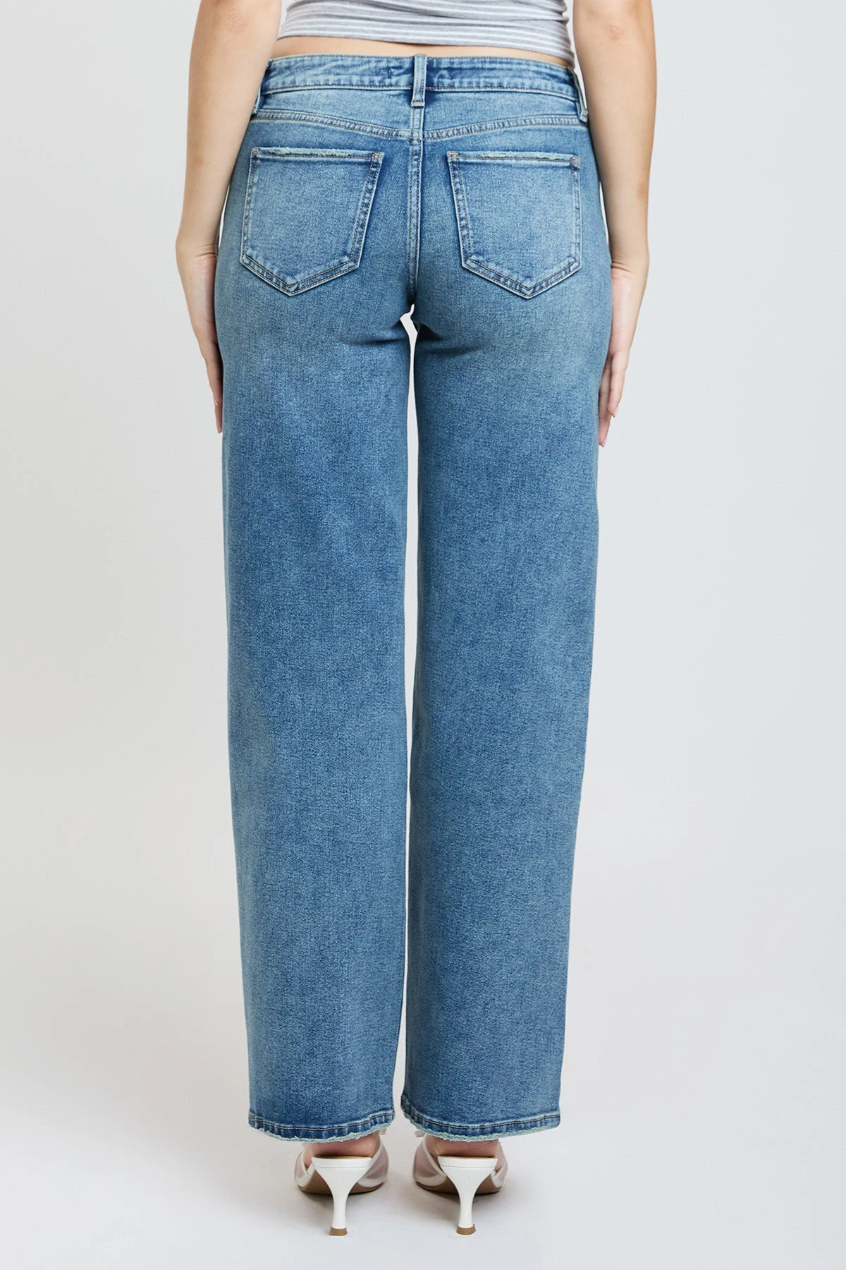 The Women’s Brittany Low Rise Wide Leg Jeans bring a relaxed yet stylish vibe to your everyday look. Designed with a flattering low-rise fit and a roomy wide-leg cut, these jeans offer both comfort and effortless style. The classic 5-pocket design, belt loops, and secure zipper and summary fly add to their timeless appeal. Made from a soft fabric blend with a touch of stretch, they provide ease of movement while maintaining their shape. Perfect for pairing with fitted tops or oversized sweaters, these jeans are a versatile staple for any casual outfit.