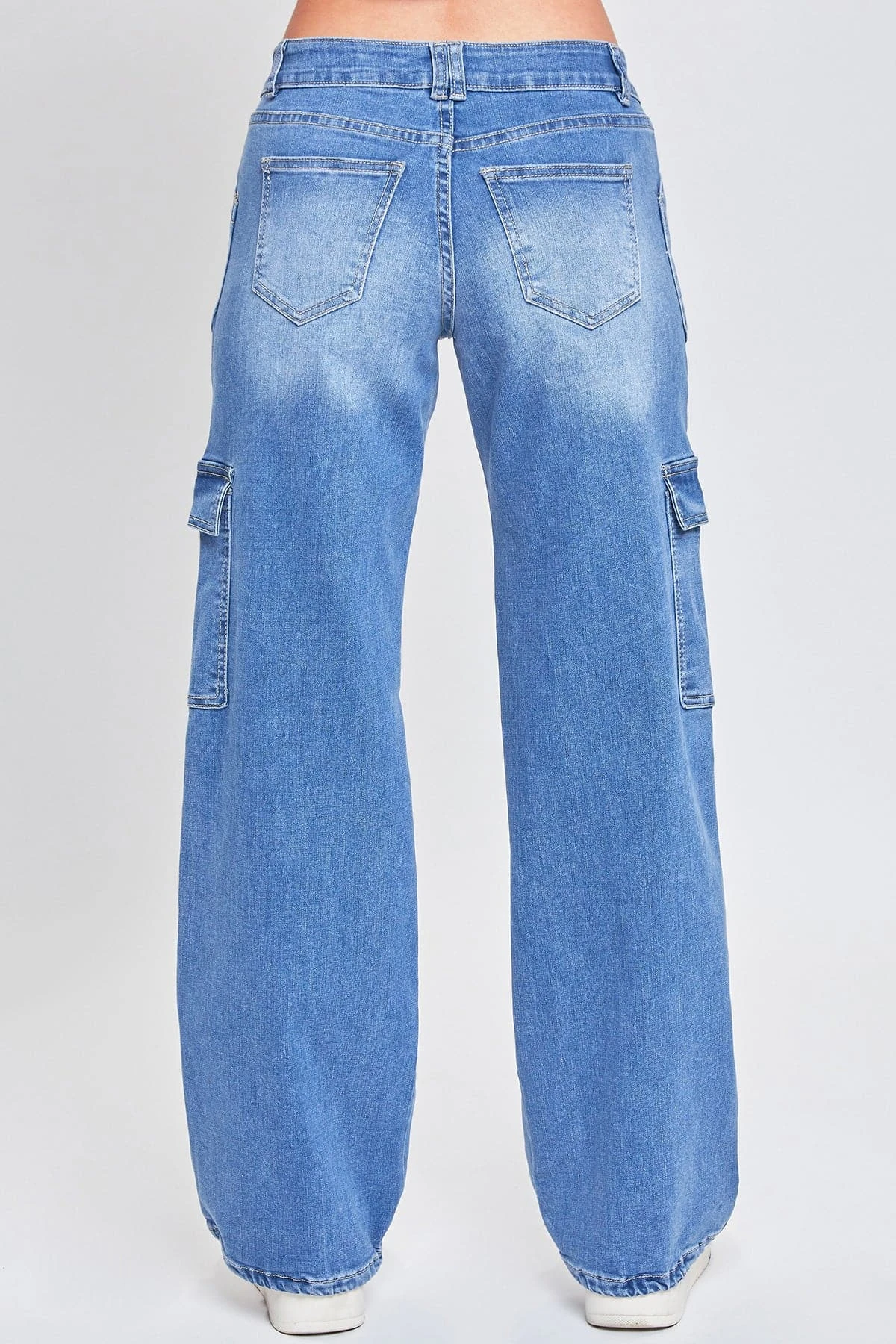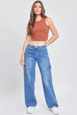 Take your style to the next level with our Women’s Low Rise Cargo Jean with Bungee Hem. These low-waisted denim pants feature a full-length straight leg and finish with bungee ties at the bottom for an optional cinched ankle. This jean is super flattering on the butt while maintaining a comfortable, relaxed fit. Pair with a bodysuit and platform slide sandals for a casual day look, or a corset and tennies for a cute sultry-sporty combo.