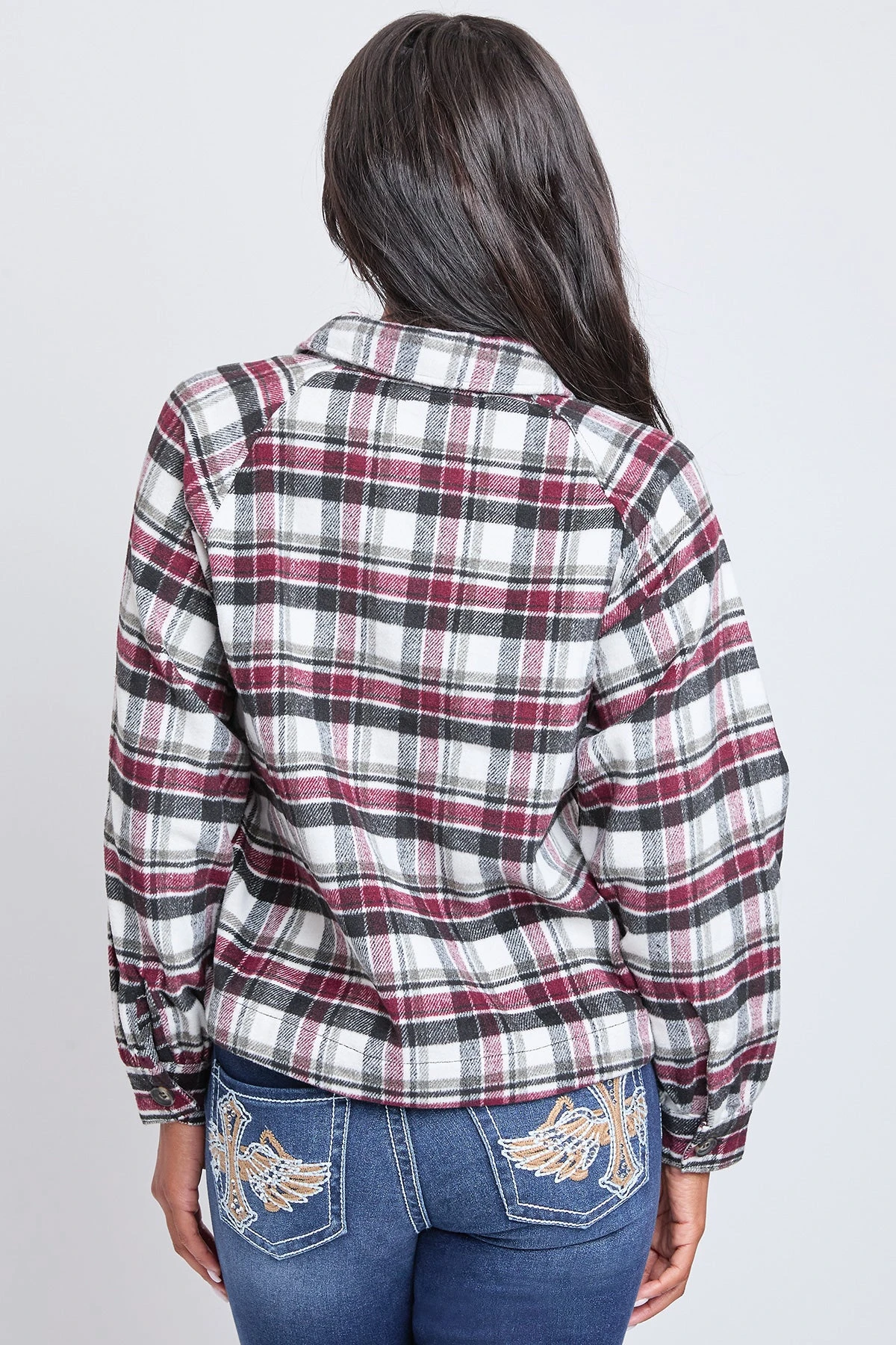 Transition from Summer to Fall with our new Oversized Plaid Shacket! Featuring long sleeves with a cropped fit, two front pockets, five summary closure and thick collar. Style with a pair of dream fit jeans and a cute top for a look we are loving.