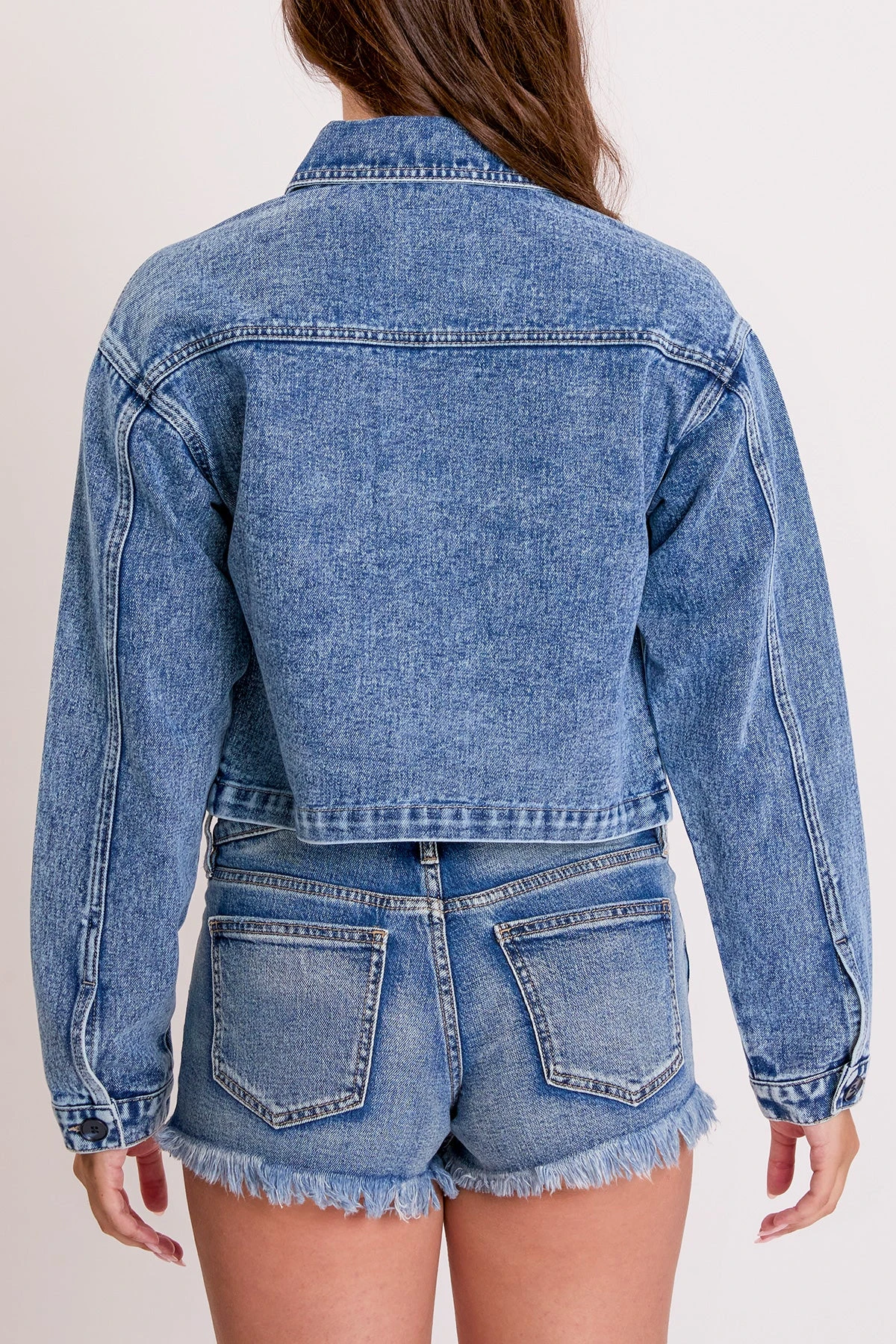 This jacket combines the structured look of a classic denim trucker with a more contemporary cropped cut, making it the perfect piece to layer over your casual and chic outfits. The summaryed patch pockets provide added detail while remaining practical.