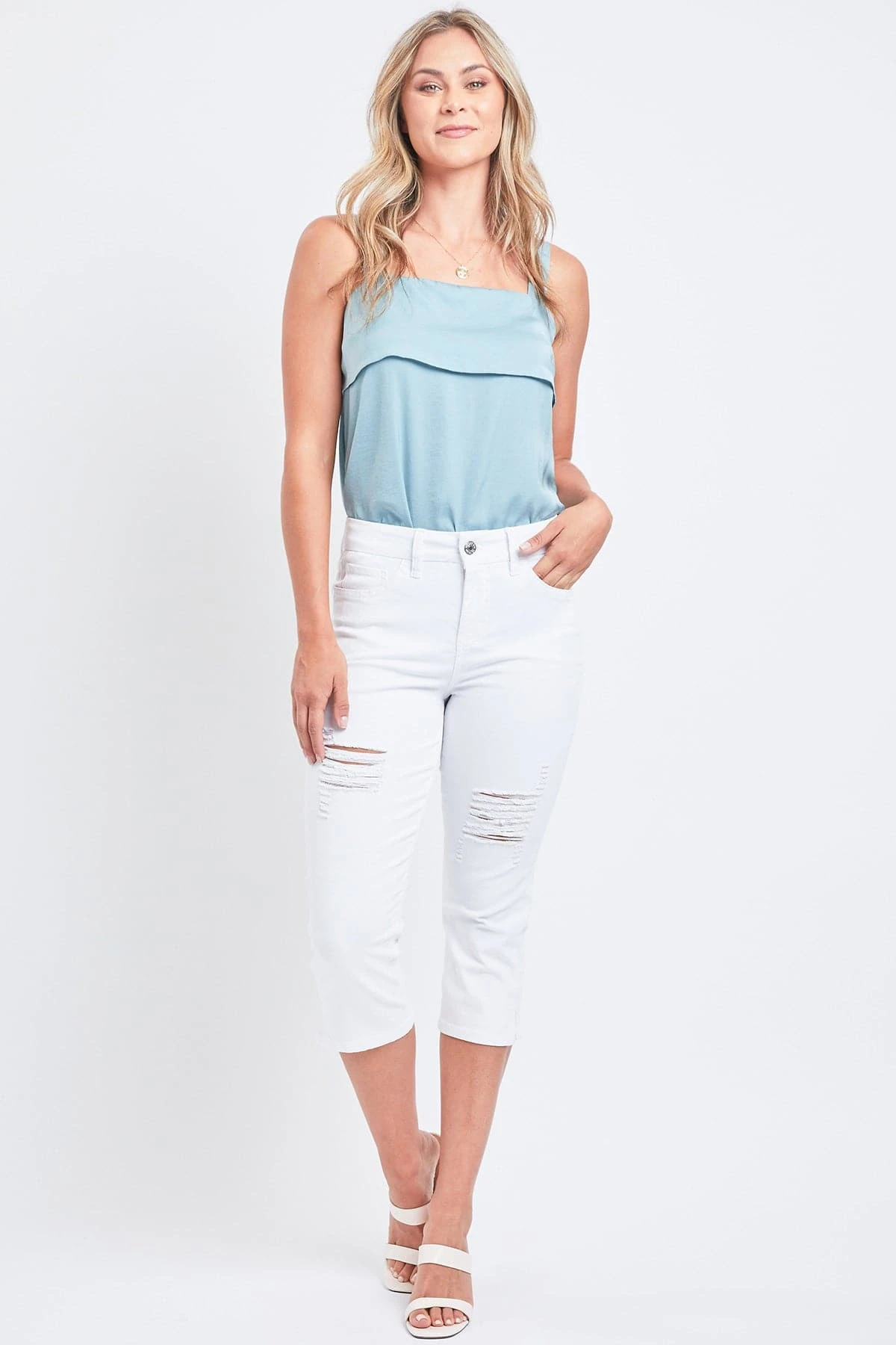 Hello Summer weekend uniform! You’ll be living in our Curvy High Rise Side Slit Hem Capri Pants this Summer! Designed in the perfect length, just below your knees, to keep you cool and side slit hems so they move with you. We’ve added some light distressing to give you some edge. Wear these with a cute tee and flat sandals for an easy-going look, or dress up with a blouse and heeled sandals!