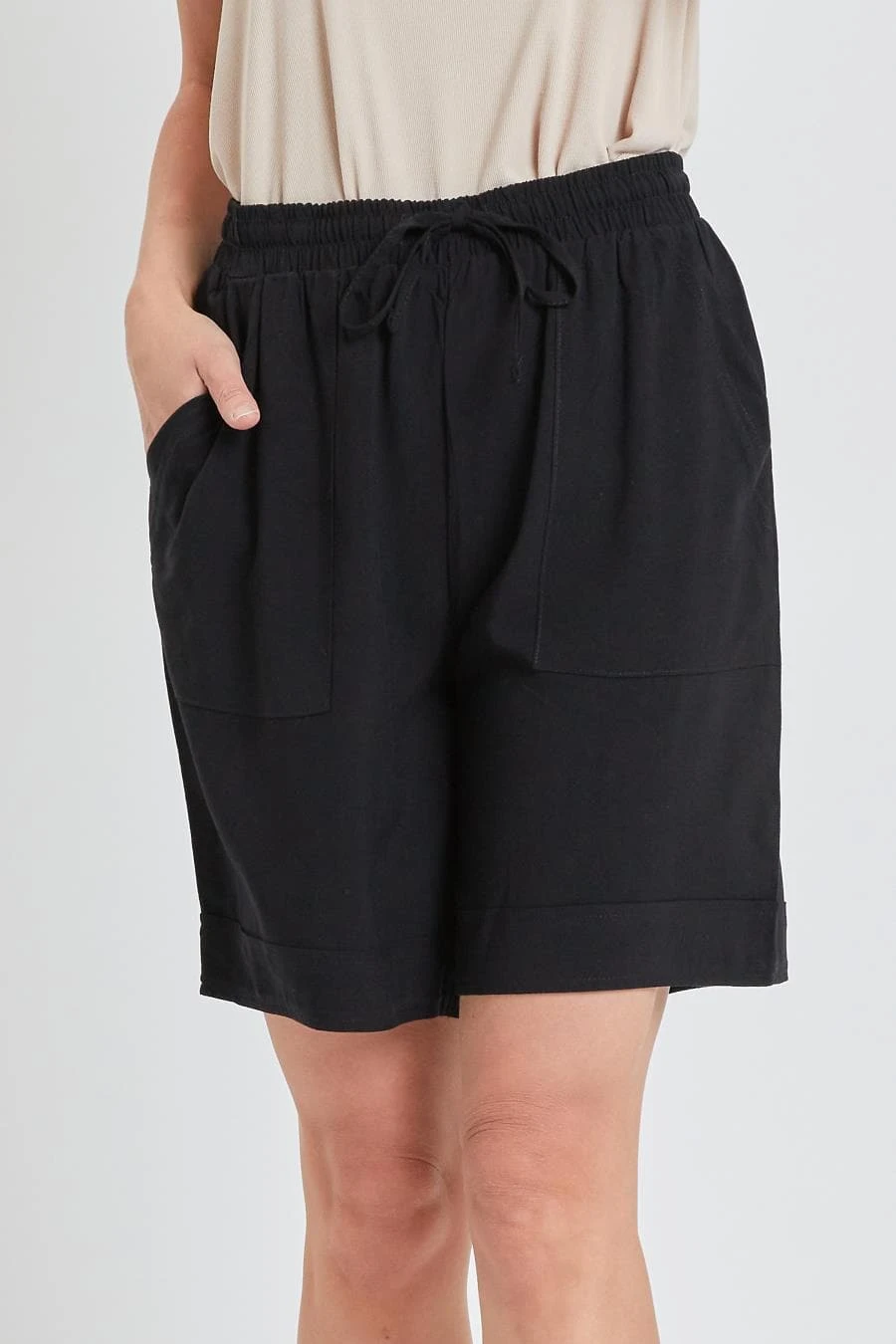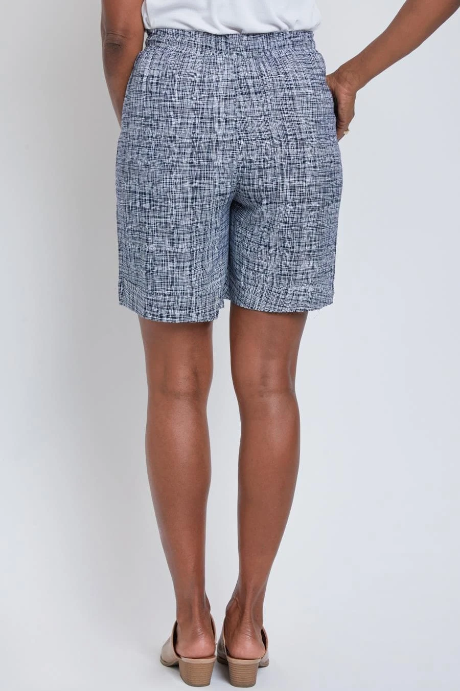 Our Women’s Double Cuff Shorts With Pork Chop Pockets are going to be your new favorite go to! Featuring front tie, elastic waistband, pork chop pockets, and cuffed hem. This garment moves with you throughout the day for a comfortable fresh fit.