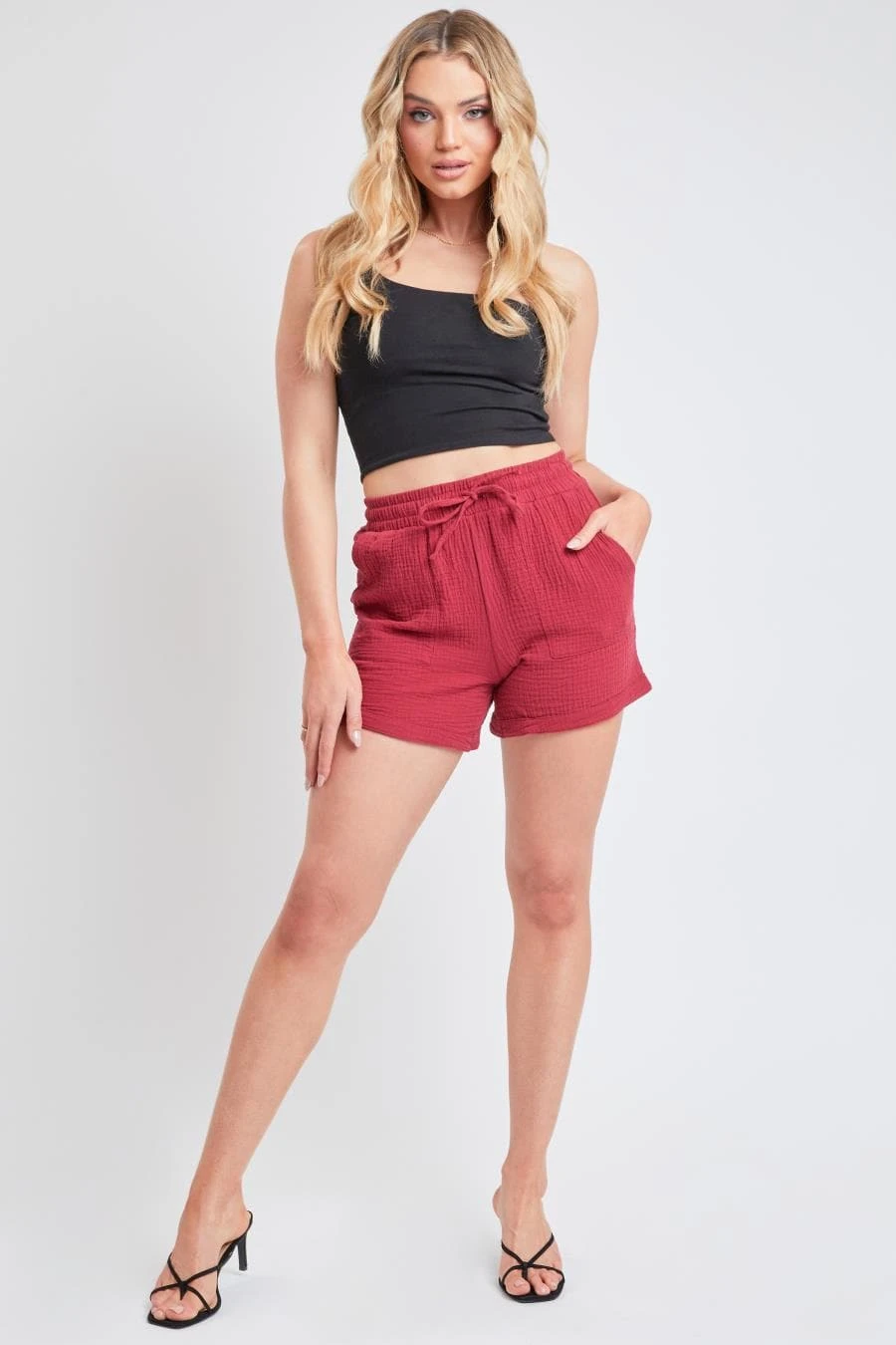 A must-have in your summer wardrobe! Our Women’s Double Gauze Drawstring Banded Hem Shorts with Porkchop Pockets are light and breezy and made with 100% cotton. These shorts are fun and flirty and easy to pack for any warm adventure ahead! Pair with a flowy top and sun hat for an effortlessly chic look, or wear with a bodysuit and wedges for a dressier vibe!