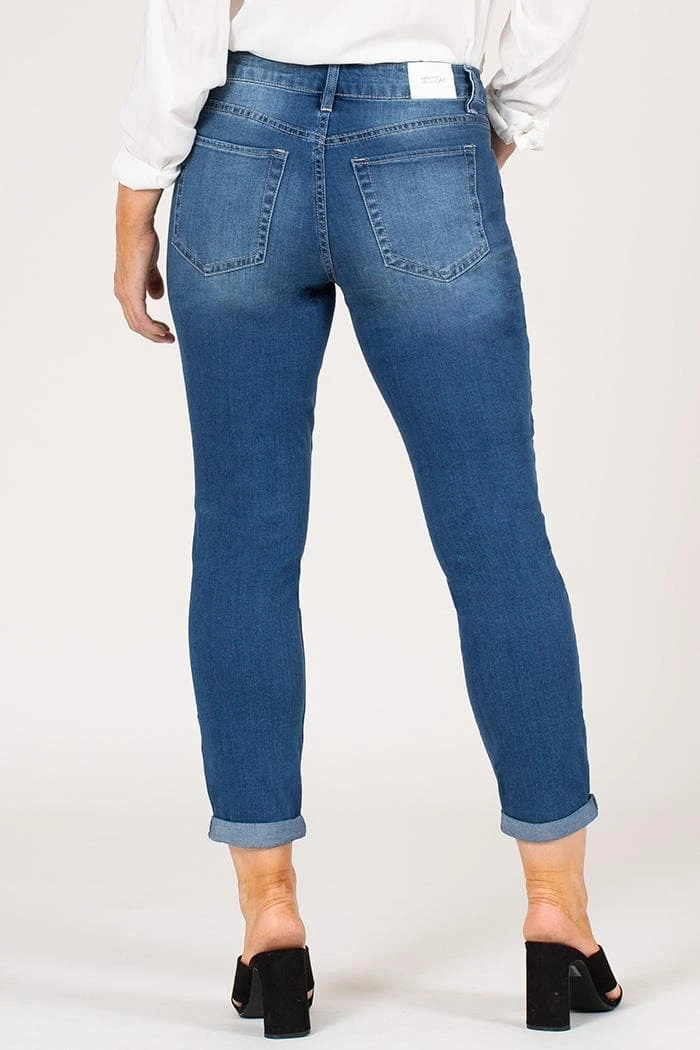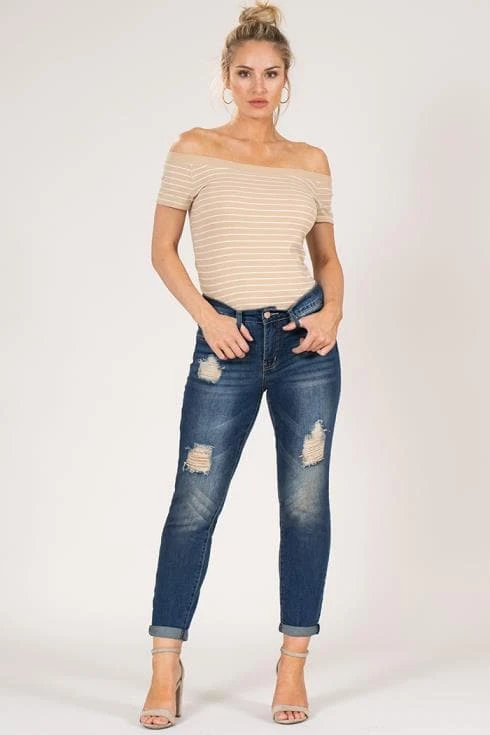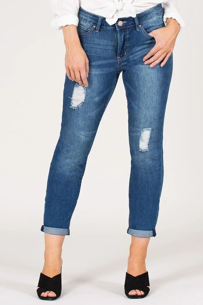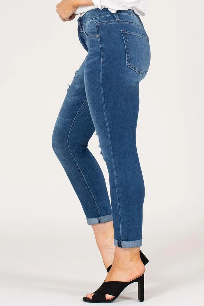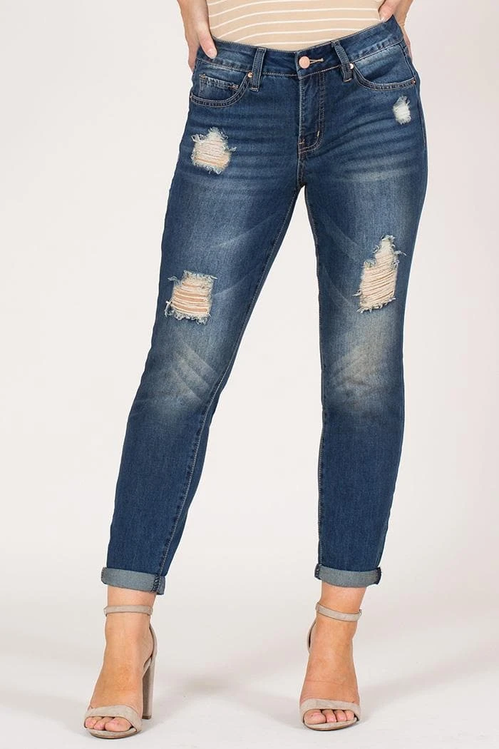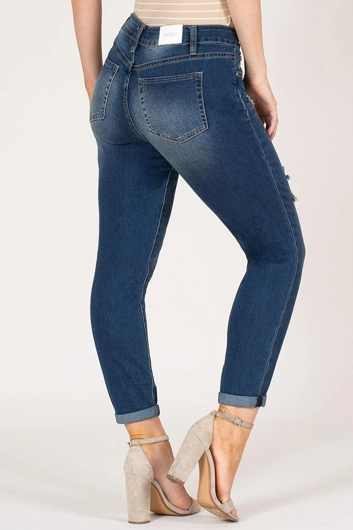 Introducing our first ever Hybrid Denim! Our Dream Collection is everything you have ever wanted in a pair of jeans. 100% Cotton, perfect distressed, rigid denim on the front and comfortable, butt-hugging, stretch denim on the back. Simply put, the best of both worlds. Featuring a high-rise fit, 5-pocket construction, rolled cuffed hems, single-summary closure with front zip and belt loops.