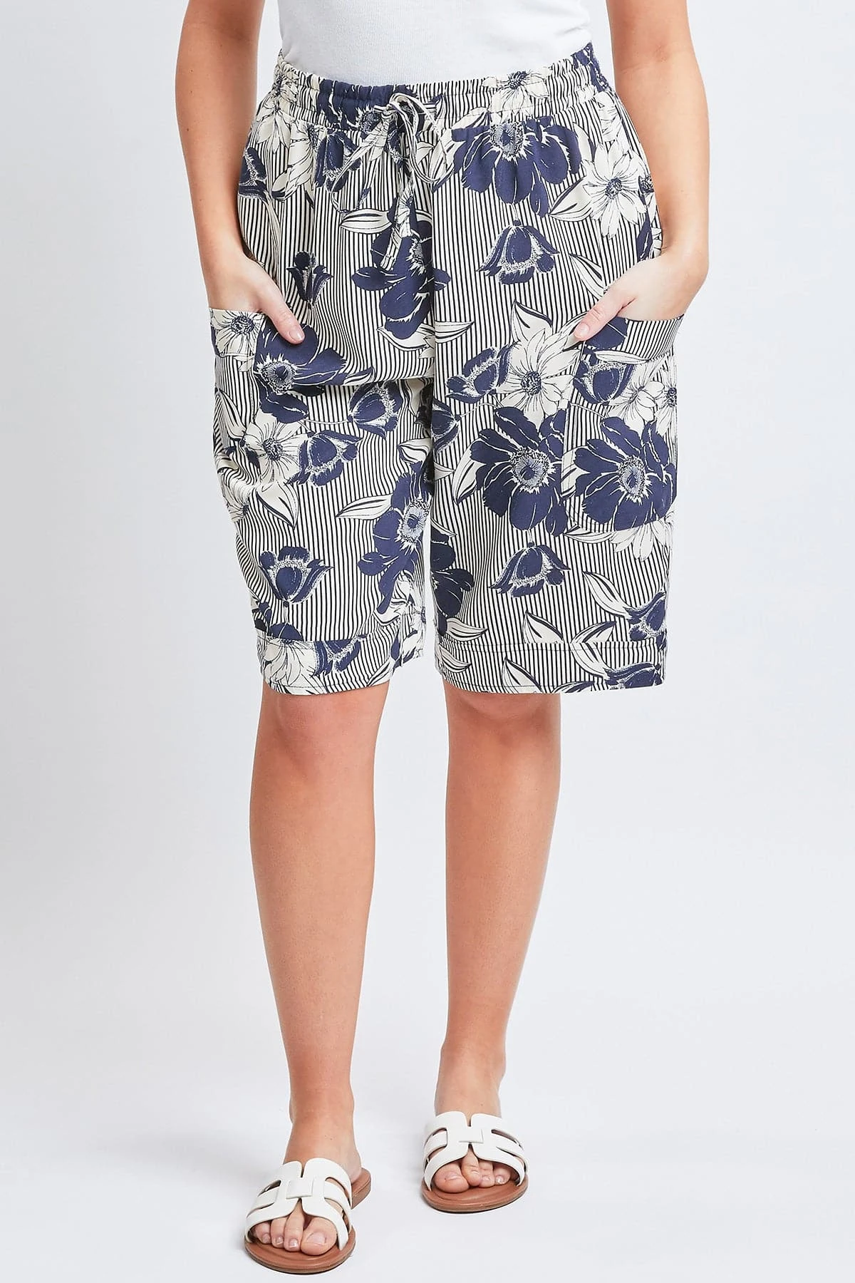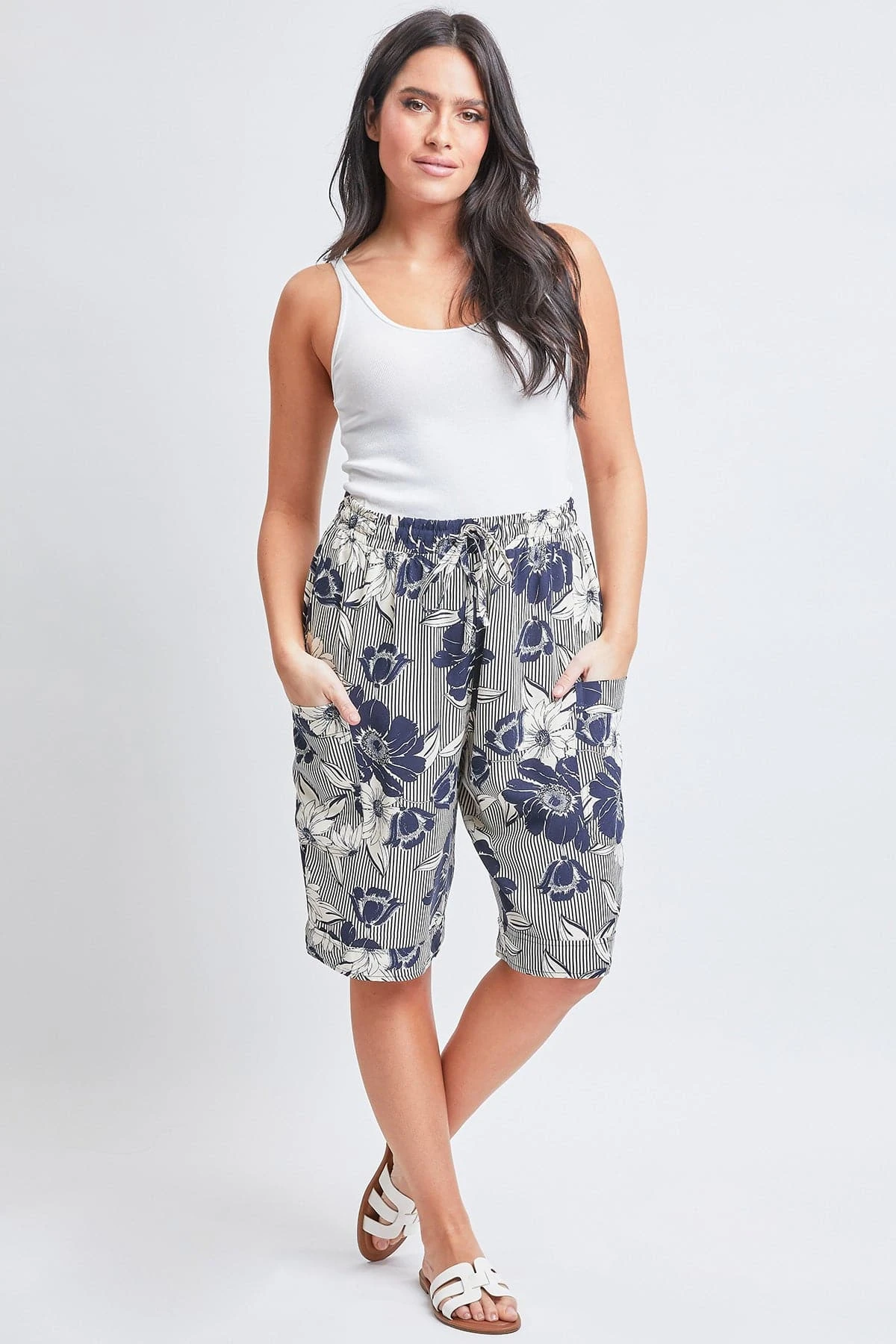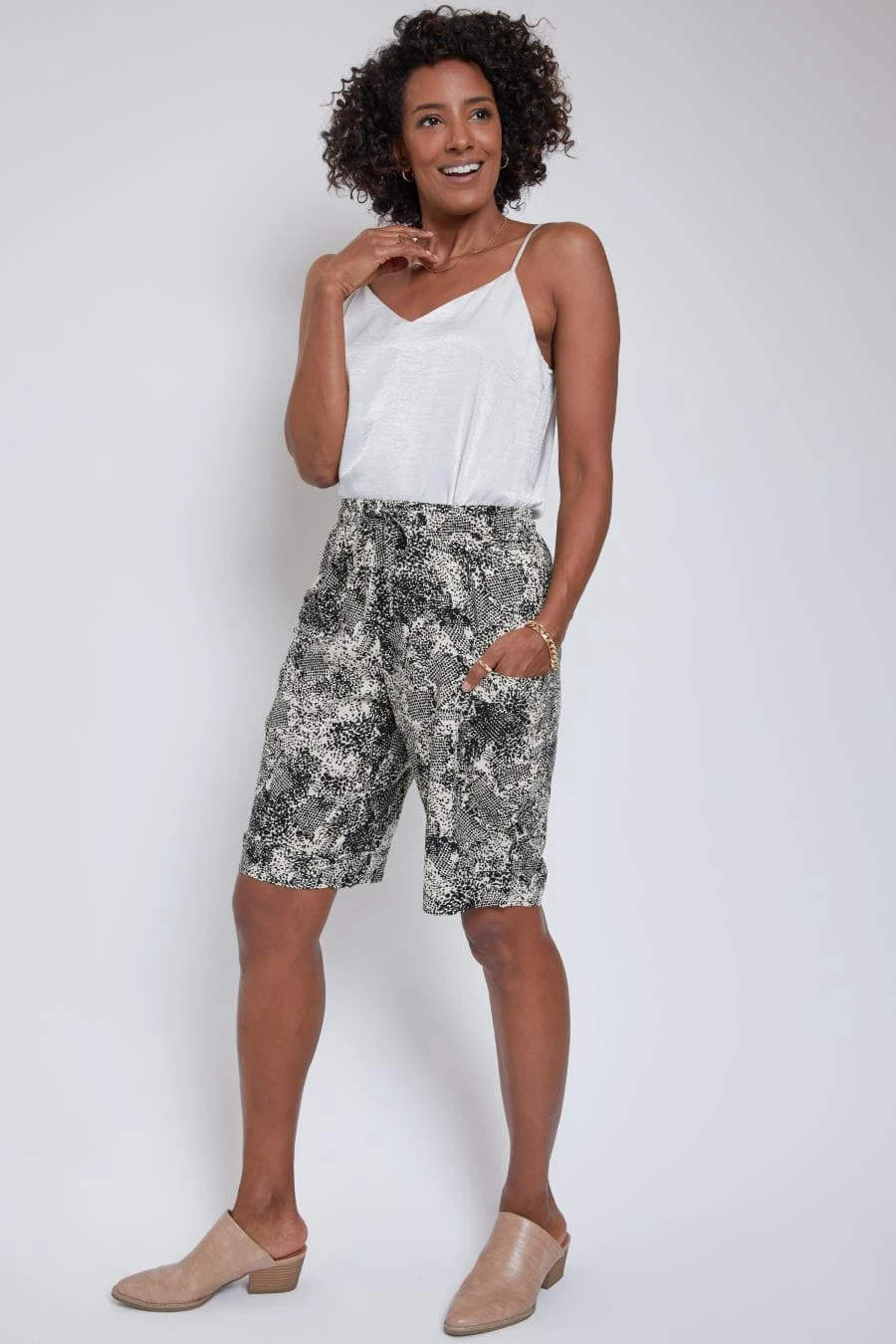 Go casual or go chic – you can do it all in our Women Elastic Waist Bermuda with Patch Pockets! These bermudas are super versatile and easy to wear. Featuring an elastic drawstring waistband for comfort and control and front patch pockets for convenience. Wear these casually with a tee and flat sandals, or dress them up with a silk cami, light layering piece, and wedge heeled sandals!Â