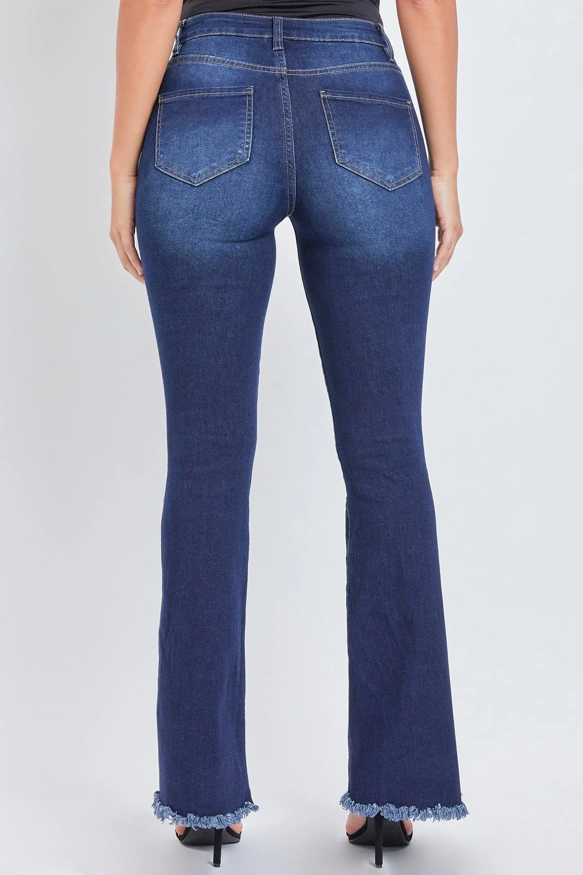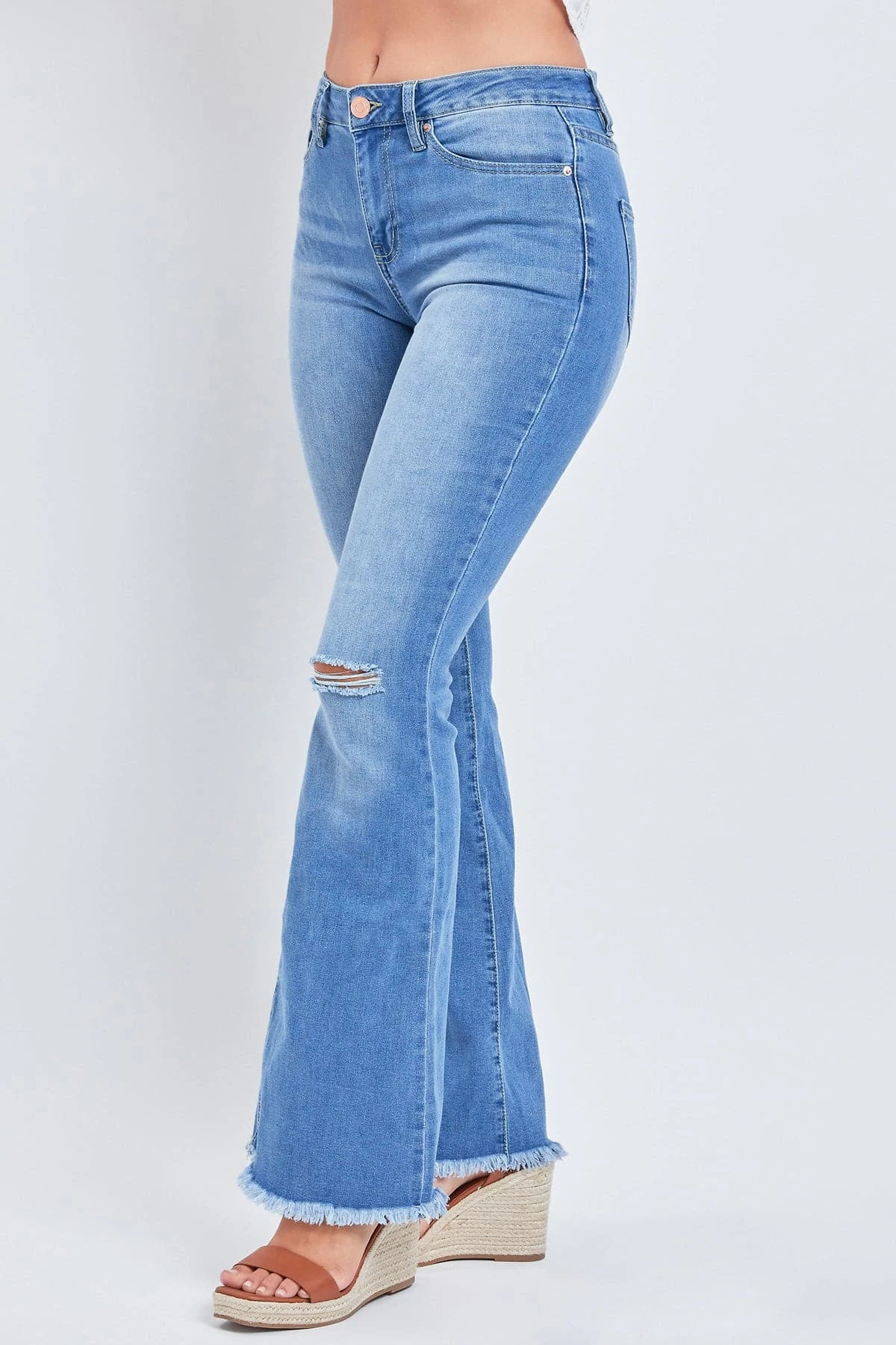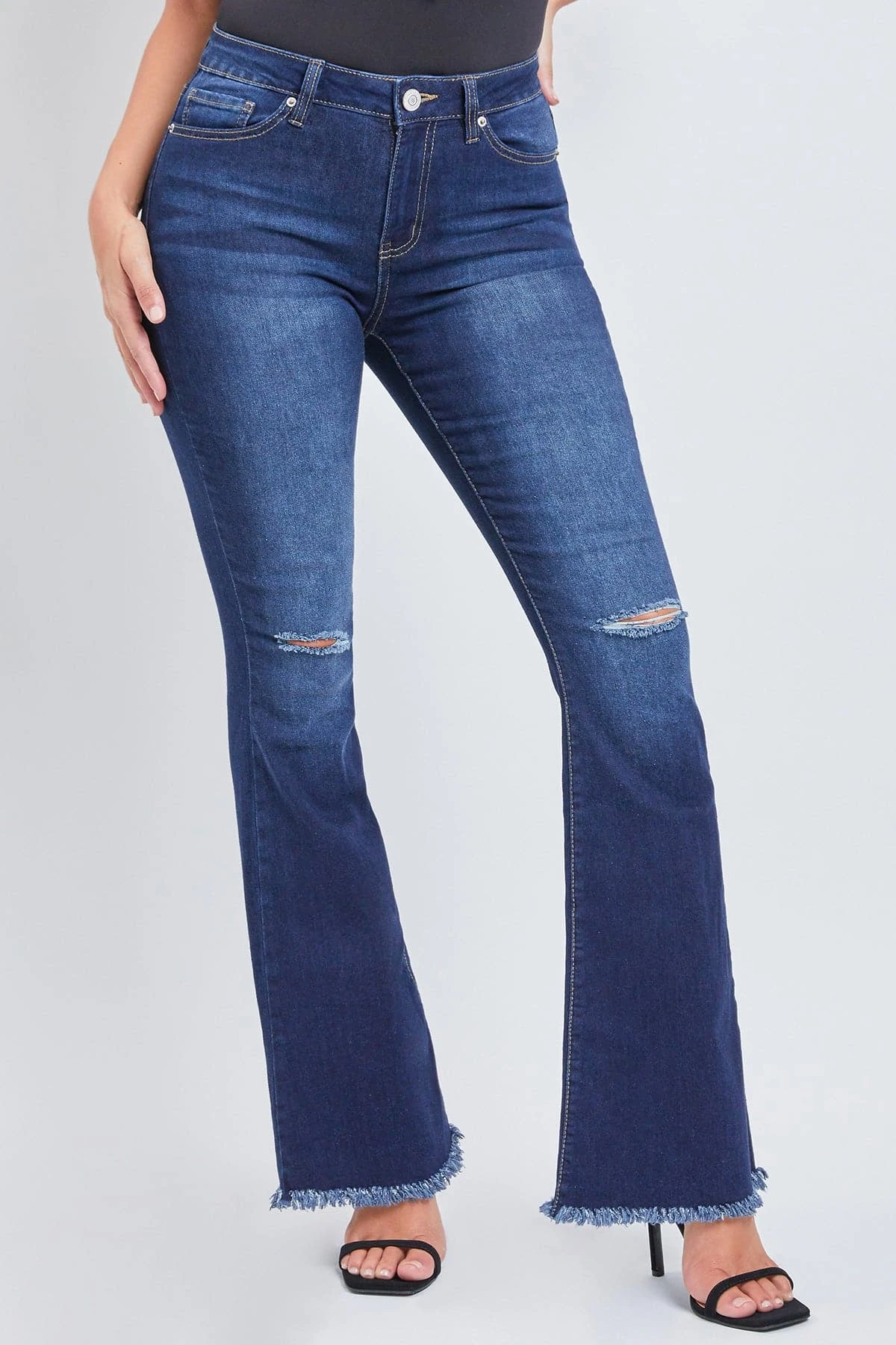 Retro is back and we’re all about it! Bring some flirt and flair to any look with our Women’s 1-Button High-Rise Fray Hem Flare-Regular Inseam. Get the look of vintage with this perfect 70s-inspired, flare silhouette, but get all the comfort in our soft and stretchy denim. This slim-to-flare leg is designed to lean and elongate your legs, while flattering your every curve. Pair them with sneakers for a casual vibe, or dress up with strappy heels or booties!