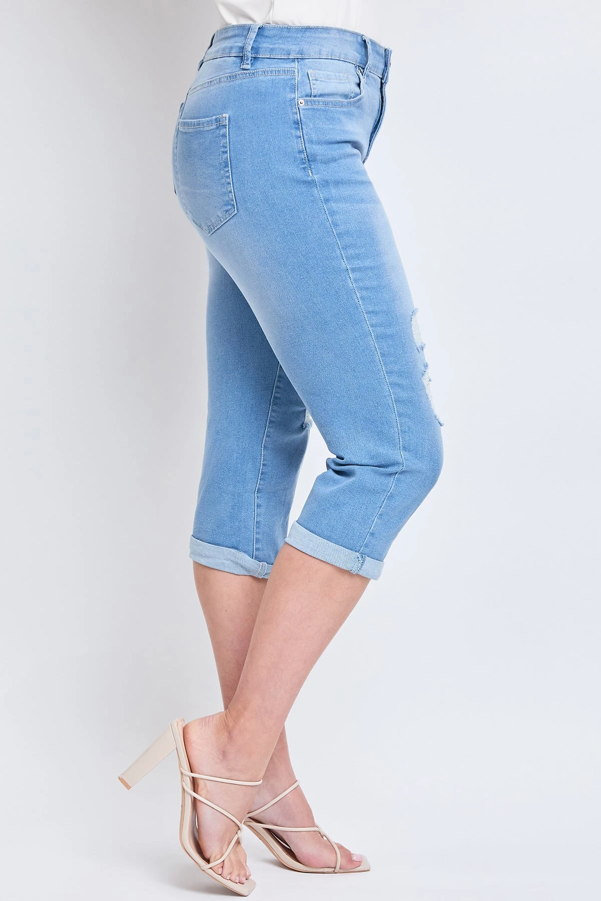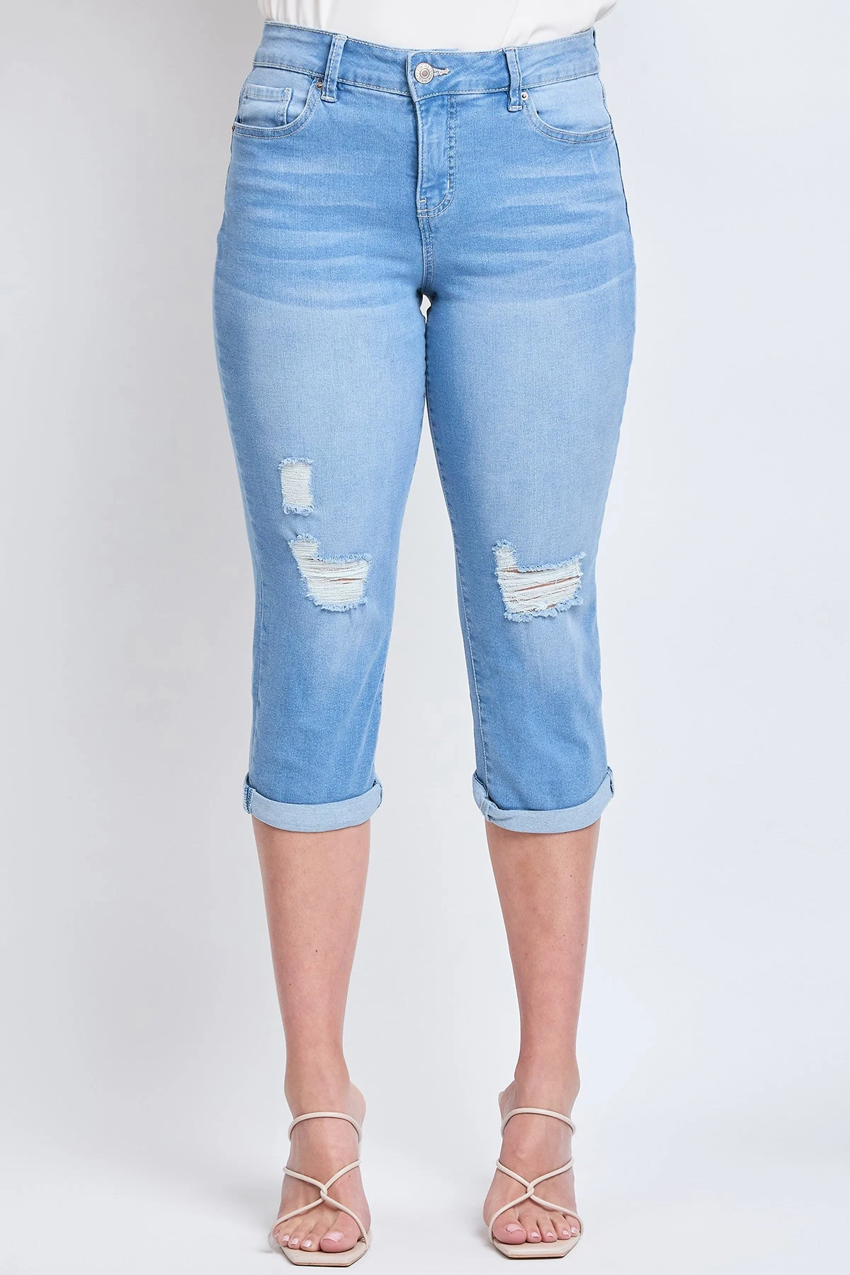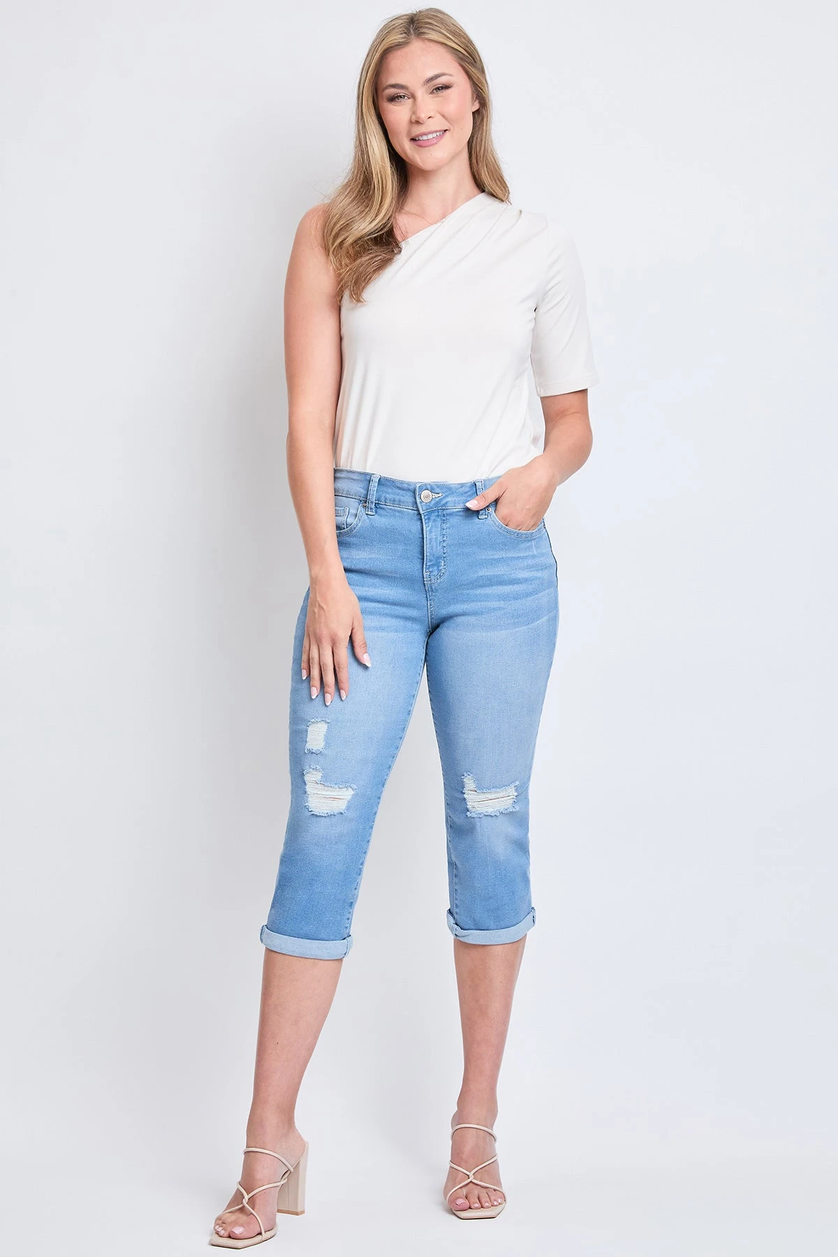 Channel your effortless style in our Women’s Essential High Rise Cuffed Capri Jeans. These denim pants feature a flattering high waist and are cropped right below the knee with an untacked, double rolled cuff. Style with your favorite tank and heeled sandals for a look worthy of springtime.