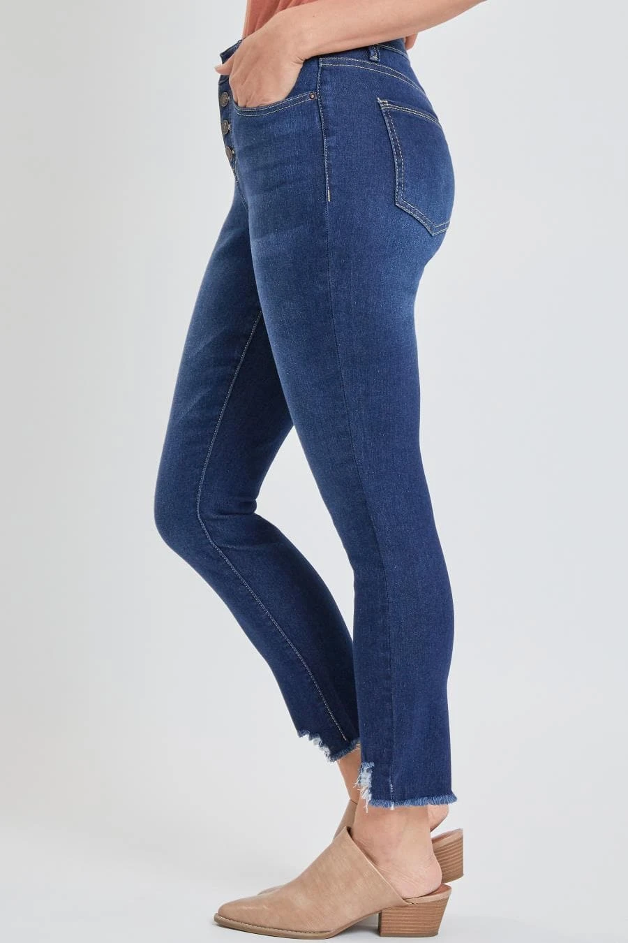Our Exposed 4 Button Skinny Ankle Jean With Recycled Fabric is the best closet staple to wear with every OOTD. Featuring an exposed summary-fly for a vintage-inspired look. We’ve also added some light whiskering, subtle fading, and distressed hems for a perfectly lived-in effect. Made in a high-rise for the most flattering fit. Not to mention, these jeans are made from recycled fibers so you can be sustainably stylish! Pair these with a tucked in top and your favorite shoes to show off the trendy features of these jeans!