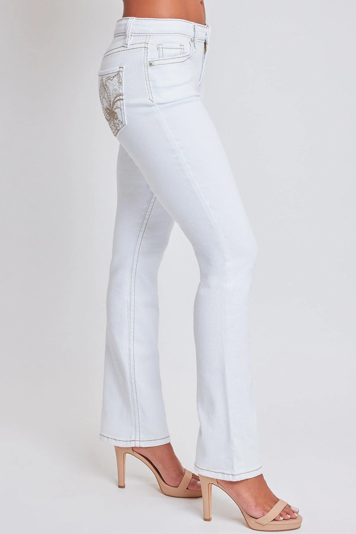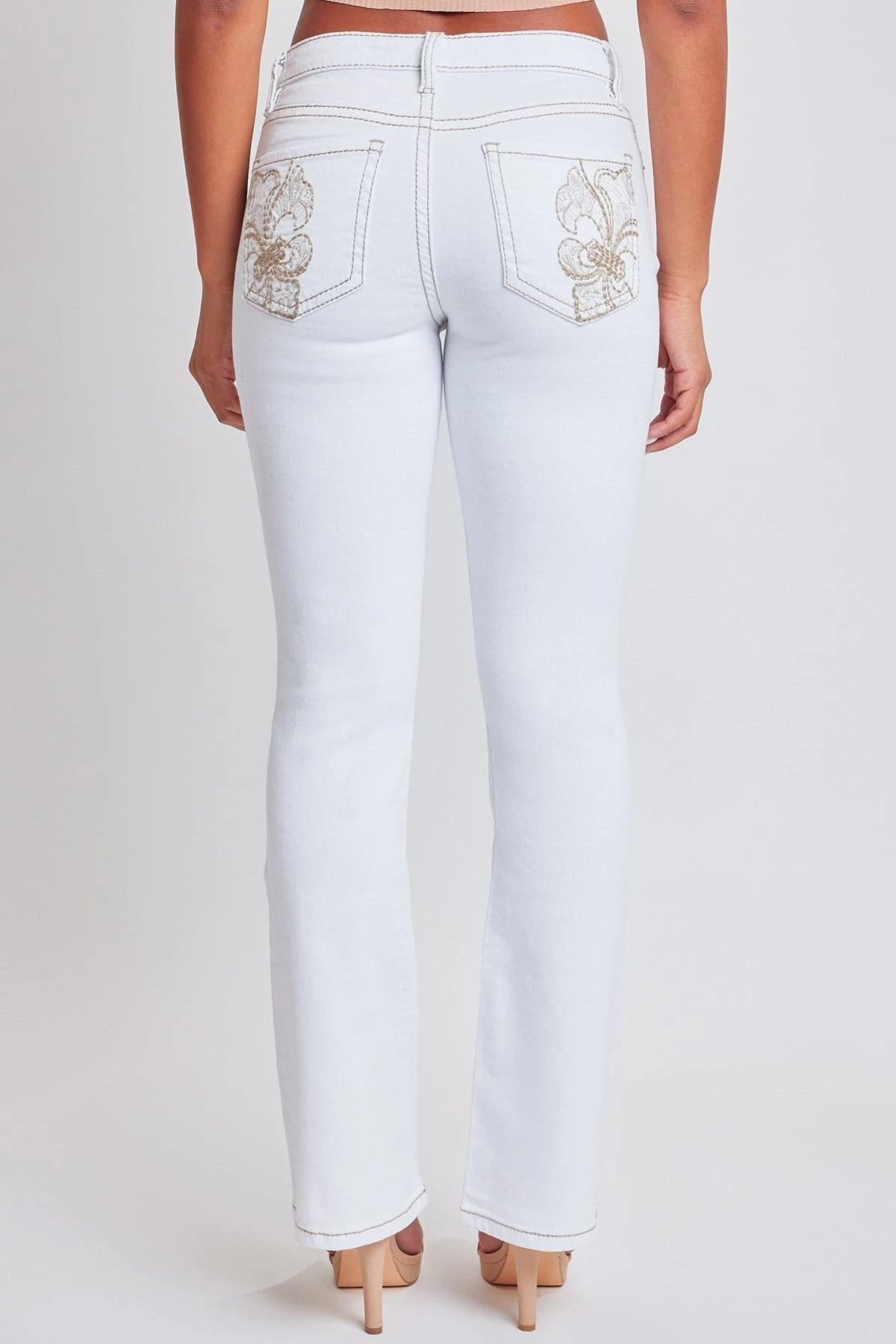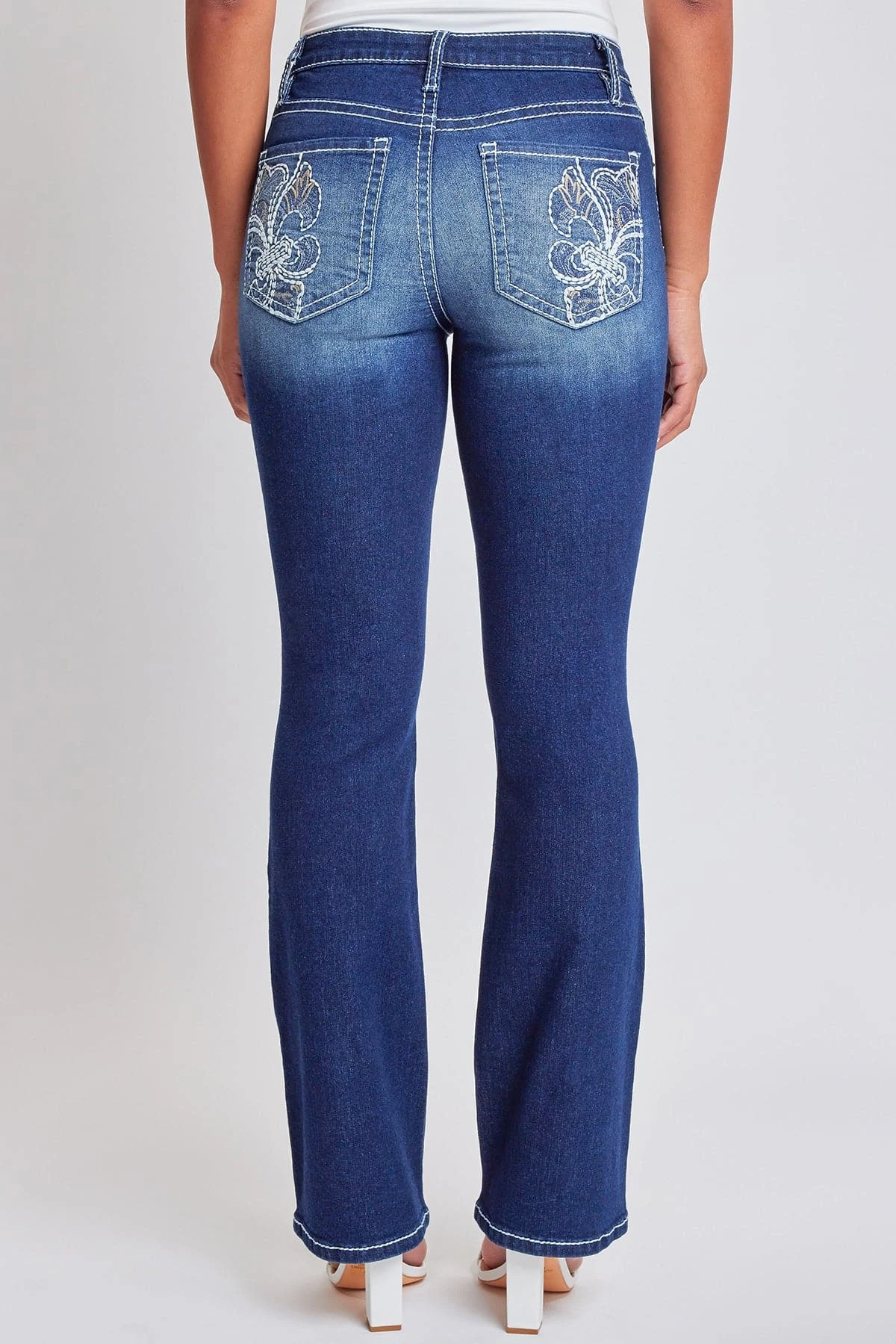 Bring a touch of nostalgia to your wardrobe game in our Junior Embroidered Heavy Stitch Bootcut Jeans. These jeans combine timeless design with modern details, offering a mid-rise fit, classic 5-pocket style, eye-catching embroidered rear pockets with flap and summary closure, and intricate stitching throughout. The boot cut silhouette adds a touch of vintage charm, and the full-length design makes them versatile for any occasion. Dress it up with a crisp white summary-down shirt, a statement belt and strappy heels.