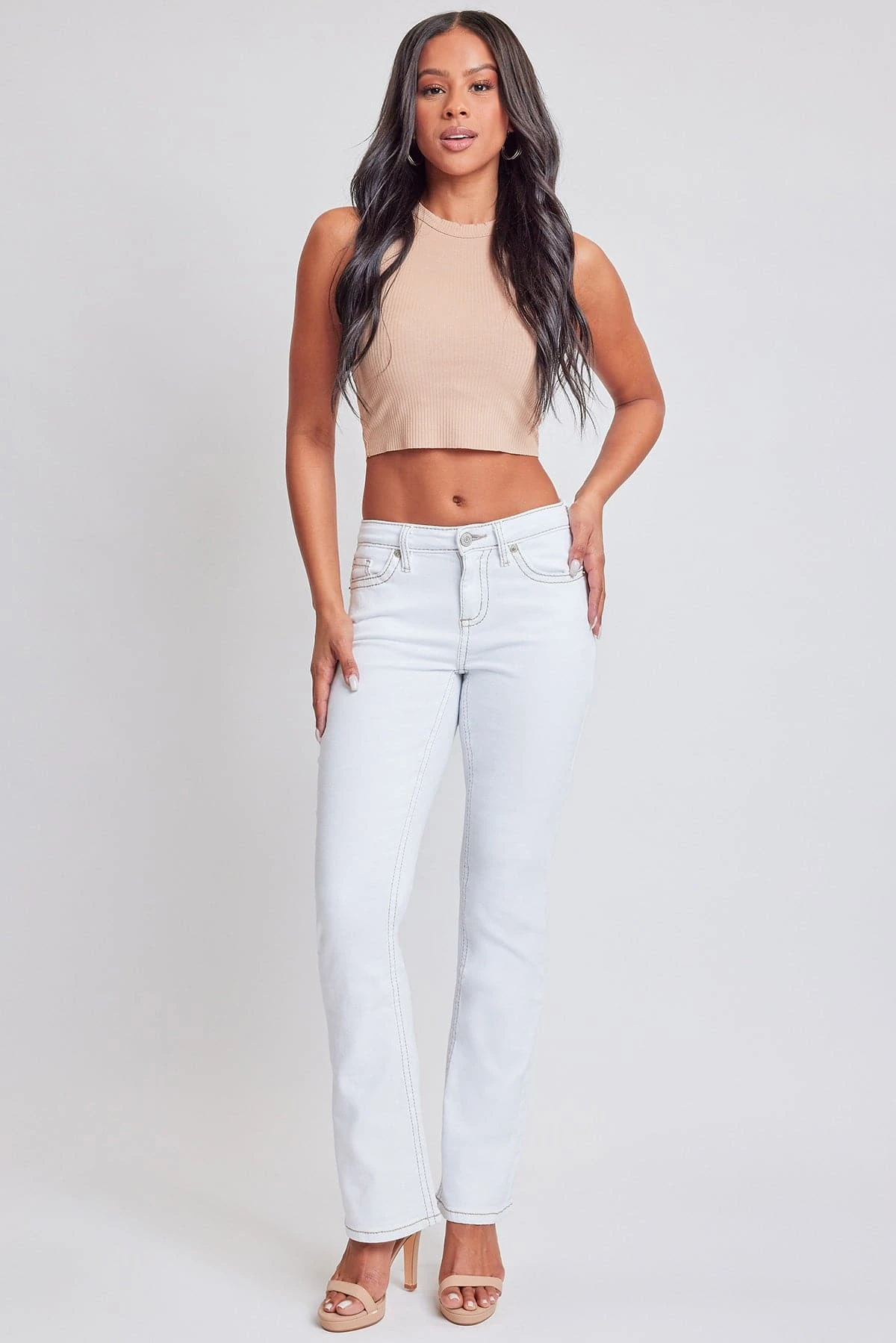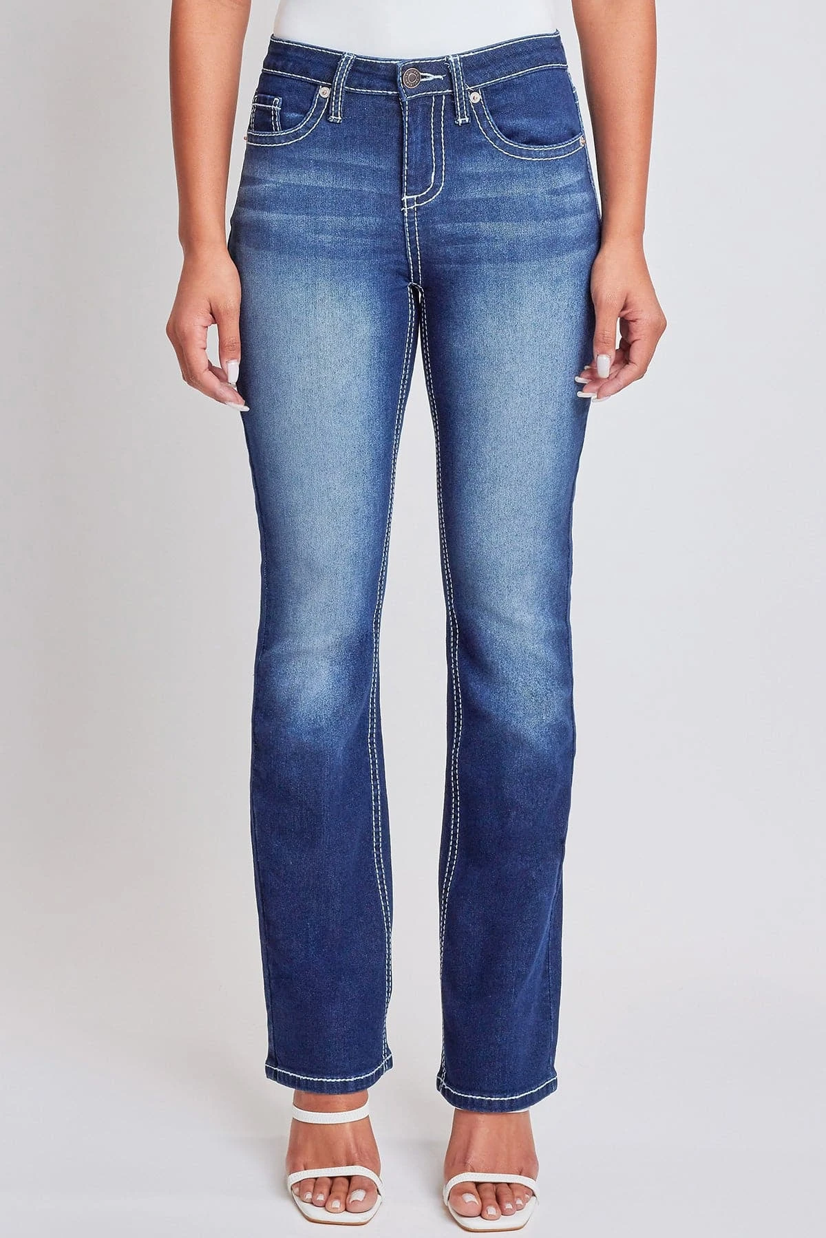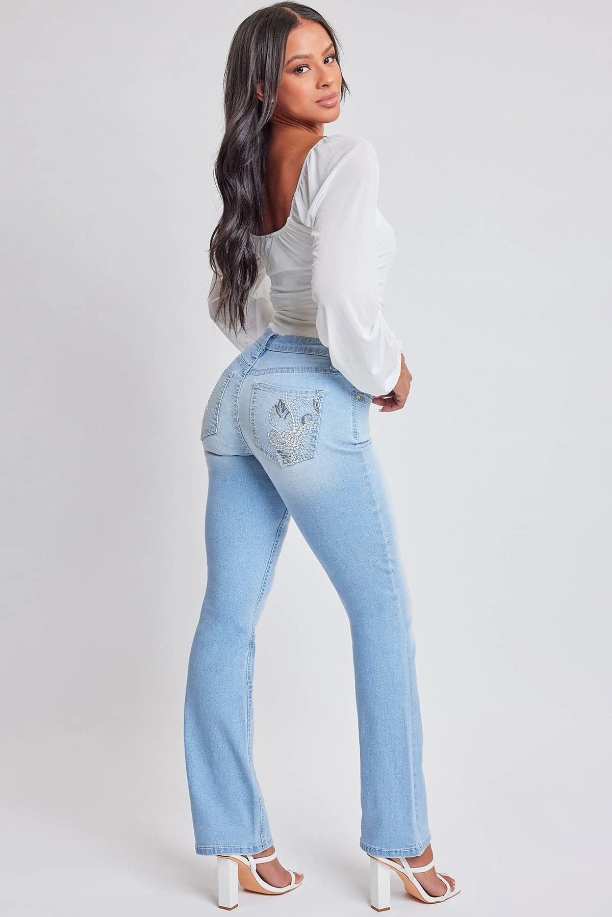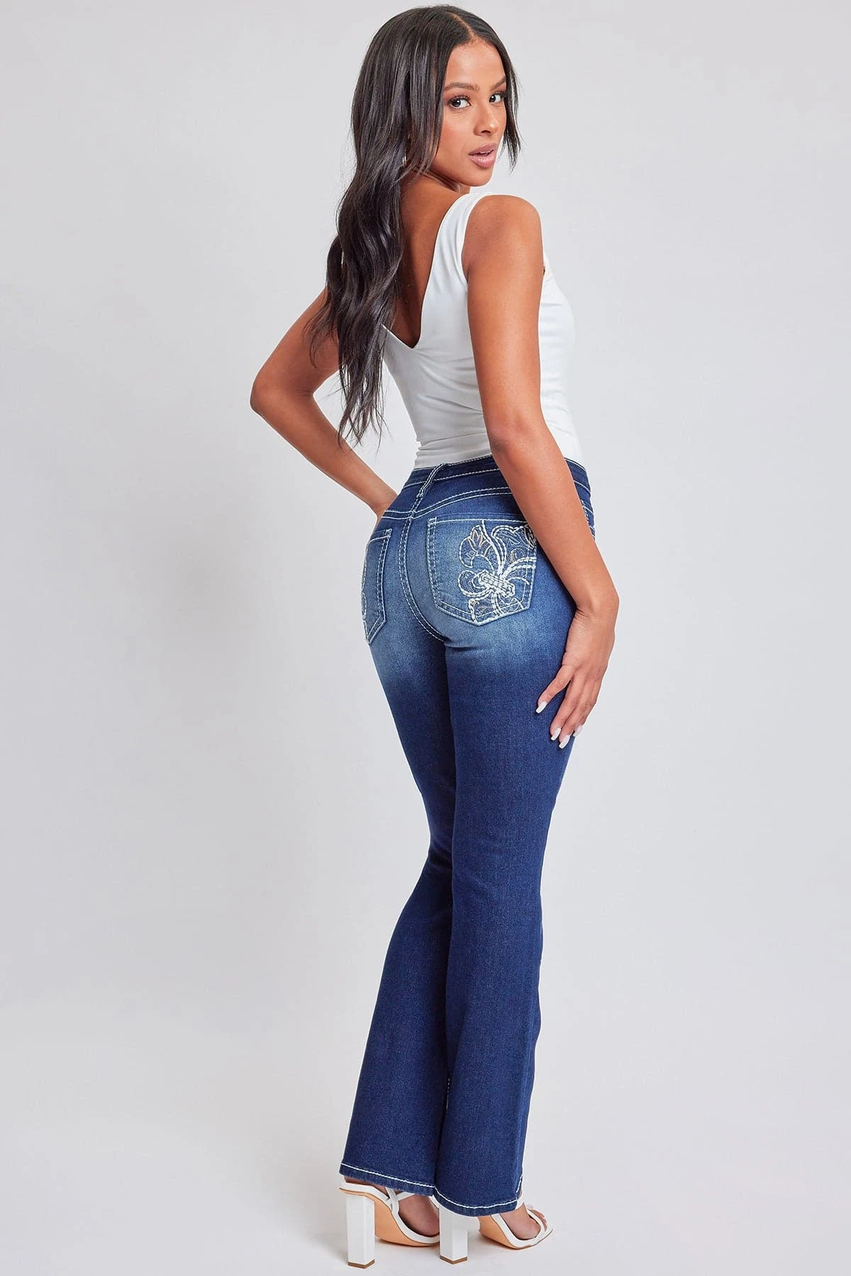 Bring a touch of nostalgia to your wardrobe game in our Junior Embroidered Heavy Stitch Bootcut Jeans. These jeans combine timeless design with modern details, offering a mid-rise fit, classic 5-pocket style, eye-catching embroidered rear pockets with flap and summary closure, and intricate stitching throughout. The boot cut silhouette adds a touch of vintage charm, and the full-length design makes them versatile for any occasion. Dress it up with a crisp white summary-down shirt, a statement belt and strappy heels.