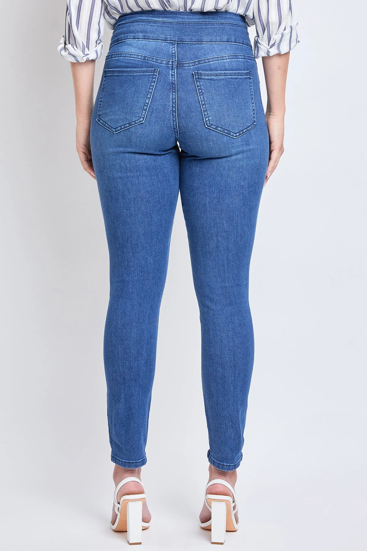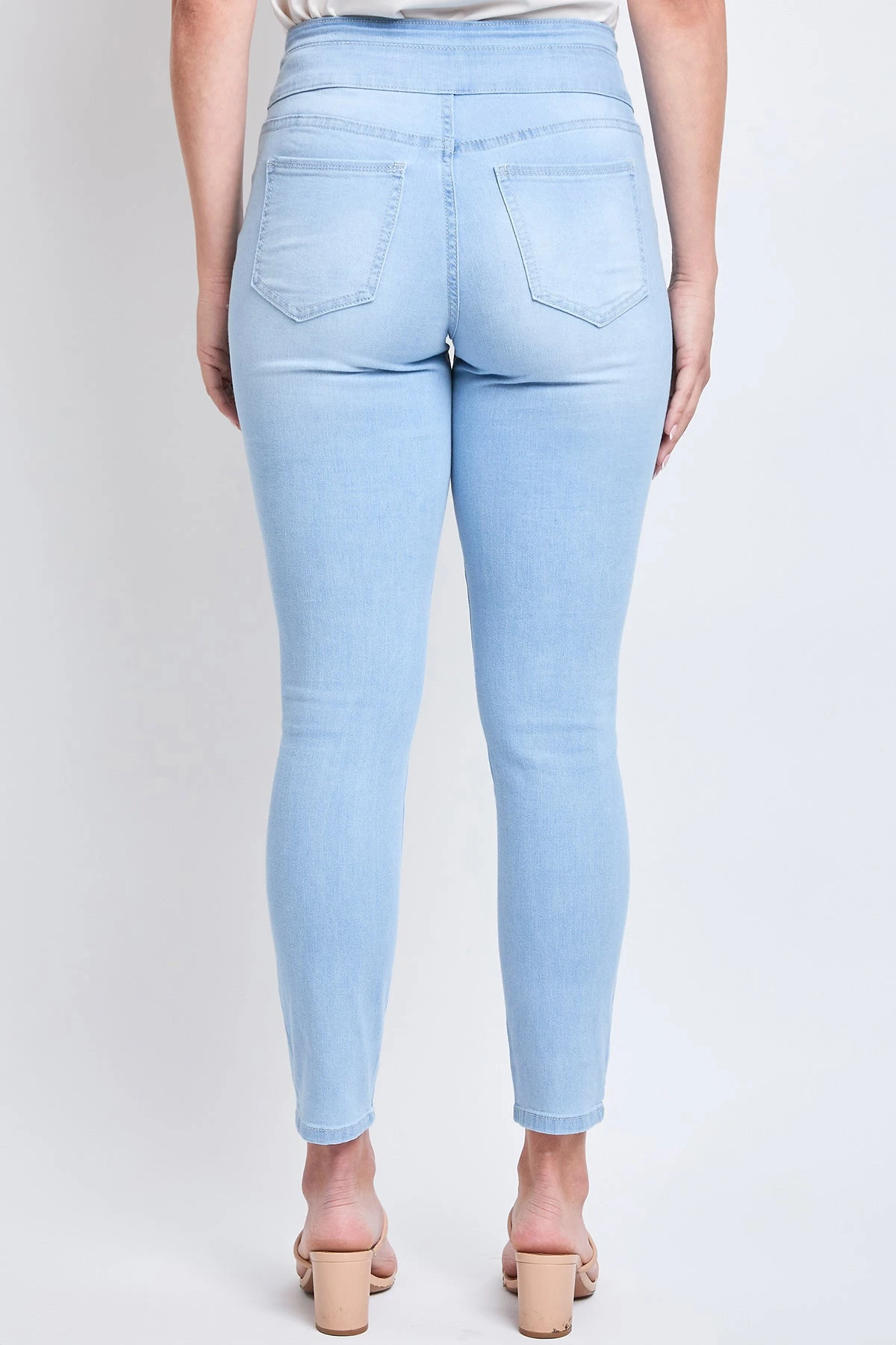 Featuring a triple-summary closure and wide waistband, our Women’s High-Rise 3 Button Stacked Waistband Skinny Jean will keep you feeling sleek and sexy for as long as you rock ’em. Featuring our flattering skinny fit, a stacked panel waistband, five functioning pockets, front zip, and a 3 summary closure with a front zip. This jean is made from recycled plastic bottles so it is more eco-friendly.