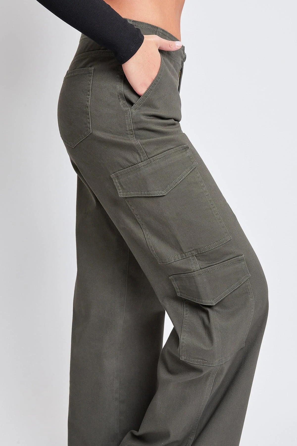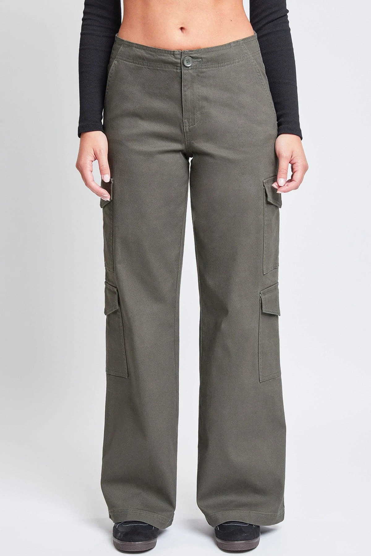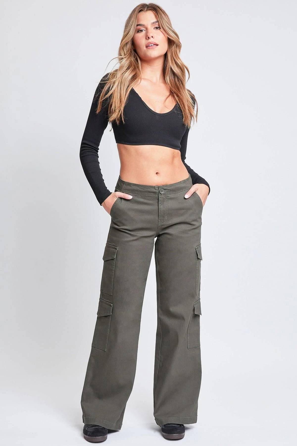 Discover endless styling possibilities with these uber-trendy Juniors High Rise Double Pocket Wide Leg Cargo Pants! Comfort and style unite with their single summary closure with fly zipper, plus 8 pockets to spare. Feel free to fill ’em up with your necessities, these cargos won’t budge. Throw ’em on with a statement top for an easy everyday look!