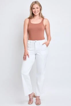 Available in a range of sizes, these Women’s High Rise Pork Chop Pocket Wide Leg Pant are meticulously sculpted to flatter every body type. Experience the perfect blend of style and functionality – because you deserve nothing less.