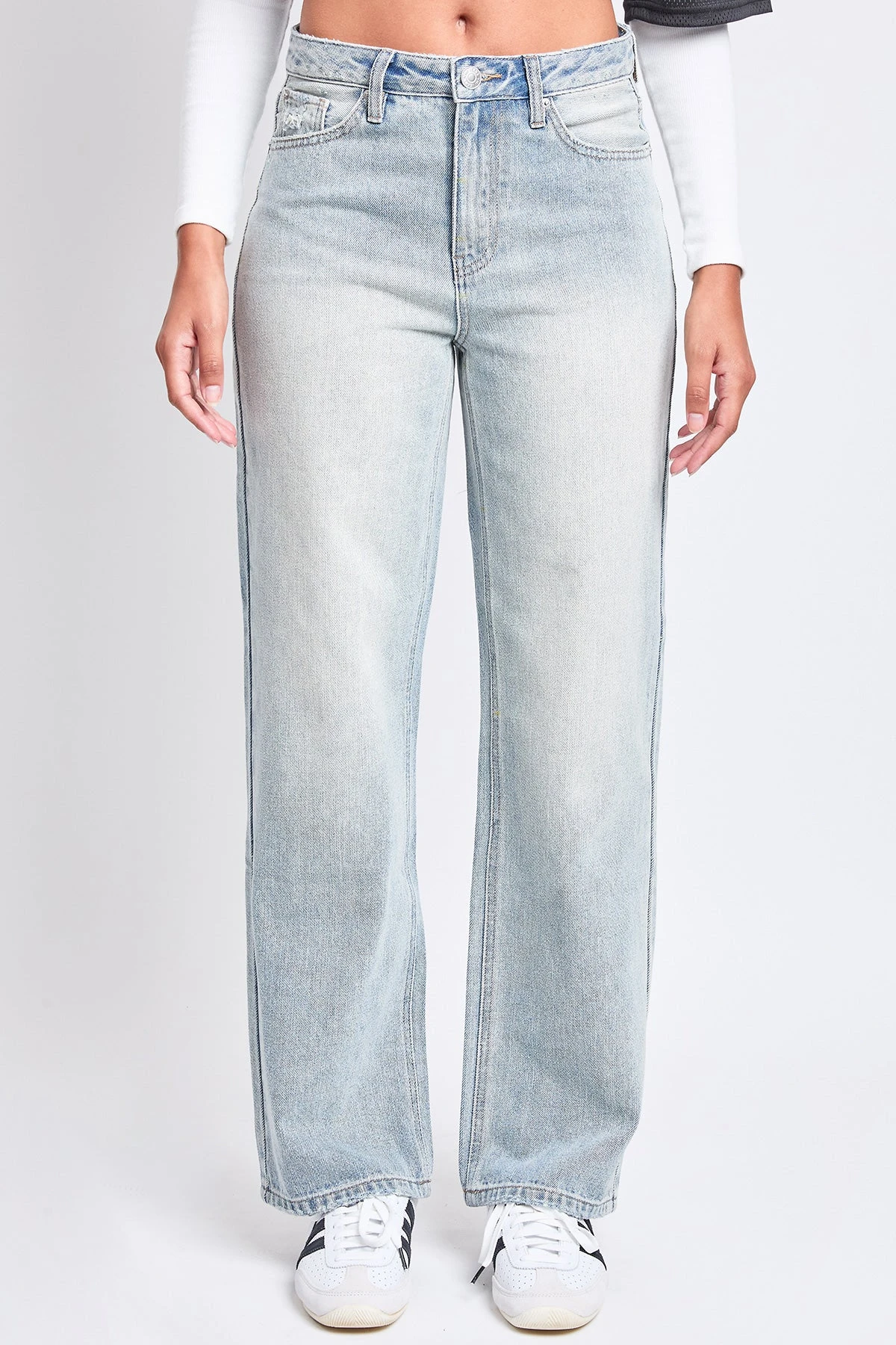 Women’s High Rise Relaxed Fit Rip Repair Jeans by YMI Jeans — a perfect blend of edgy style and comfortable fit. These jeans feature a flattering high-rise waist and a relaxed fit, providing both comfort and a laid-back look.