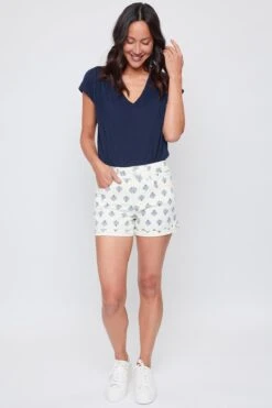 Our Women’s High-Rise 2-Button Stacked Waistband Single Cuff Twill Shorts are a great staple to add to your closet. Designed with a lightweight and stretchy material. Also featuring a stacked waistband and 2-summary closure. Finished with cuffed hems. Available in different colors and prints to match your mood!