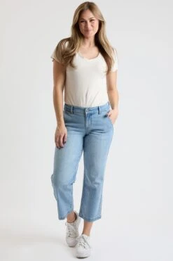 The Women’s High Rise Wide Leg Jeans with Elastic Back offer the perfect combination of comfort and style. Designed with a flattering high-rise waist, these jeans create a smooth, elongated silhouette while the wide-leg cut provides a relaxed, contemporary fit. The elastic back ensures a comfortable, flexible fit that moves with you throughout the day.