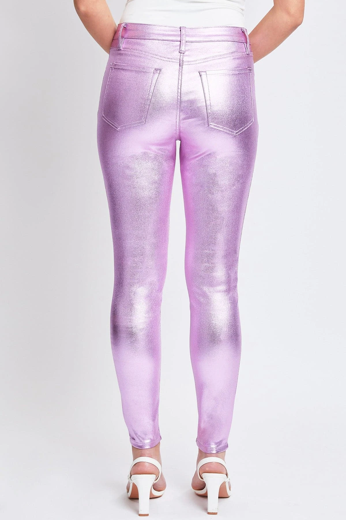 All that glitters is golden in our new Women’s High Rise Metallic Skinny Pants. These high-waisted pants are coated for a shimmering effect and feature a vibrant color, making them perfect for any Glam ‘fit. With the look of jeans and the stretch of leggings, this pant is comfortable for all-day (or all-night) wear and fits snug to your body for a flattering silhouette. Style with a tucked tank for your festive work event or a cropped top and heels for a holiday party – either way, you’re going to shine!
