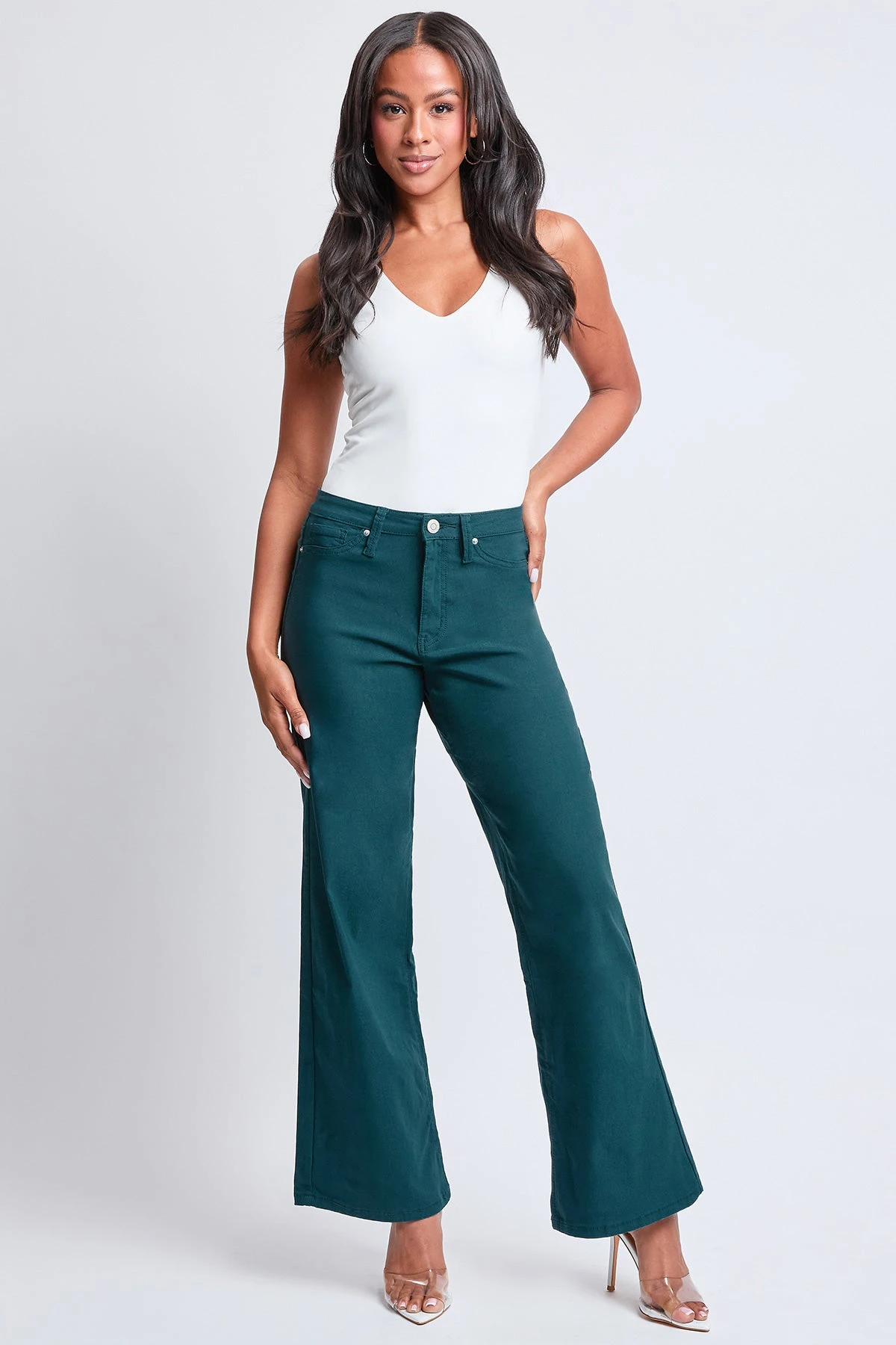 Our Women’s Hyperstretch Forever Color High-Rise Wide Leg Pant is everything you love about our Hyperstretch line – but with a hot new look. Designed with our signature ultra-stretchy fabric, these pants mold to your body to highlight your natural shape and stay comfortable all day long. The high rise accentuates your waistline while the wide hem elongates your legs – creating an incredibly flattering silhouette. This material has been improved for greater color fastness, making it withstand more wear and washes; this is why we named this pant “Forever Color” – it will be forever yours. Style with a tank top and tennies for a casual day out, or with a fitted long-sleeve and heeled sandals for a sultry nighttime vibe. These pants are perfect for the office too and so comfortable to wear for quick errands.