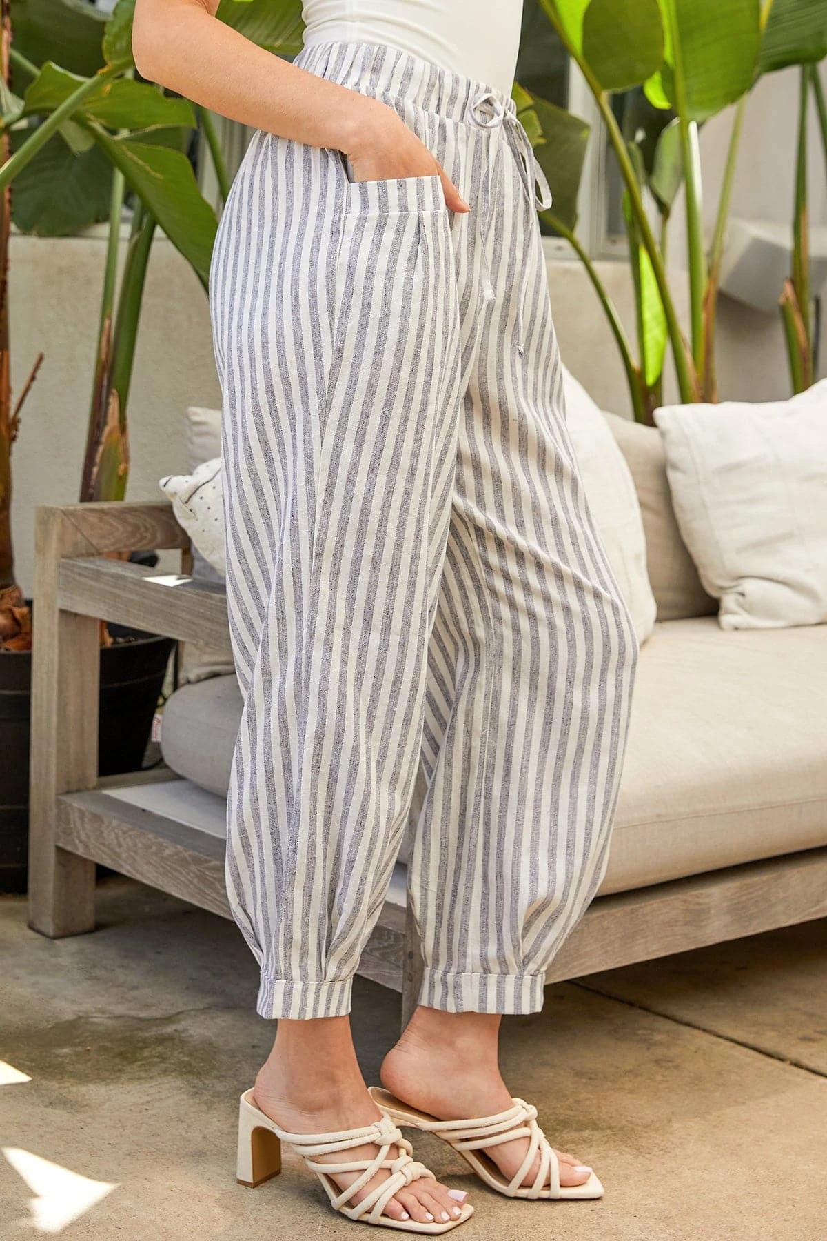 Achieve your ultimate summer style with our Women’s Linen Joggers With Banded Hem. These pants feature an elastic waistband with a drawstring closure, a pleated hem, and two pockets. This garment moves with you throughout the day for a comfortable, flexible fit. Wear them to the beach or on your next vacation!