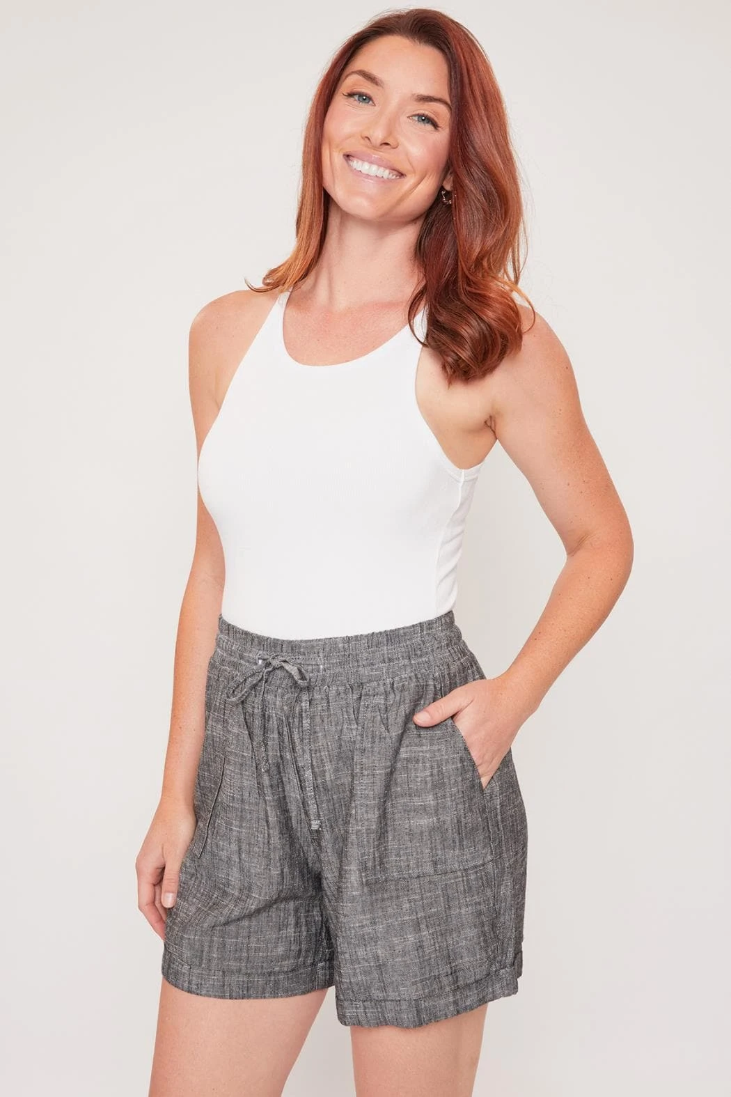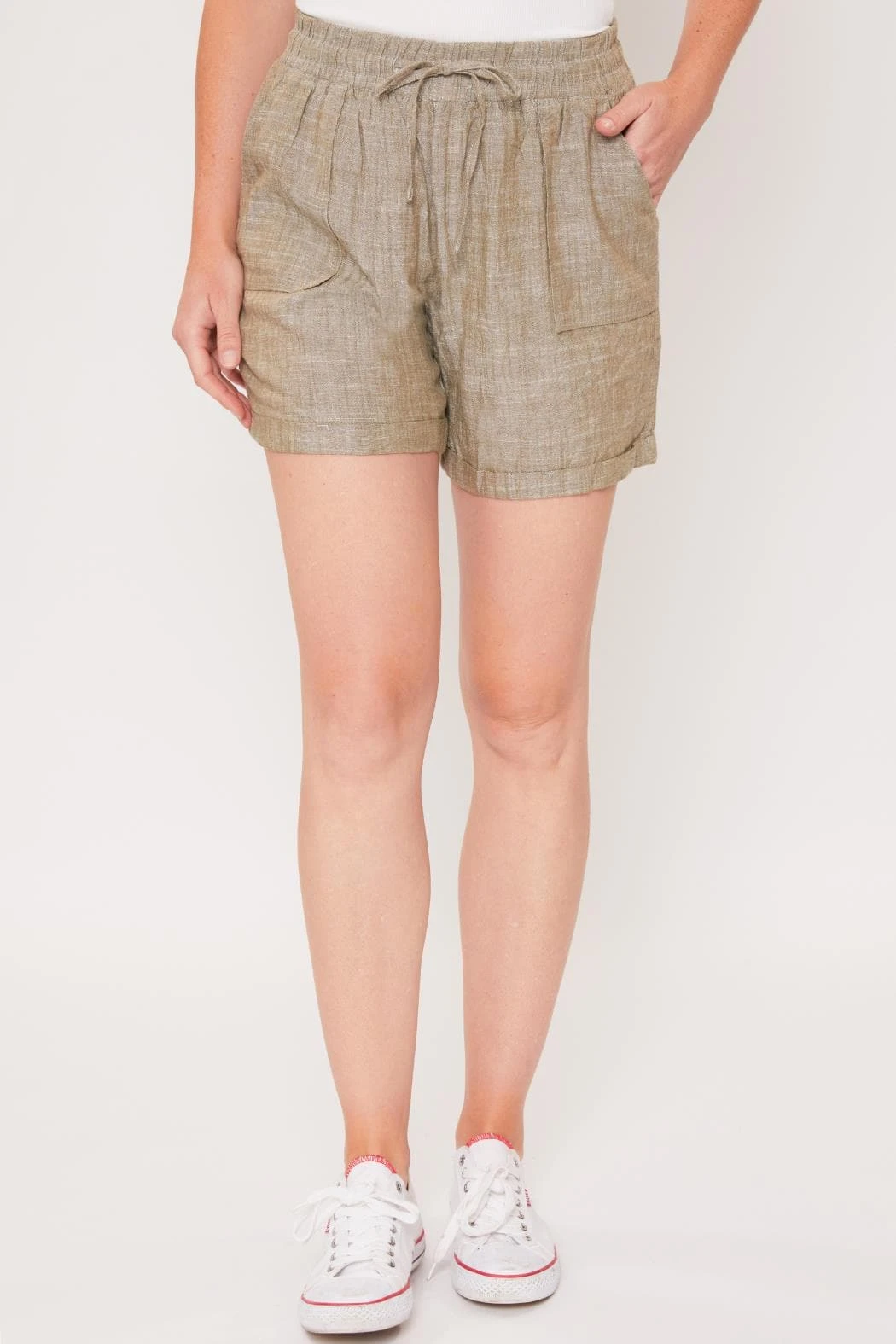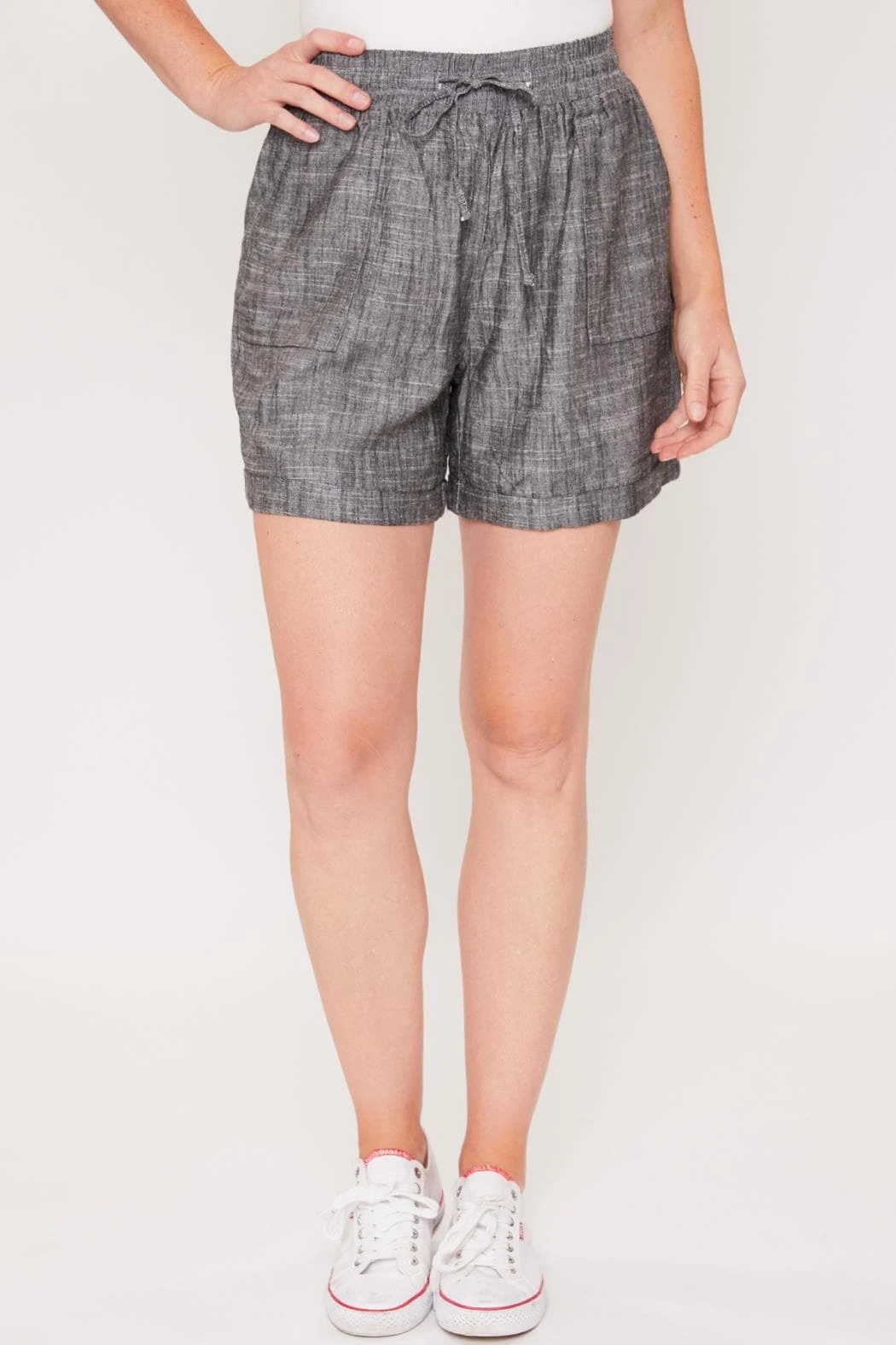Our Women’s Lounge Shorts with Elastic Waistband are an incredible staple to add to your closet! Featuring front tie, elastic waistband, and side pockets. This garment moves with you throughout the day for a comfortable, flexible fit. Due to the nature of the novelty wash process and hand-crafted design, each garment will have a unique appearence.