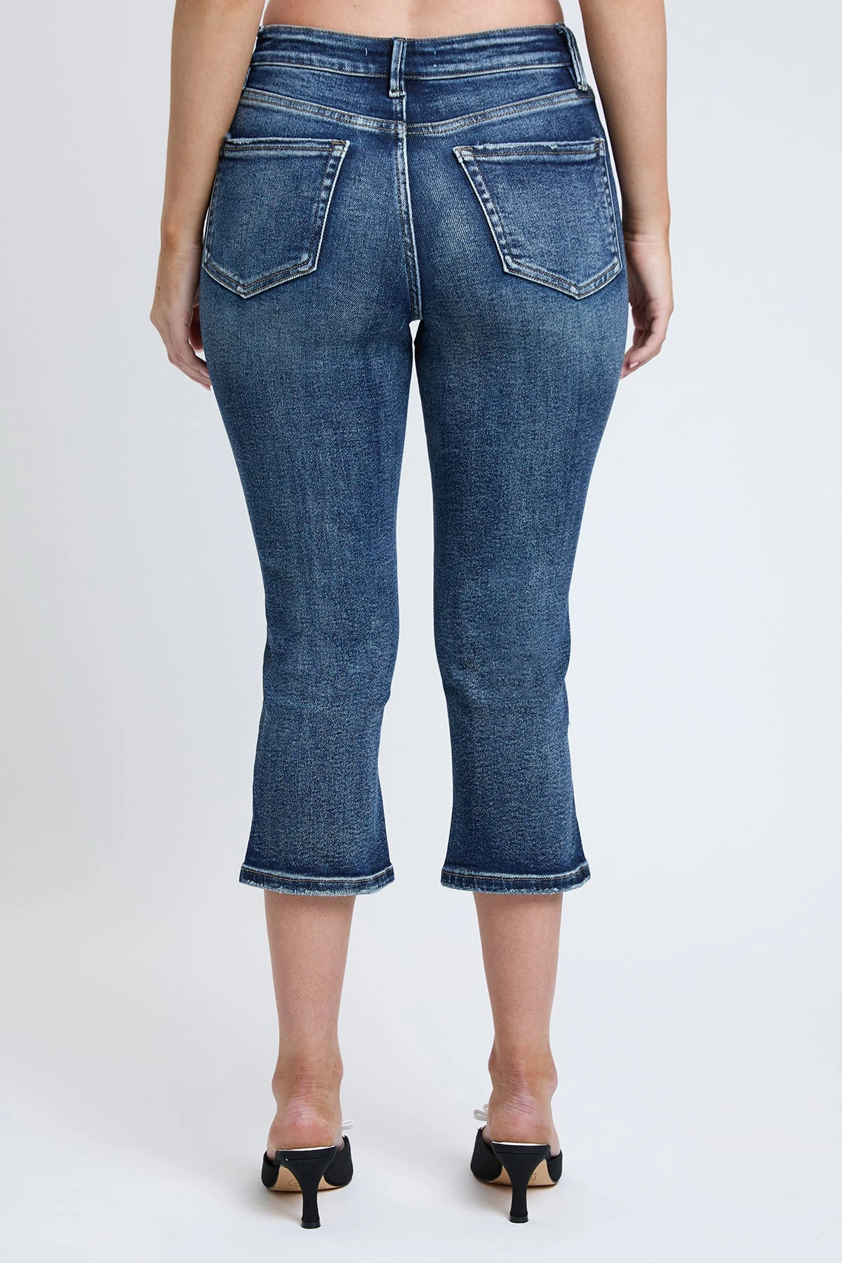 This capri is the perfect combination of comfort and sophistication. The high-rise fit enhances your silhouette, while the side slit detail adds a touch of modern flair. Its premium stretch fabric allows for easy movement, making it a great choice for everyday wear or more dressed-up occasions.