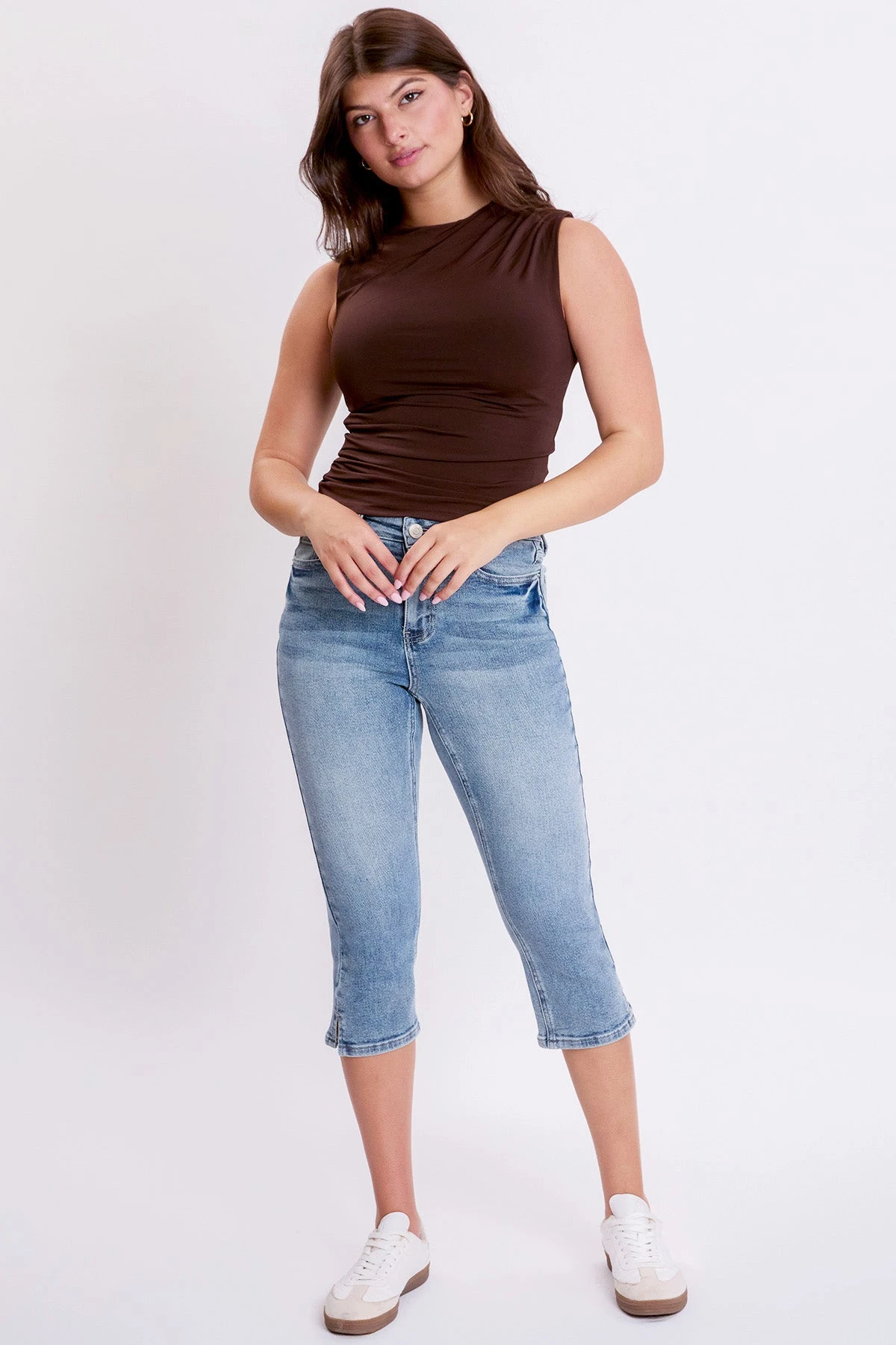 Pair it with a fitted tank and sandals for a casual daytime look, or style it with a blouse and heels for a chic evening outfit. The Women’s High Rise Capri with Side Slit is a must-have addition to your collection.