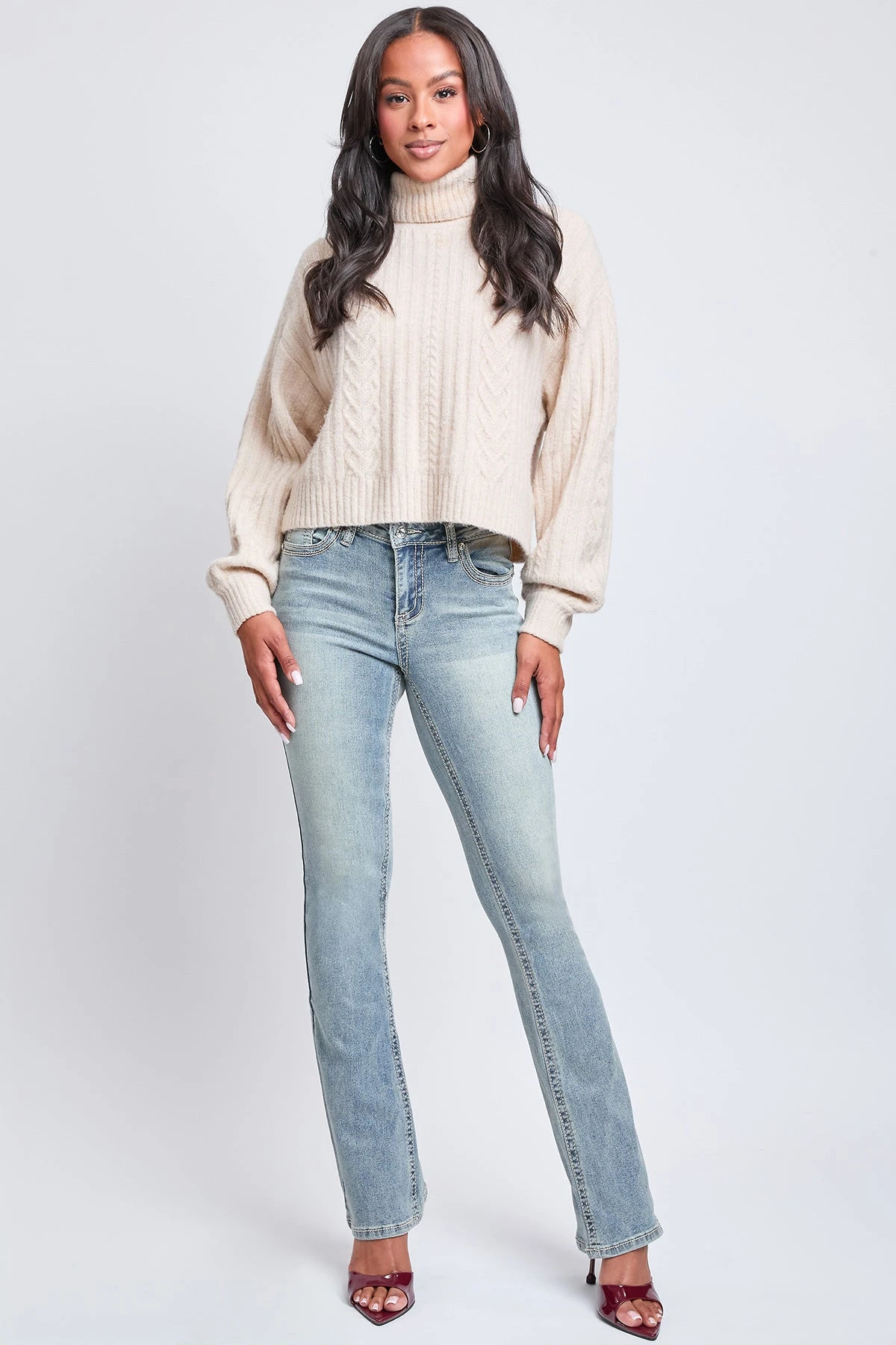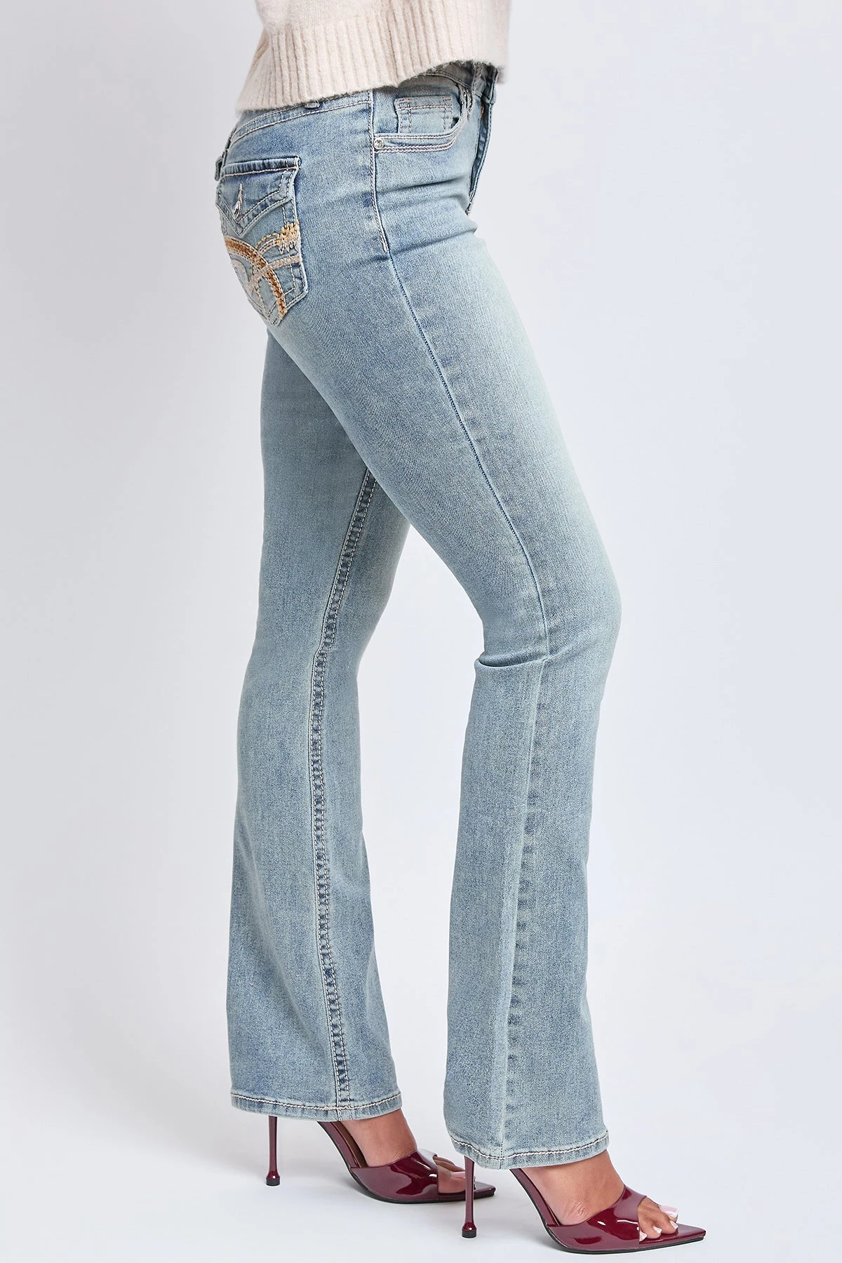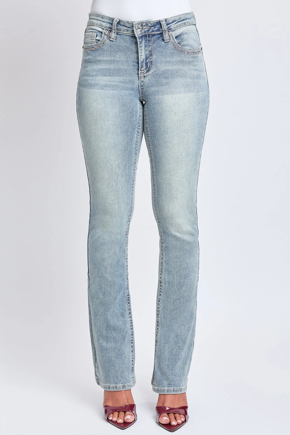 Women’s Mid Rise Heavy Stitch Bootcut Loop Studded Jeans by YMI Jeans, where classic design meets edgy detailing for the fashion-forward woman. Crafted with meticulous attention to detail, these jeans offer a perfect blend of timeless style and contemporary accents.