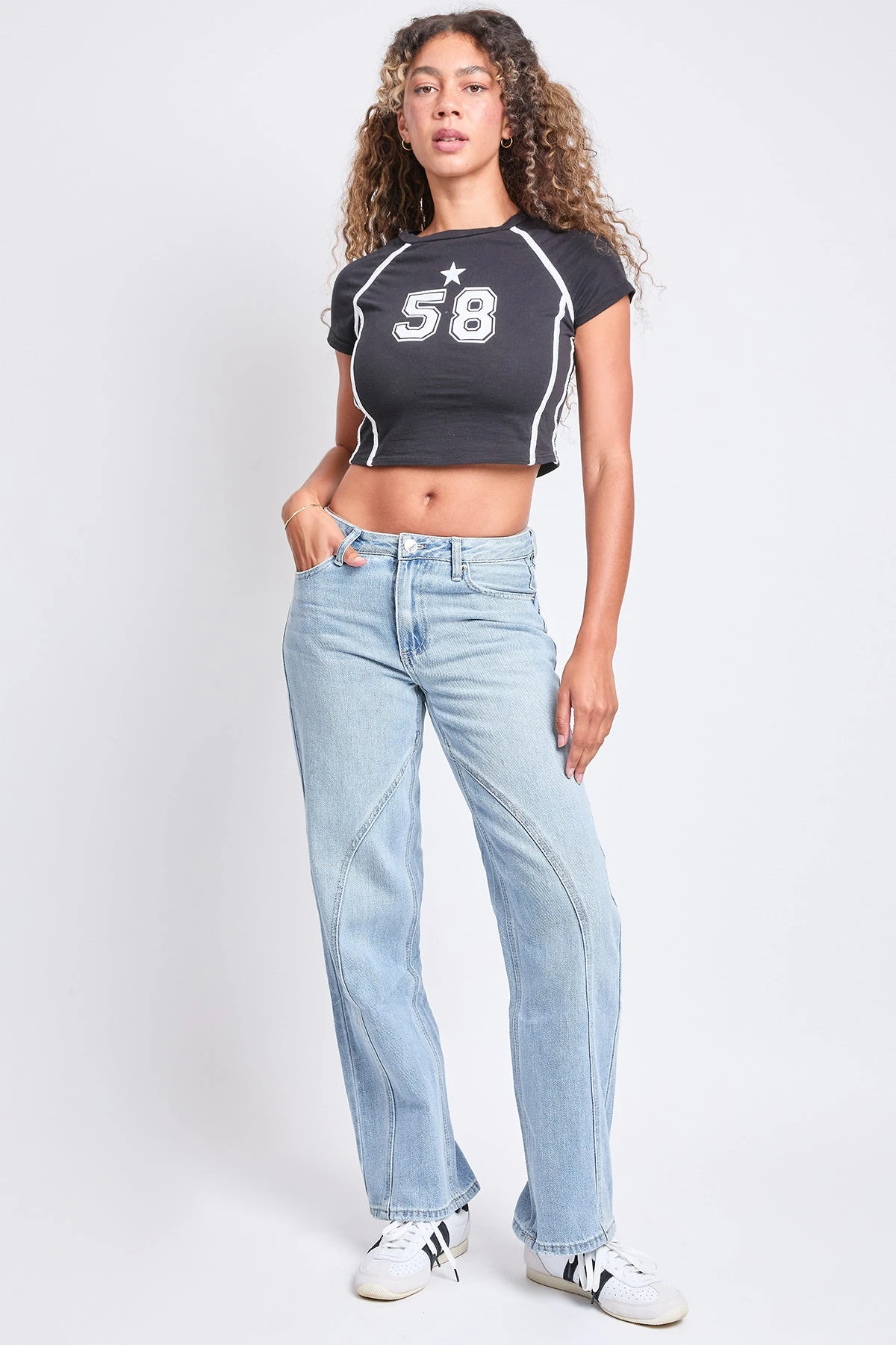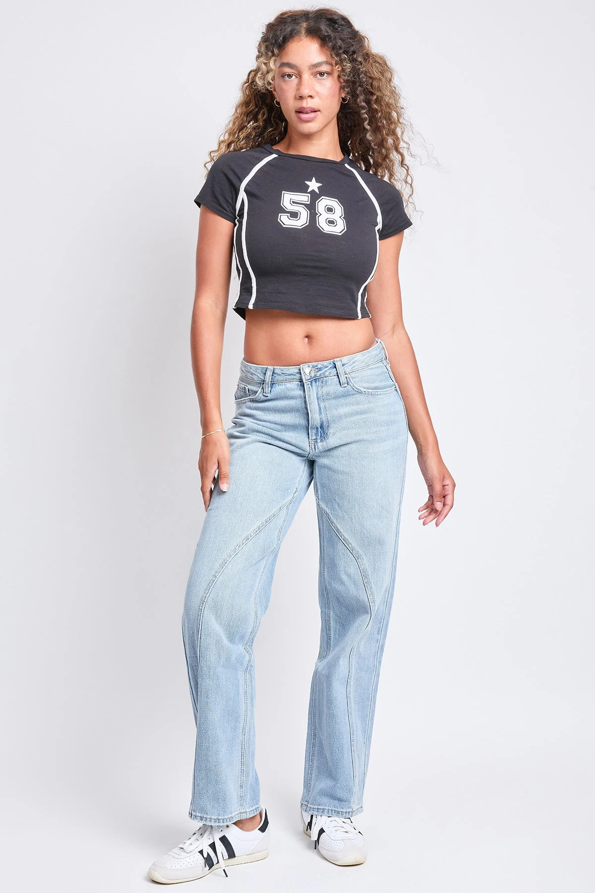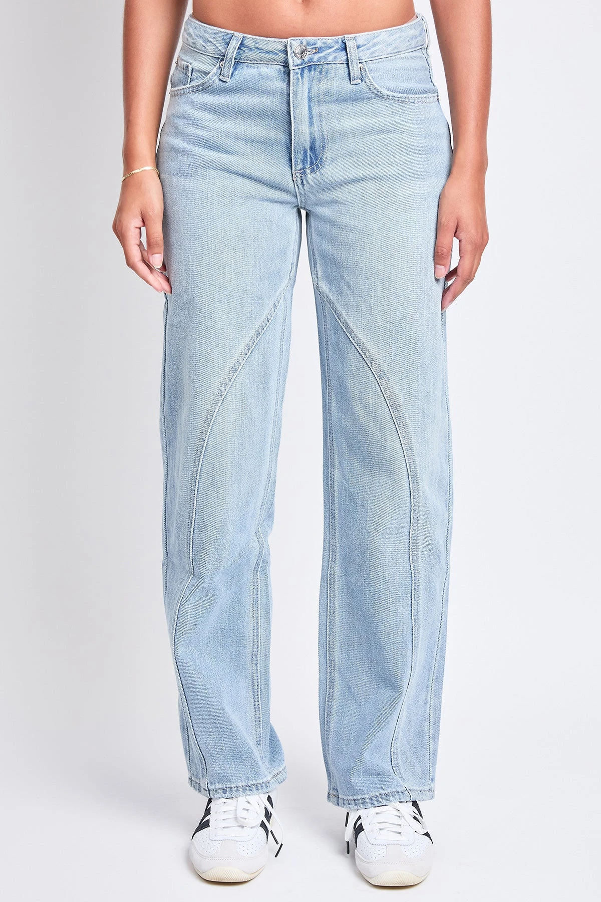 Women’s Mid Rise Relaxed Rigid Straight Leg Jeans by YMI Jeans, the perfect blend of casual comfort and structured style. These jeans feature a mid-rise waist and a relaxed straight-leg fit, offering a comfortable yet chic silhouette that’s ideal for everyday wear.