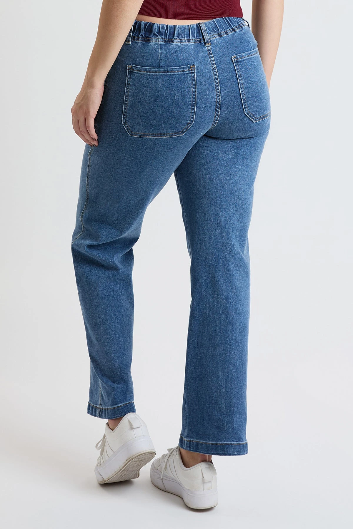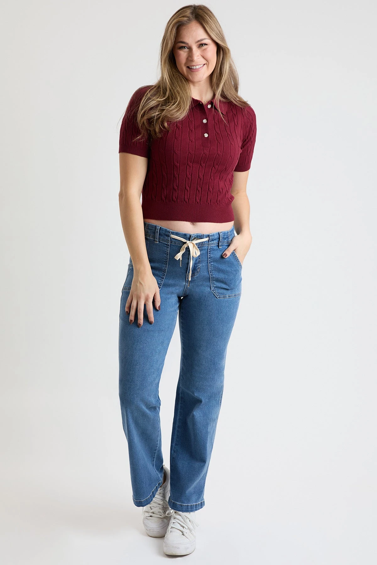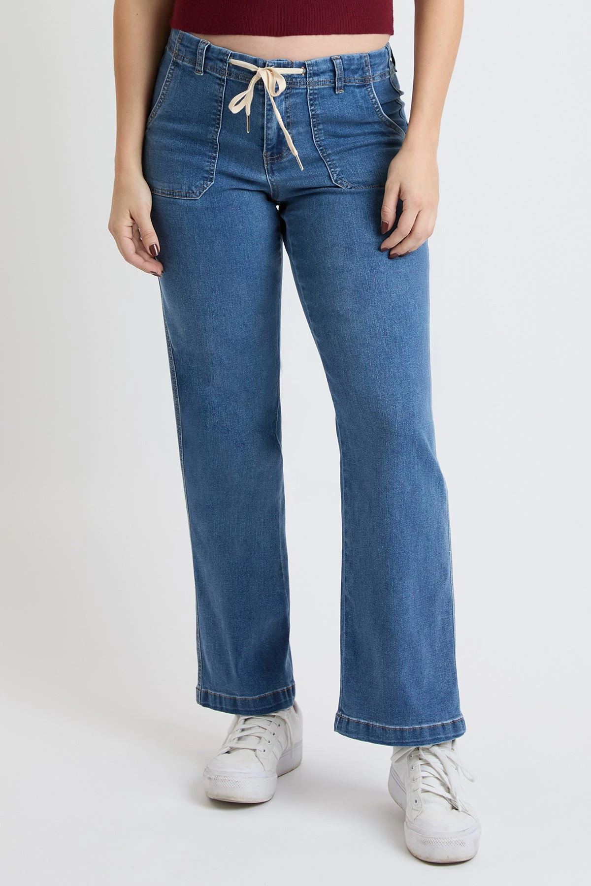 These Mid Rise Tie Front Wide Leg Jeans offer the perfect balance of comfort and style. Designed with a flattering tie-front detail and a wide-leg silhouette, these jeans bring a relaxed yet fashionable look to any wardrobe. The elastic back waist ensures a flexible, comfortable fit, while the patch pockets add a touch of practicality. Whether you’re running errands or enjoying a casual day out, these jeans are your go-to for effortless, on-trend style.