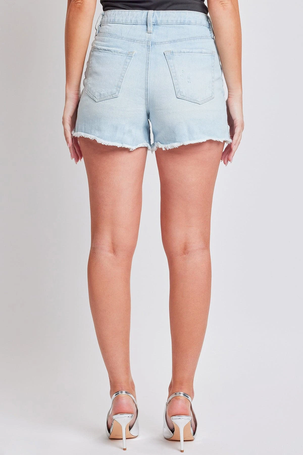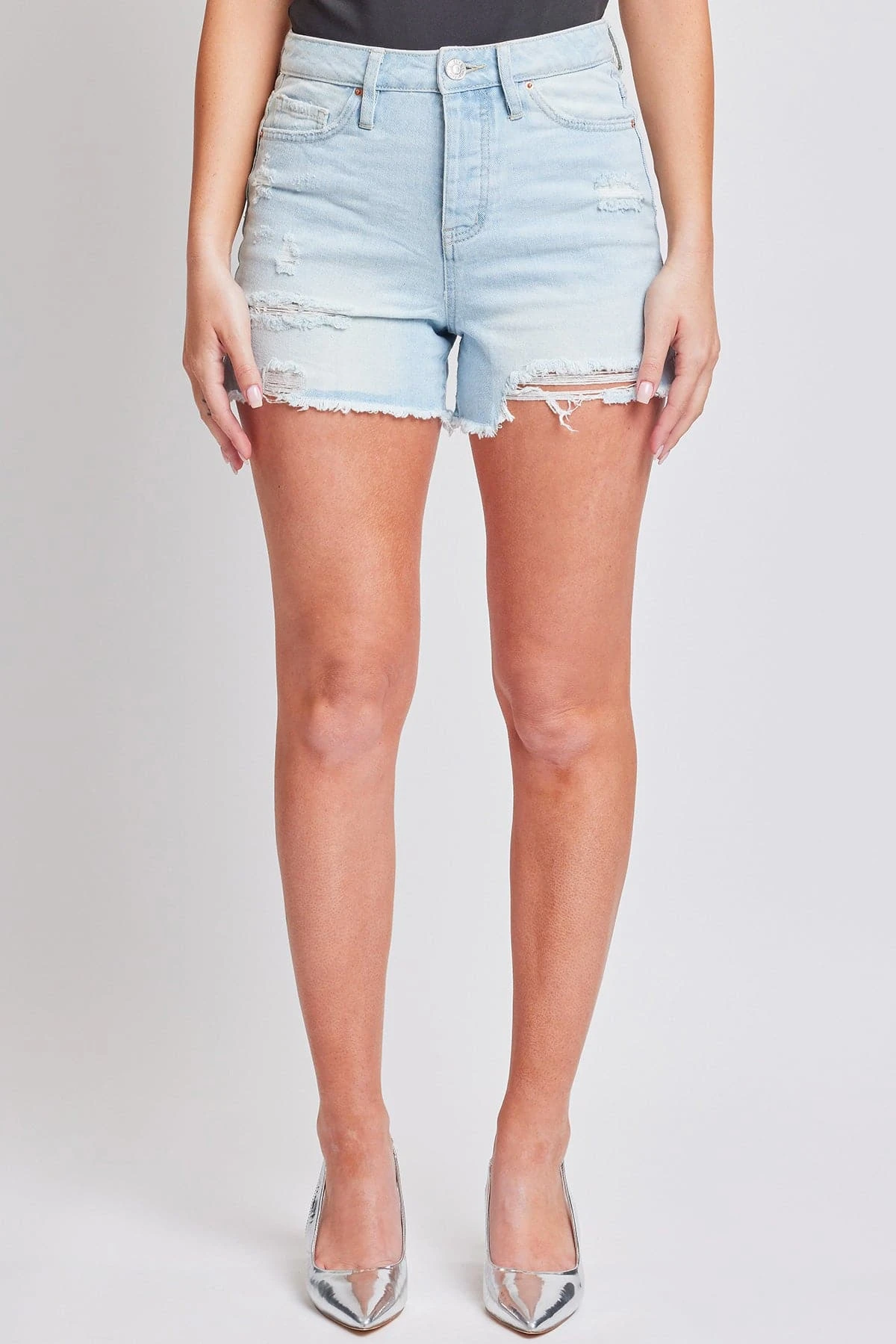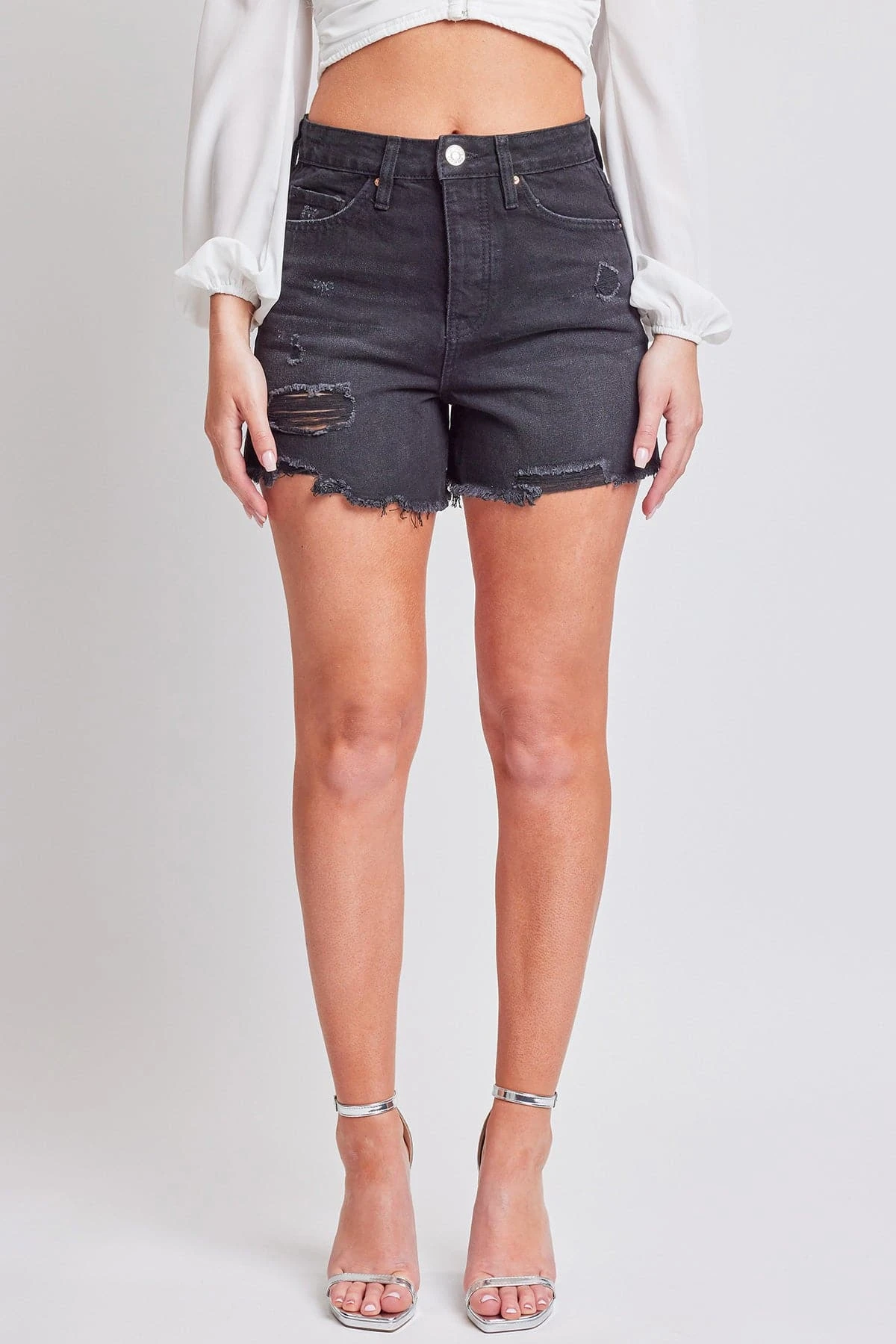 Rock the trendiest look in our Women’s Mom Fit Festival Shorts. Perfect for a trip to coffee or treasure hunting at the flea market, these shorts feature a side slit and frayed hem for that added edge. Detailed with a classic five-pocket construction, hidden five-summary closure, distressed detailing, and belt loops. Due to the nature of the novelty wash process and hand-crafted design, each garment will have a unique appearance.