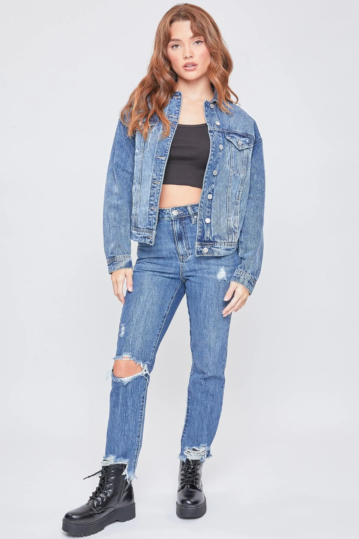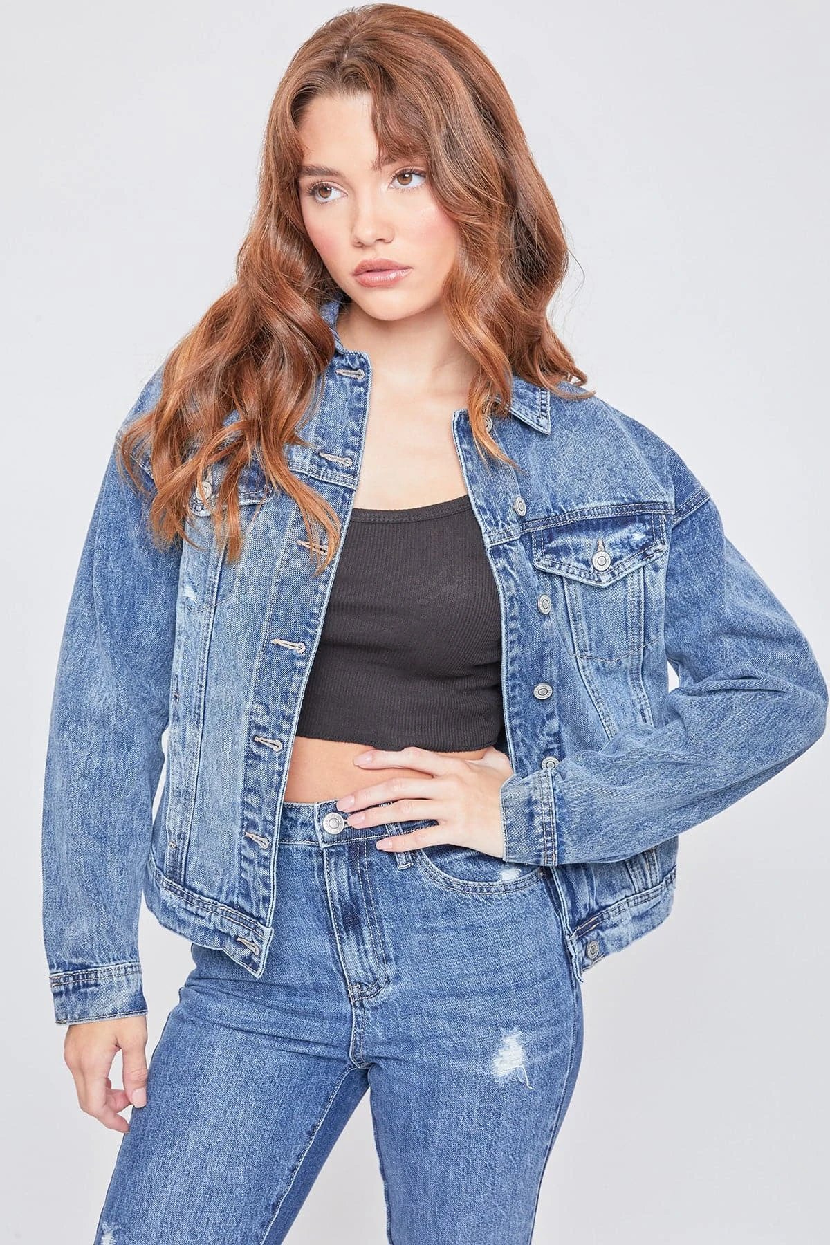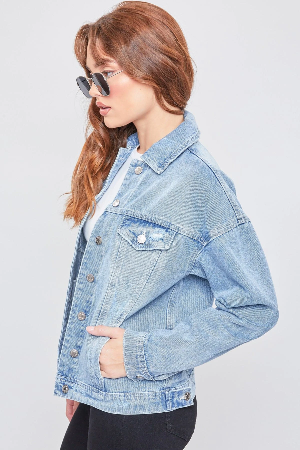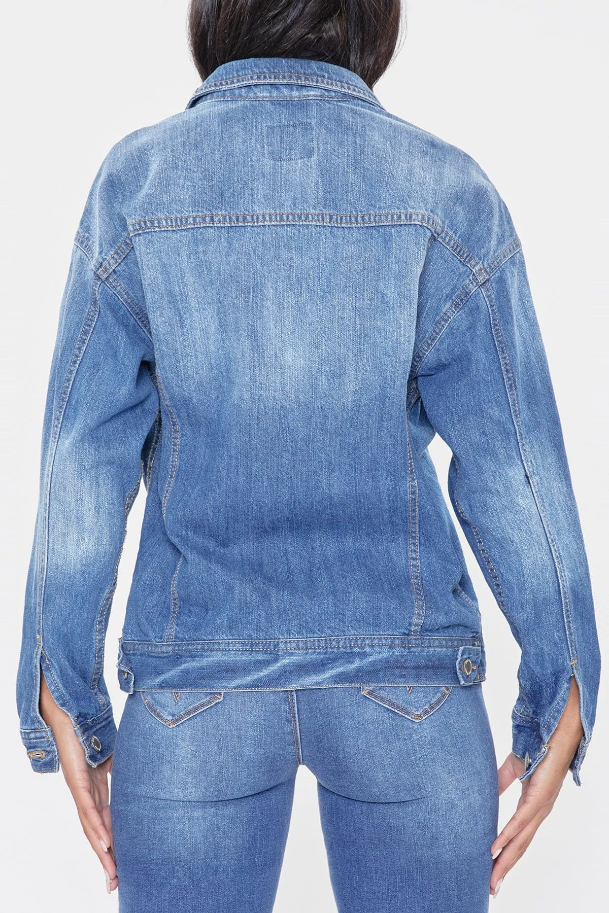 Add an edgy layer to your go-to outfits this season with our Oversized Boyfriend Denim Jacket! Designed to have an oversized fit to give you an effortlessly cool, laid-back look. Made with 100% cotton to give that perfect vintage look and feel. Featuring 2 front summary flap pockets, 2 side pockets, summary-cuff sleeves, and a front summary closure. Due to the nature of the novelty wash process and hand-crafted design, each garment will have a unique appearance. Some washes feature light distressing for an edgier feel.