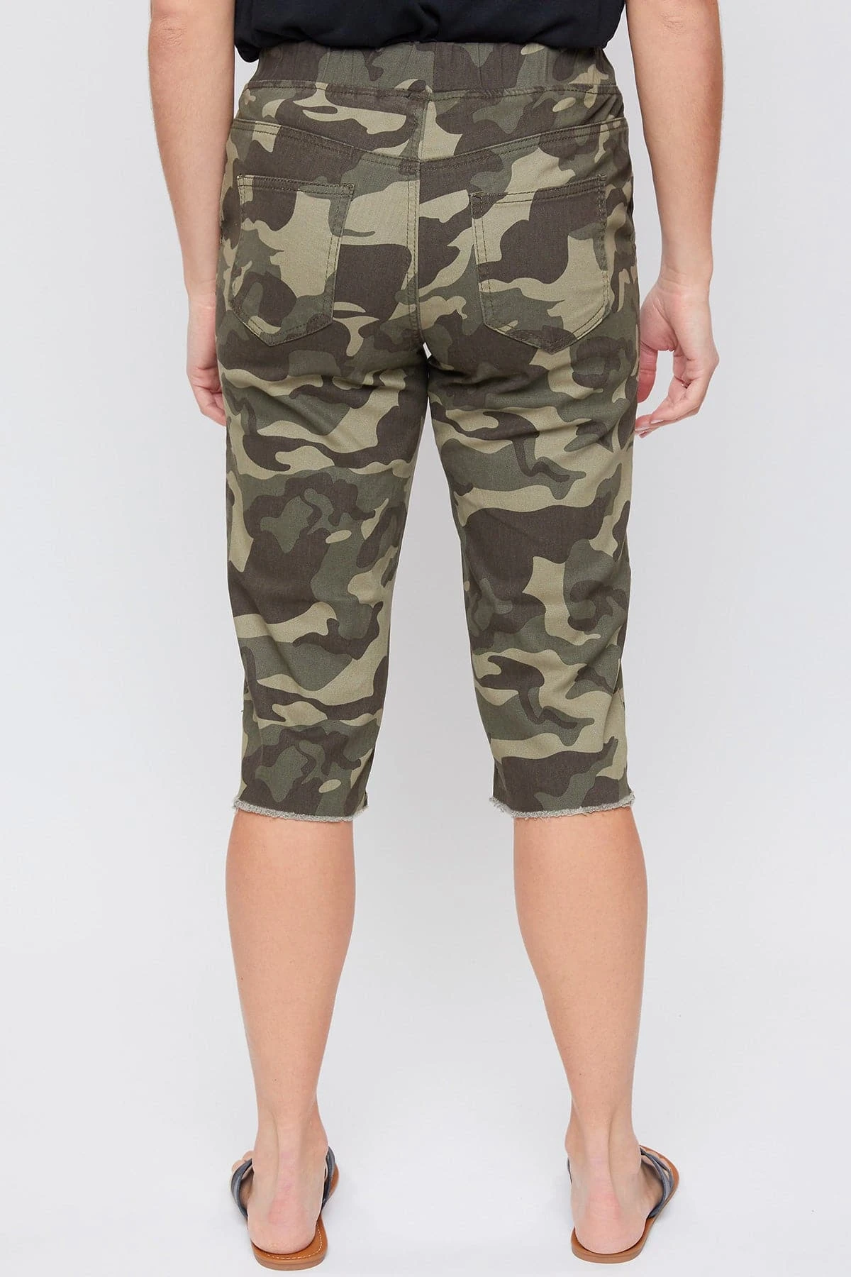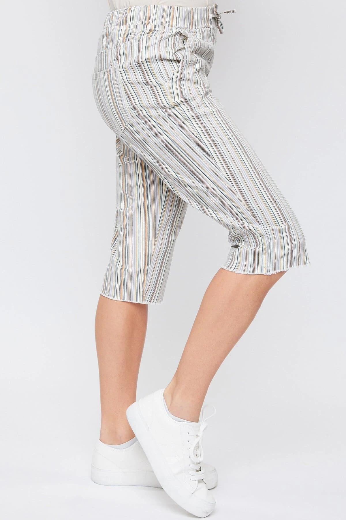 Our Missy Petite Elastic Waist Capri with Fray Hem is lightweight and breathable for easy, all-day wear! Designed with a high-waist and an elasticized waistband with drawstring for the most comfortable fit. These are a capri length and fall below the knee.
