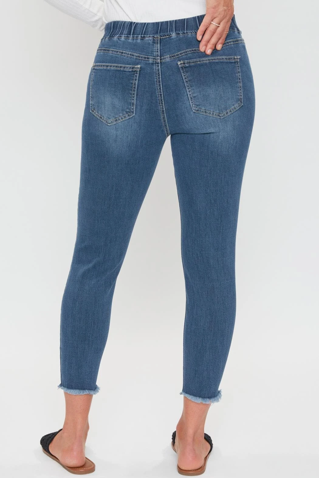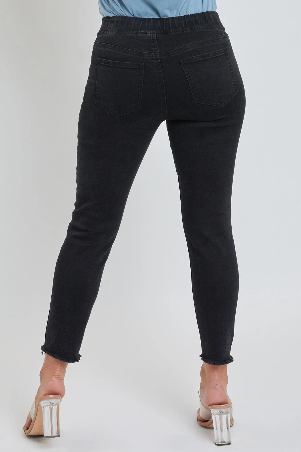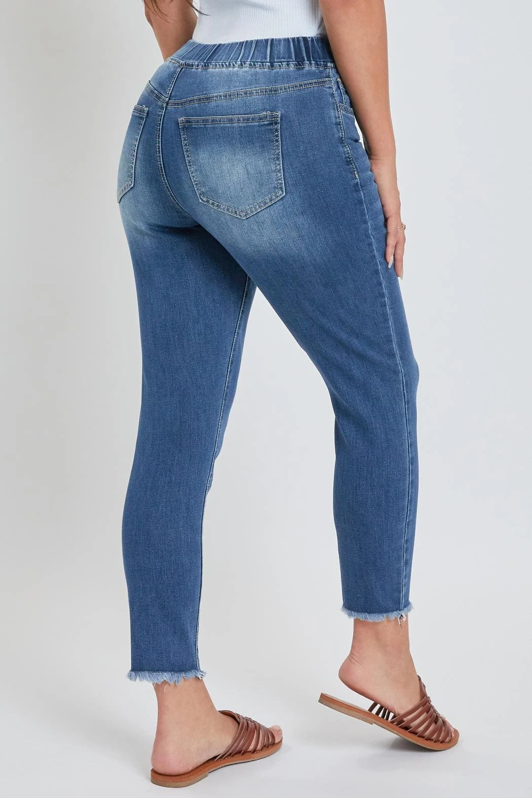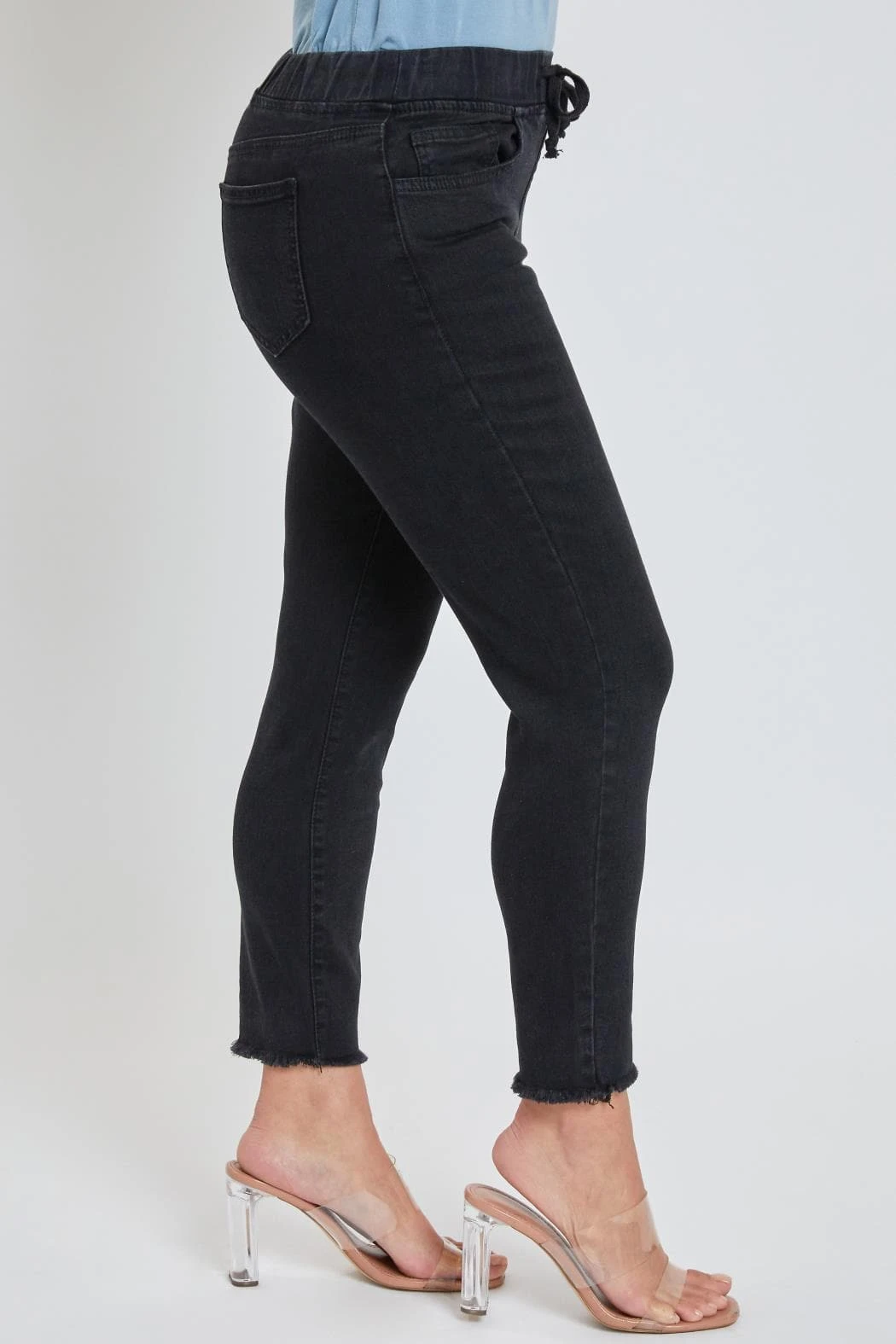 Switch up the basic denim in your wardrobe with our Women’s Petite High-Rise Denim Ankle Jogger. Feel cool and look casual with this pair’s perfect high-rise fit. Featuring five-pocket construction, an elastic waistband with drawstring front tie, distressed detailing, and frayed hem.