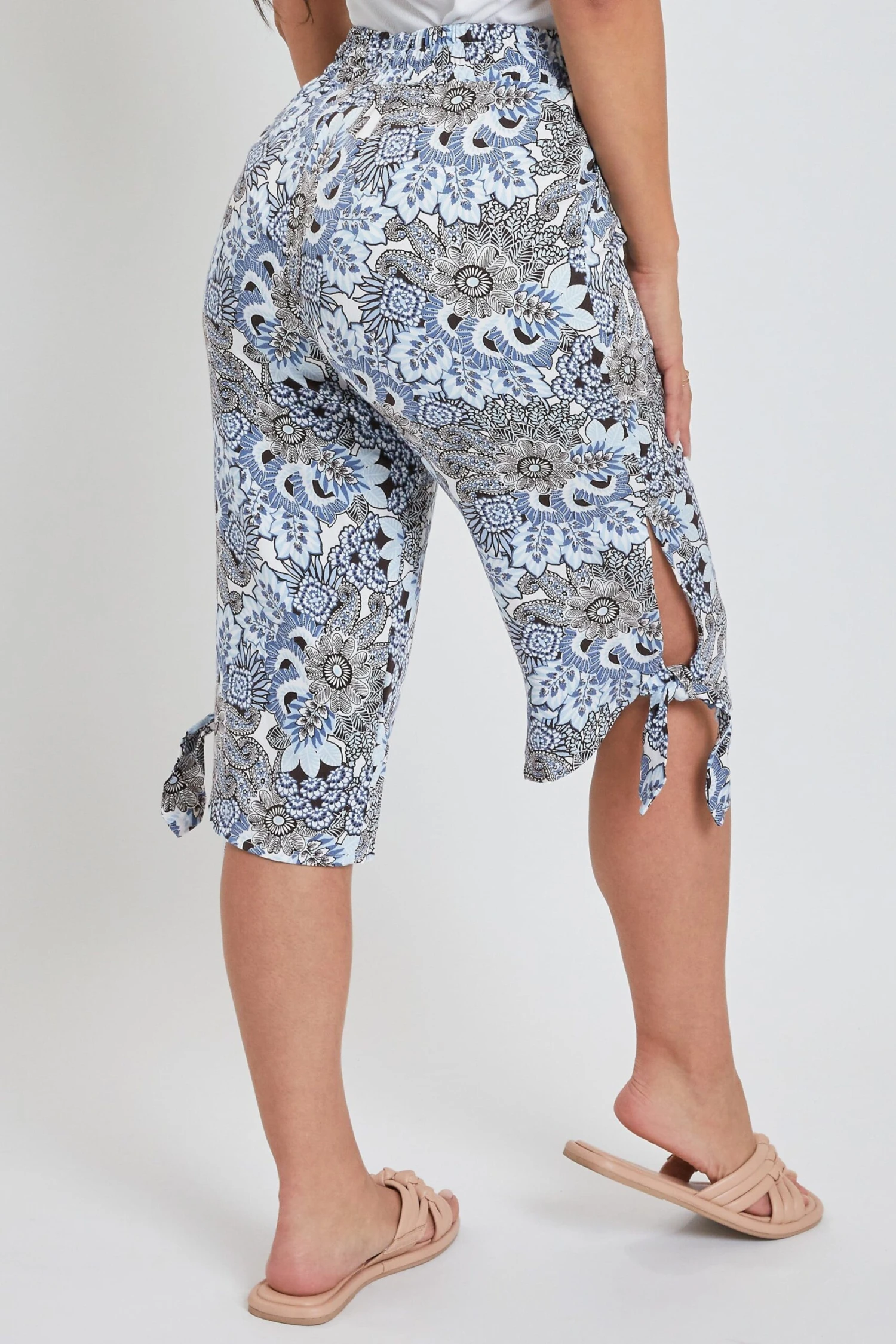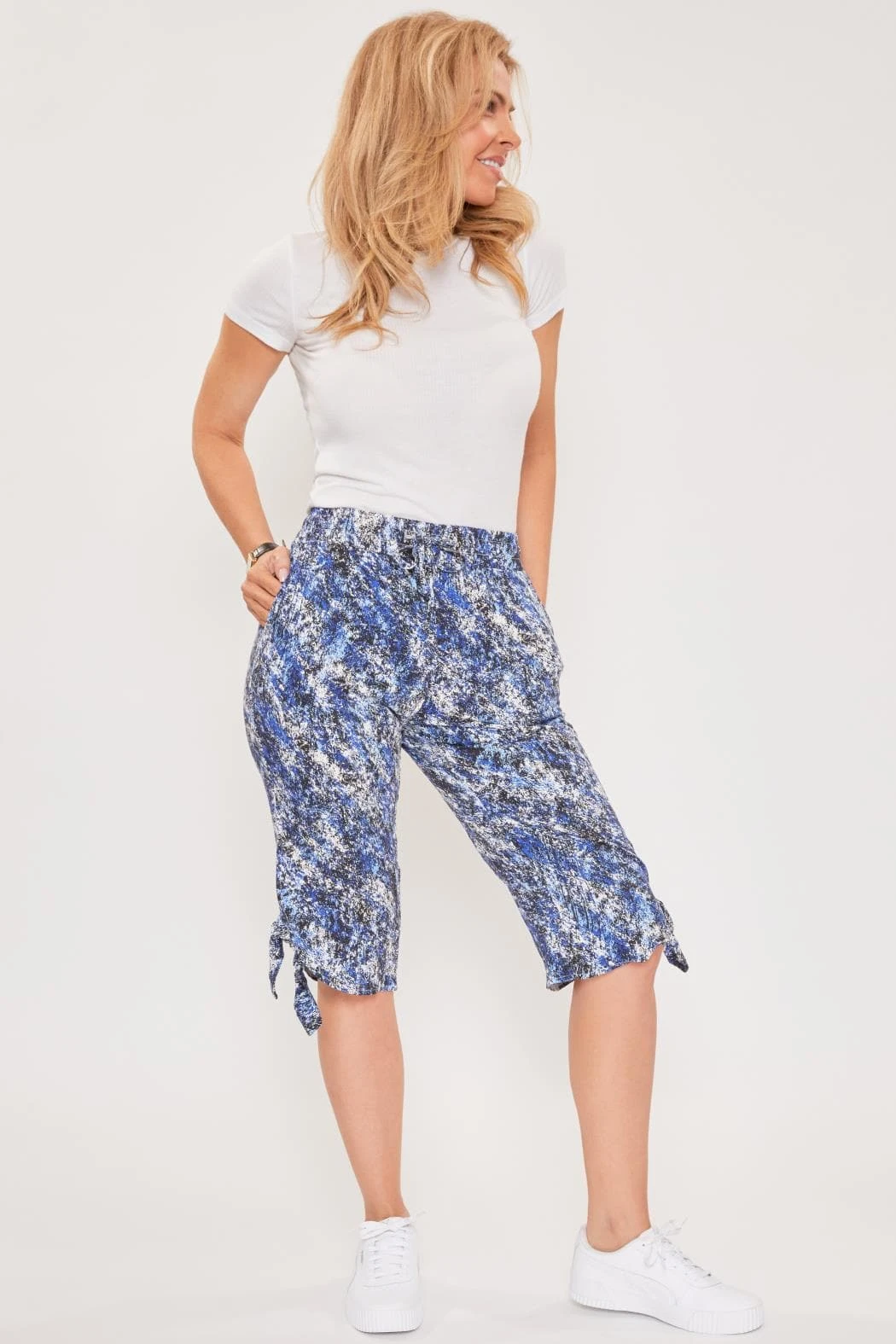 Our Women’s Elastic Waistband Pants are a super fun addition to add to your closet! Featuring front tie, elastic waistband, key hole side hem detail and side pockets. This garment moves with you throughout the day for a comfortable, flexible fit. .