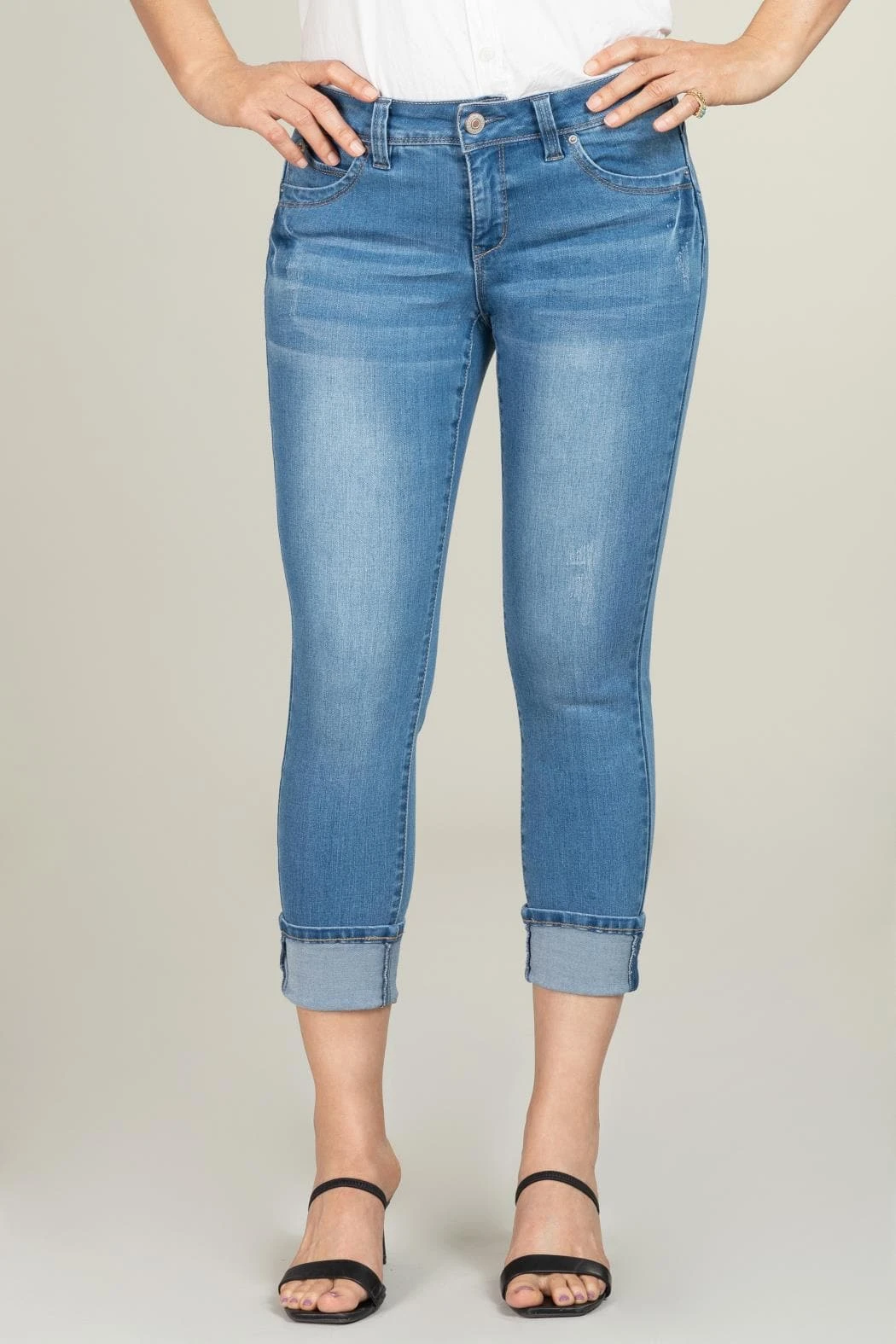 Featuring five-pocket construction, mega cuffs, single-summary closure with front zip, classic hem and belt loops.